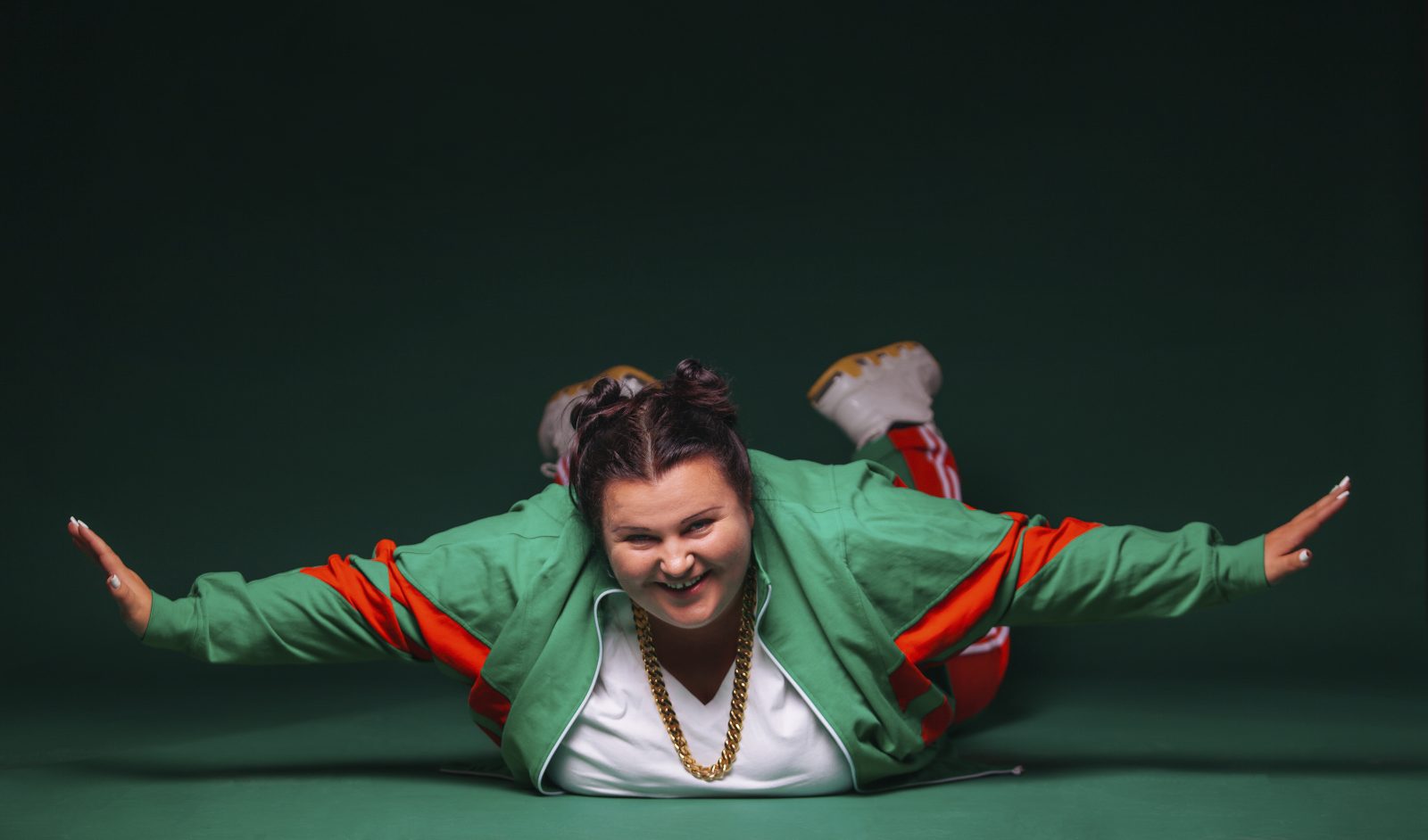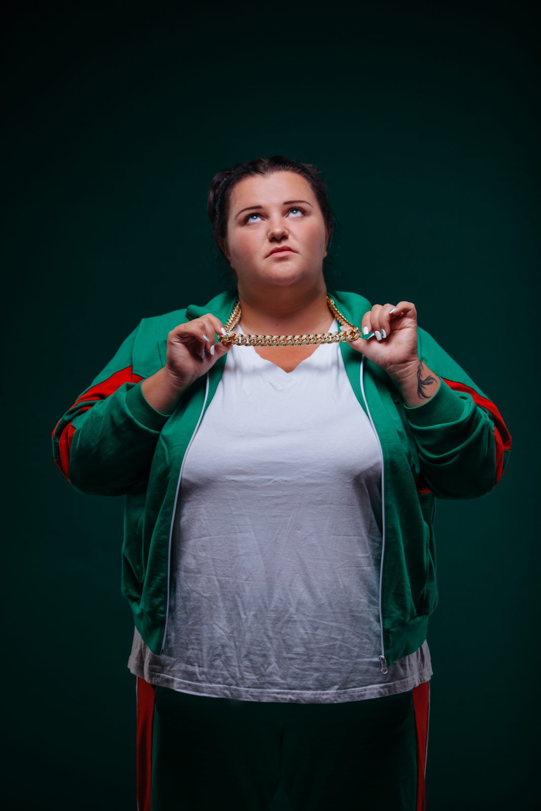 “My songs are about people who don’t believe in themselves, but have to believe in themselves,” Alyona says, turning uncharacteristically serious for a moment. “Girls with different faces, bodies, piercings, tattoos. The new generation. I talk about my roots, my native village and my childhood.” She smiles. “I talk about myself, who I am, why I am rapping, why I am a fat girl and what I think about myself.”