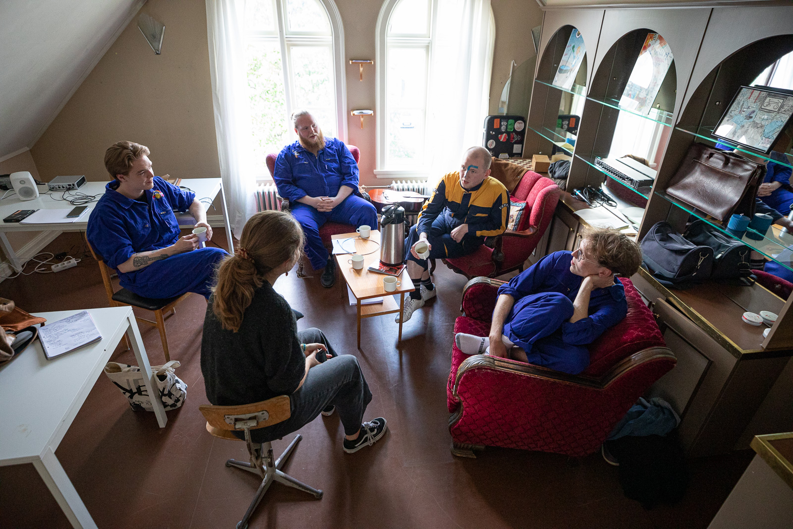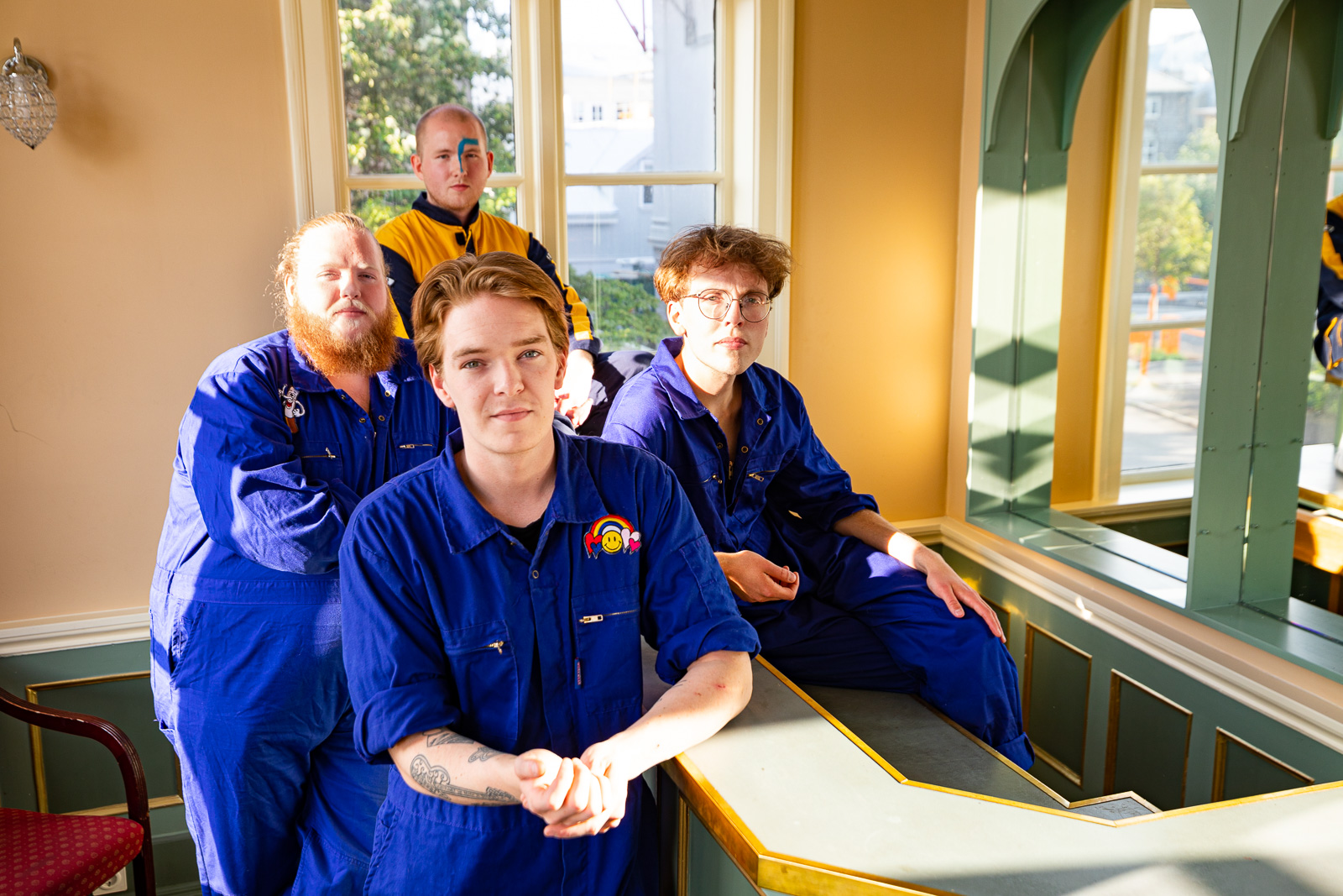In IÐNÓ’s airy attic space, overlooking Tjörnin, Jóhannes (Jói) Bjarki Bjarkason, Bjarni Daníel, Auðunn Orri Sigurvinsson and Sævar Andri Sigurðarson sit comfortably, sporting electric blue boiler suits and sipping coffee as they reflect on their band’s new album, ‘Skoffín hentar íslenskum aðstæðum’. Full of existential angst, the release is heavier than Skoffín’s previous offerings, but still retains the raw youthful energy that is these indie rockers’ lifeblood.