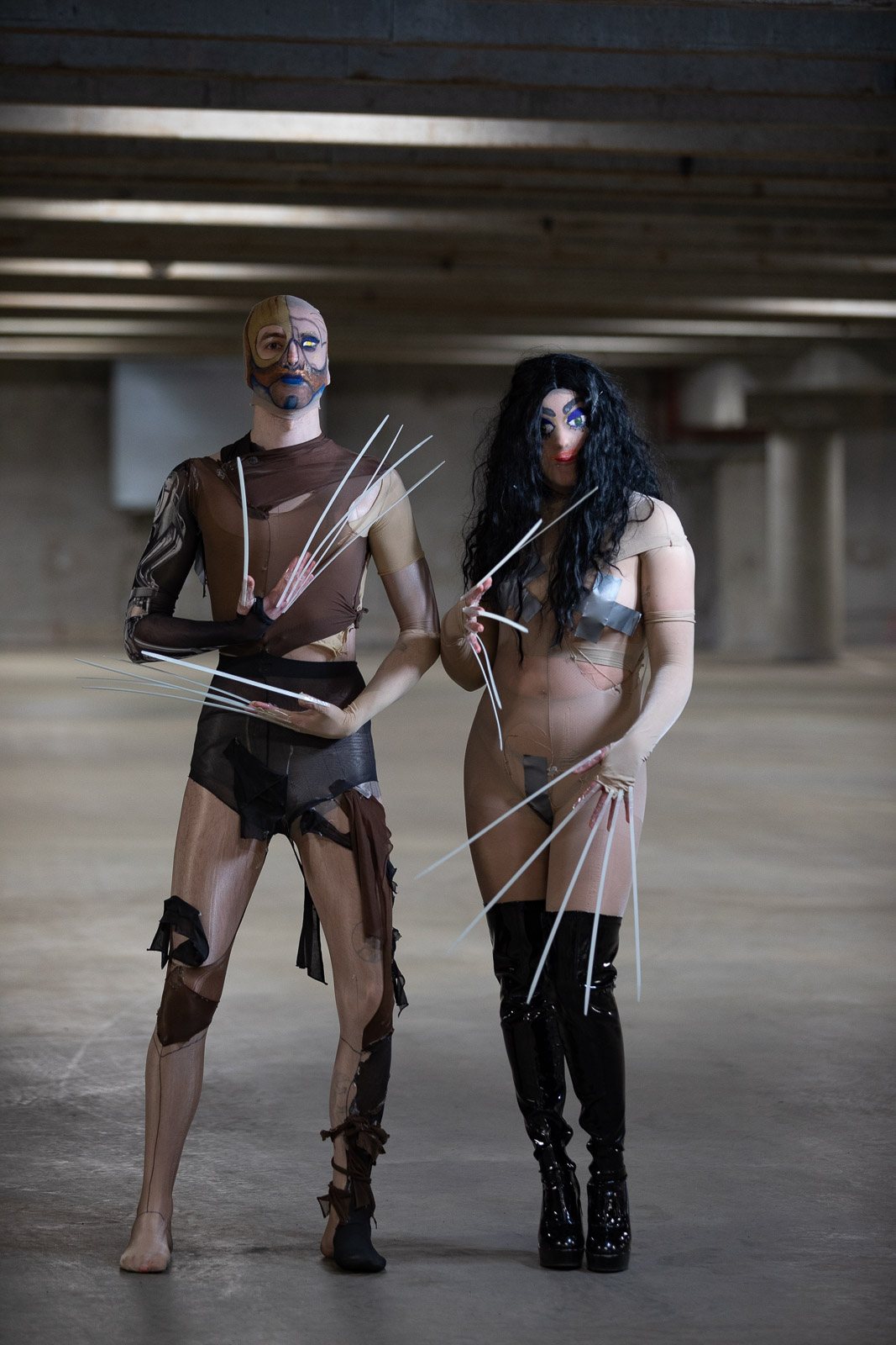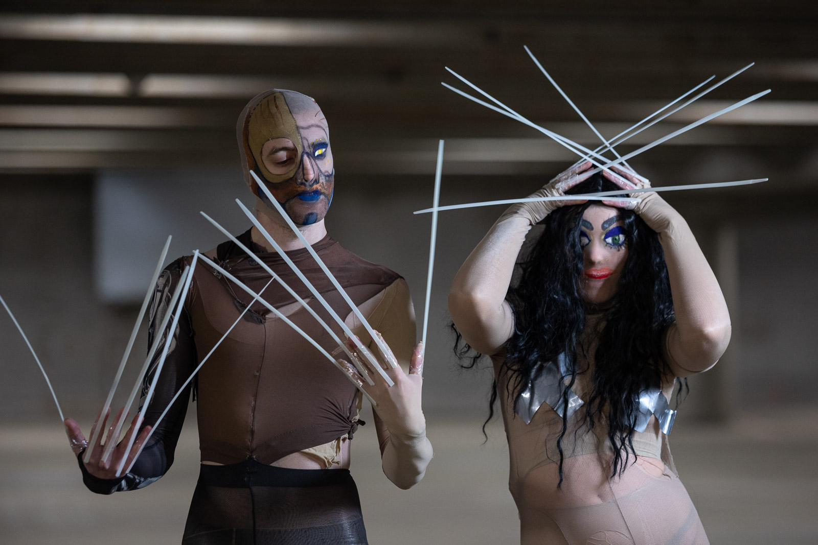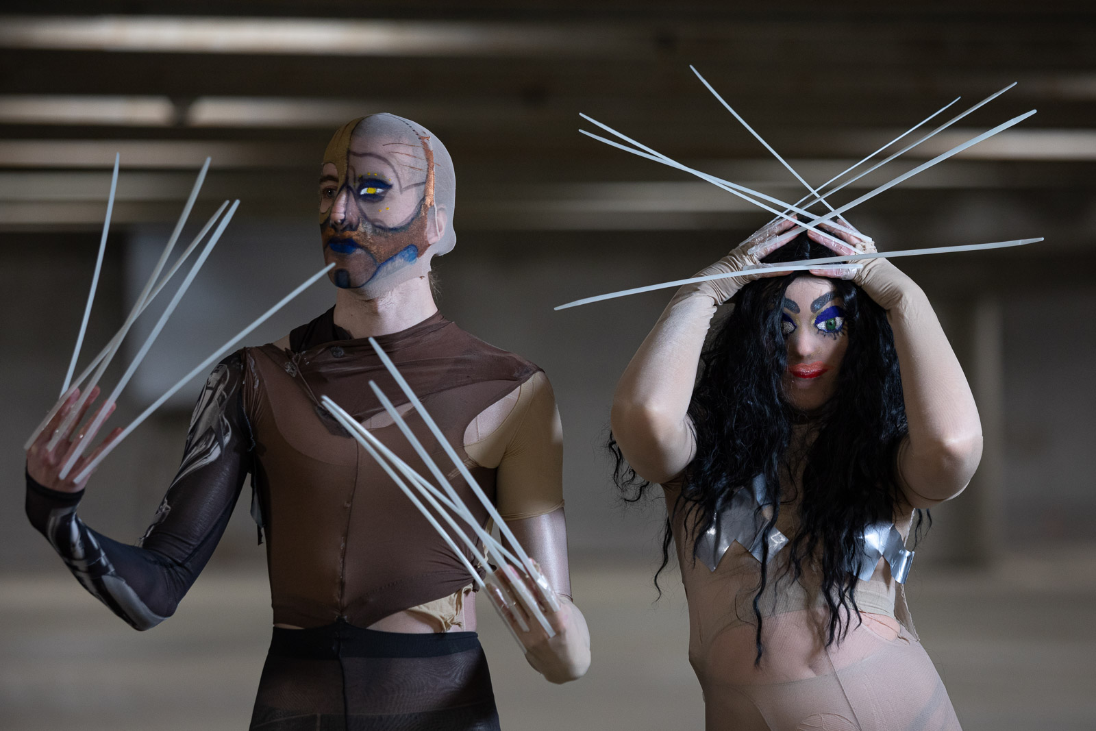 “Holdgervlar evokes emotions of excitement and melancholia. The foundation of the music on ‘Gervihold’ was made before the concept grew from a minimal goth band to a cyborg sideshow ensemble,” the duo says. “The songs grew a lot afterwards, followed the visual aspects in this newfound direction. Still, the sonic world already was very visual so it was very natural to let the physical concept grow alongside it.”
