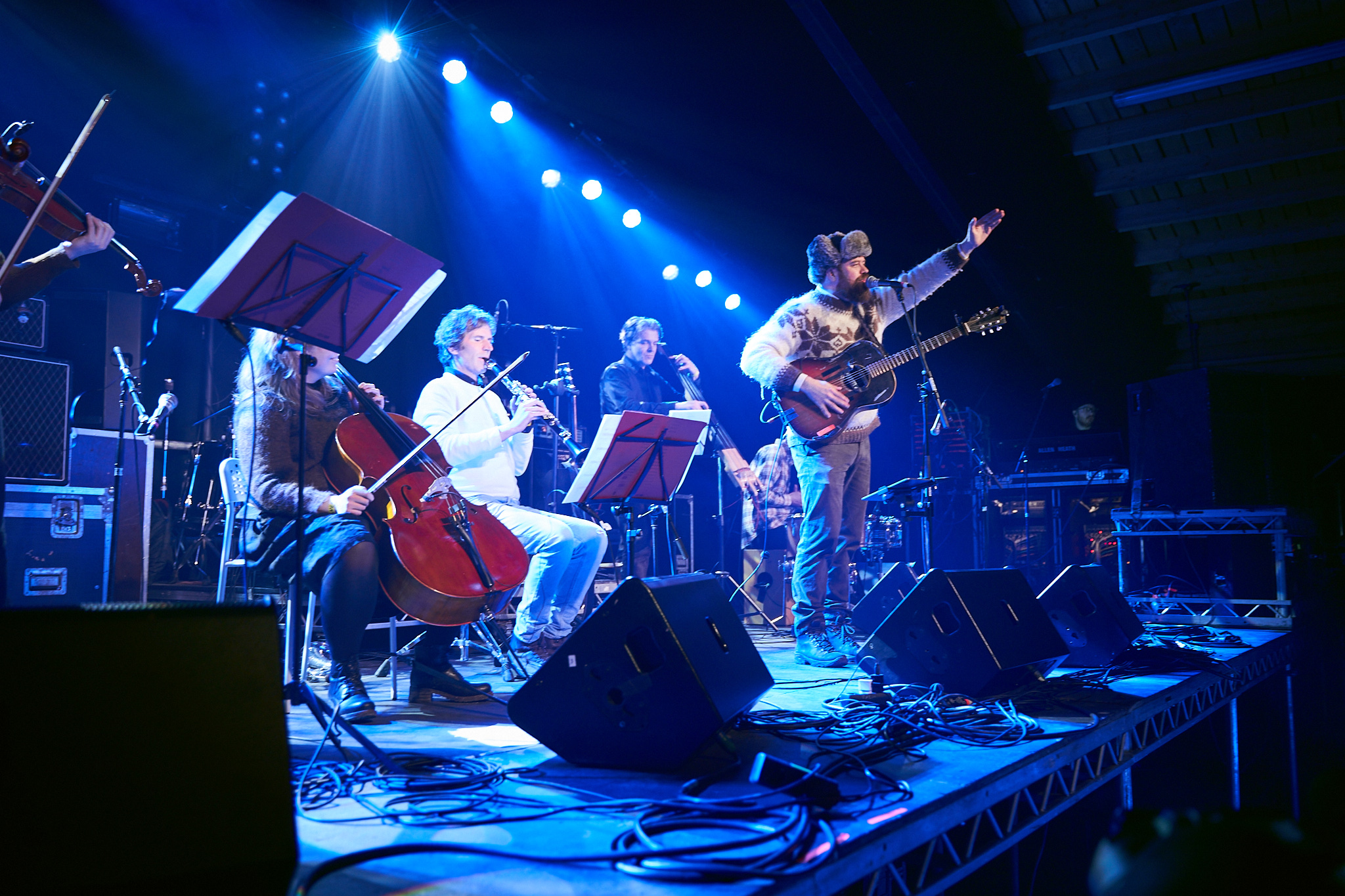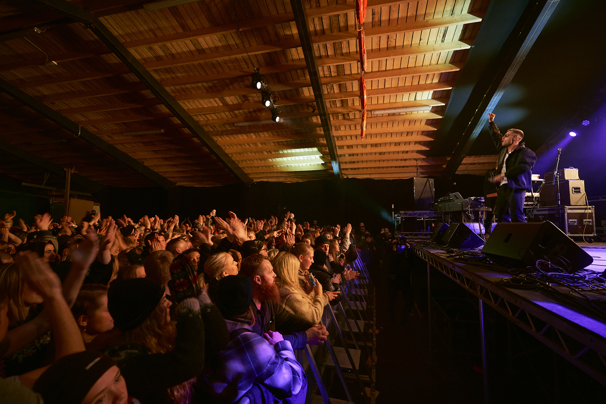 That reality hit the next day during their hungover drive to Ísafjörður. They had a 16 act lineup for a festival that had no venue, no money and not even a soundsystem. But what you do in a small town at the edge of the world when faced with an unexpected situation is improvise, get help from the locals and work it out. The venue they found could hardly be a better representation of life in the Westfjords — a warehouse that, when not festival central, stores fish.