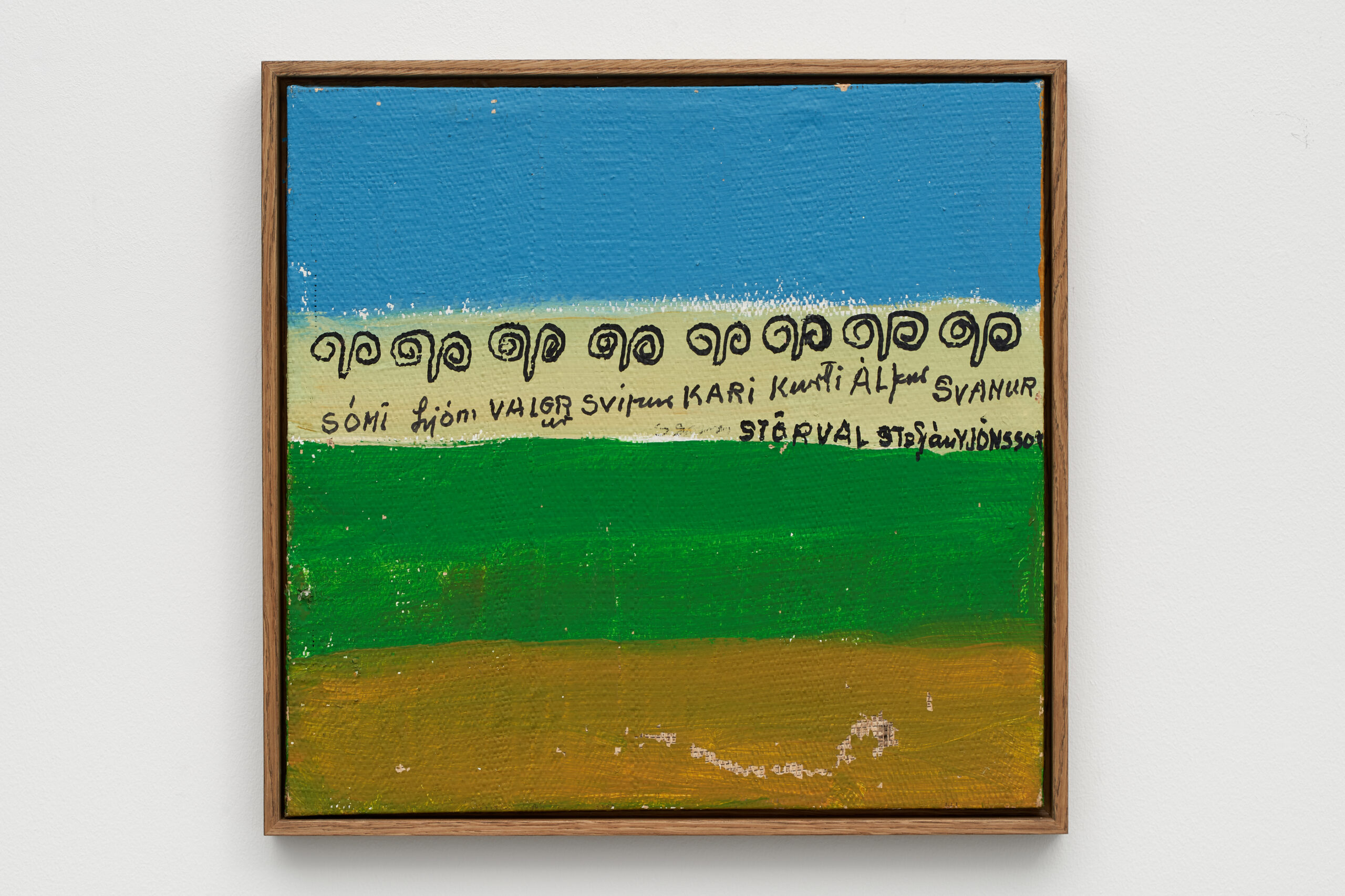 “Stefán from Möðrudal” — another of Stefan’s pseudonyms — is a core part of his identity that he held onto after moving to the big city. The piece Örnefni í Möðrudal og Víðidal (Place Names in Möðrudal and Víðidal) shows the attention Stórval gave to the nature around him. The core of his work is an amalgamation of place names scrawled onto all parts of his canvases.