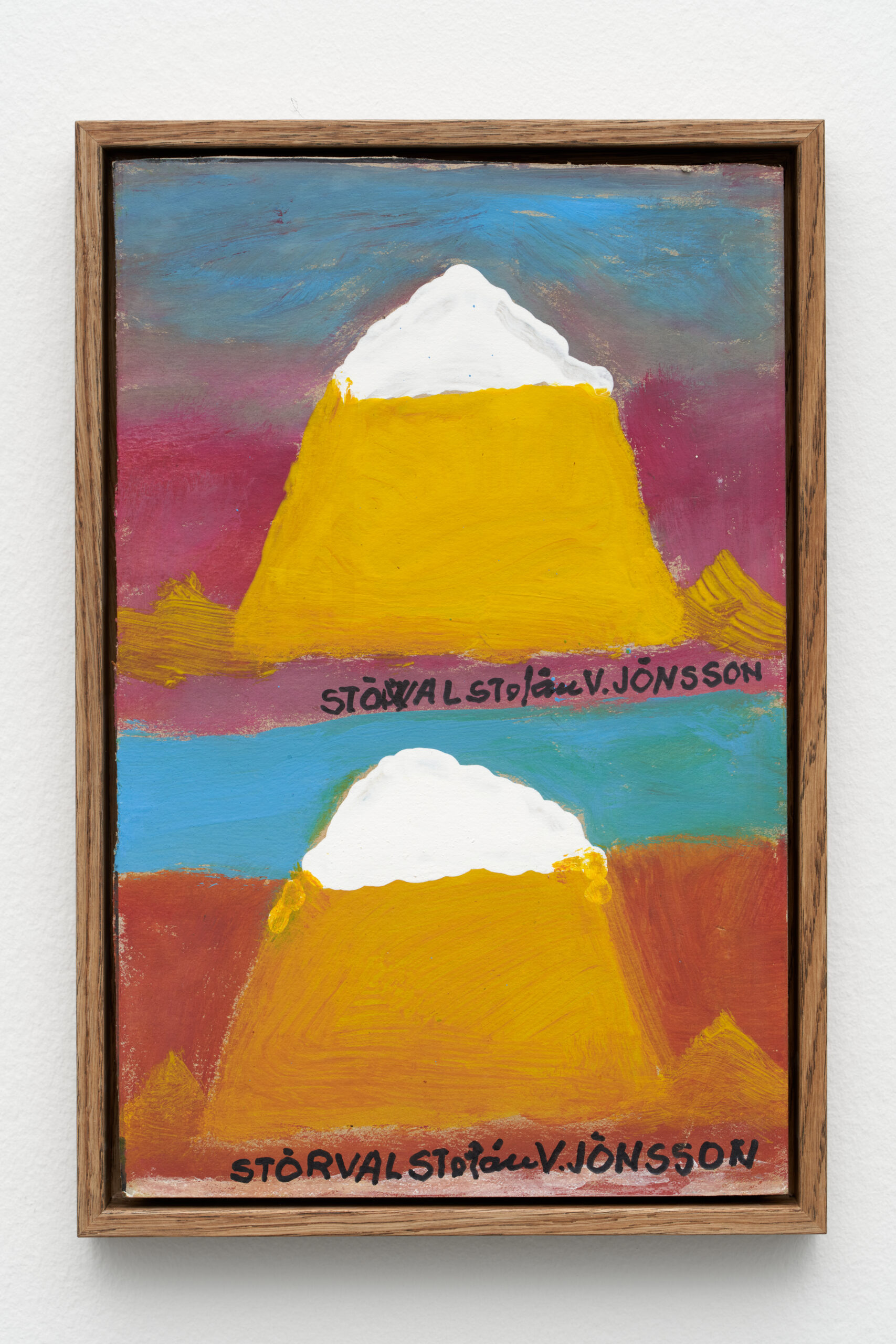 First shown at the legendary Gallery SÚM in the mid-1960s, Stórval’s most well-known works are depictions of Herðubreið — the “Queen of Icelandic Mountains” — that features in ten of the works on show. Situated in the northern part of Vatnajökull National Park in the highlands of Iceland, Herðubreið was Stórval’s muse. “It was the mountain he could never get enough of,” writes Unnar Örn. “He couldn’t grasp it. But it was the foundation of his creative force and existence — the mountain within.”