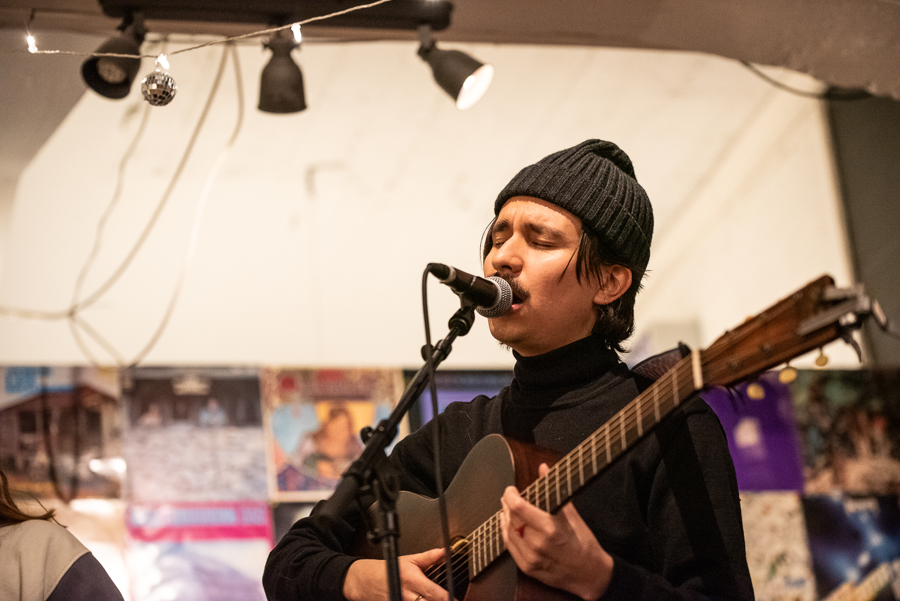 I arrive a couple minutes late, so I’m greeted by the (as always) cosy and warm atmosphere José Luis Anderson lovingly curates. Sinking into Andervel’s music feels the same to me as sitting down in the hot tub at the pool on an especially cold day. You can’t tell how windy it is outside Lucky Records tonight; we’re sheltered in the band’s embrace.