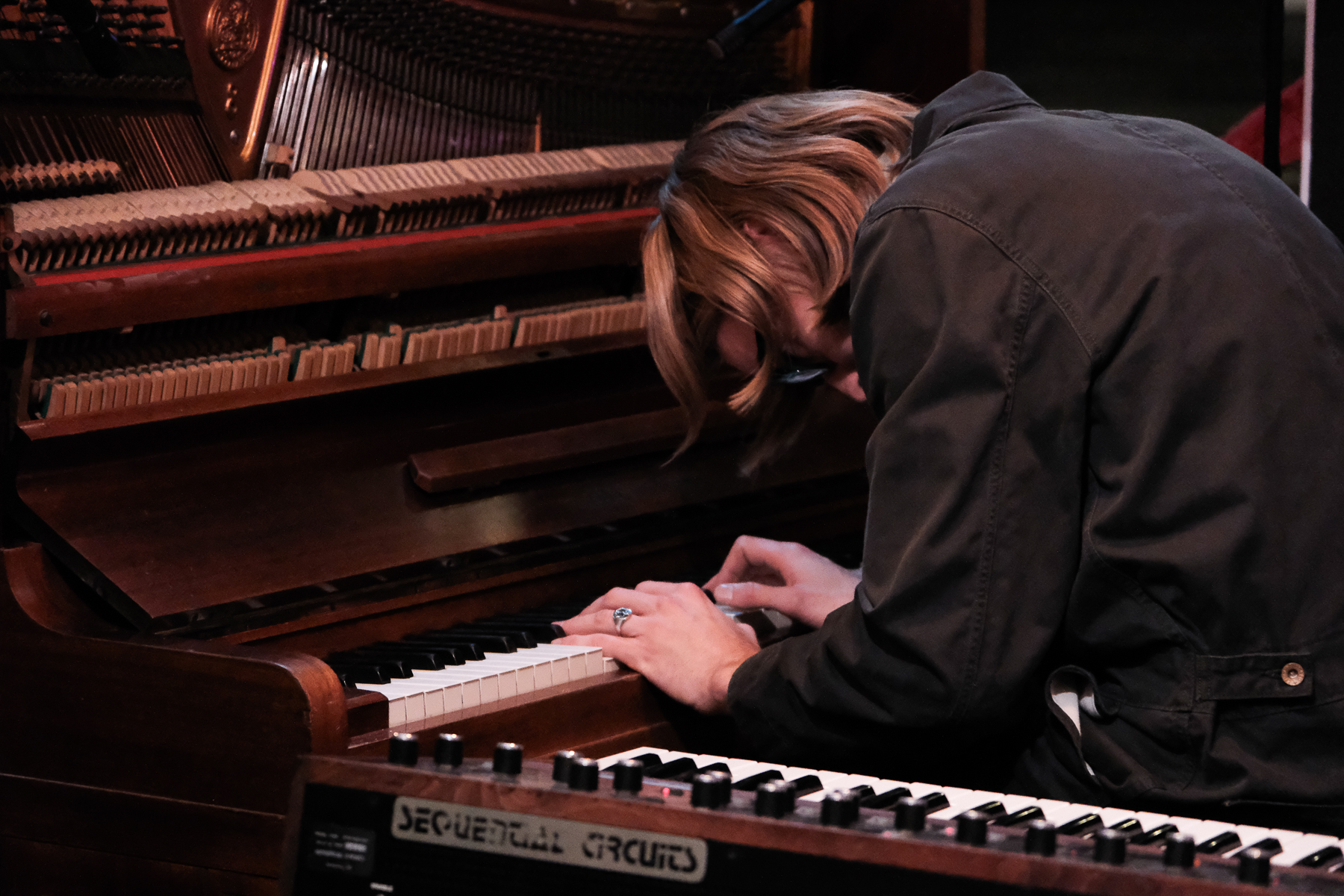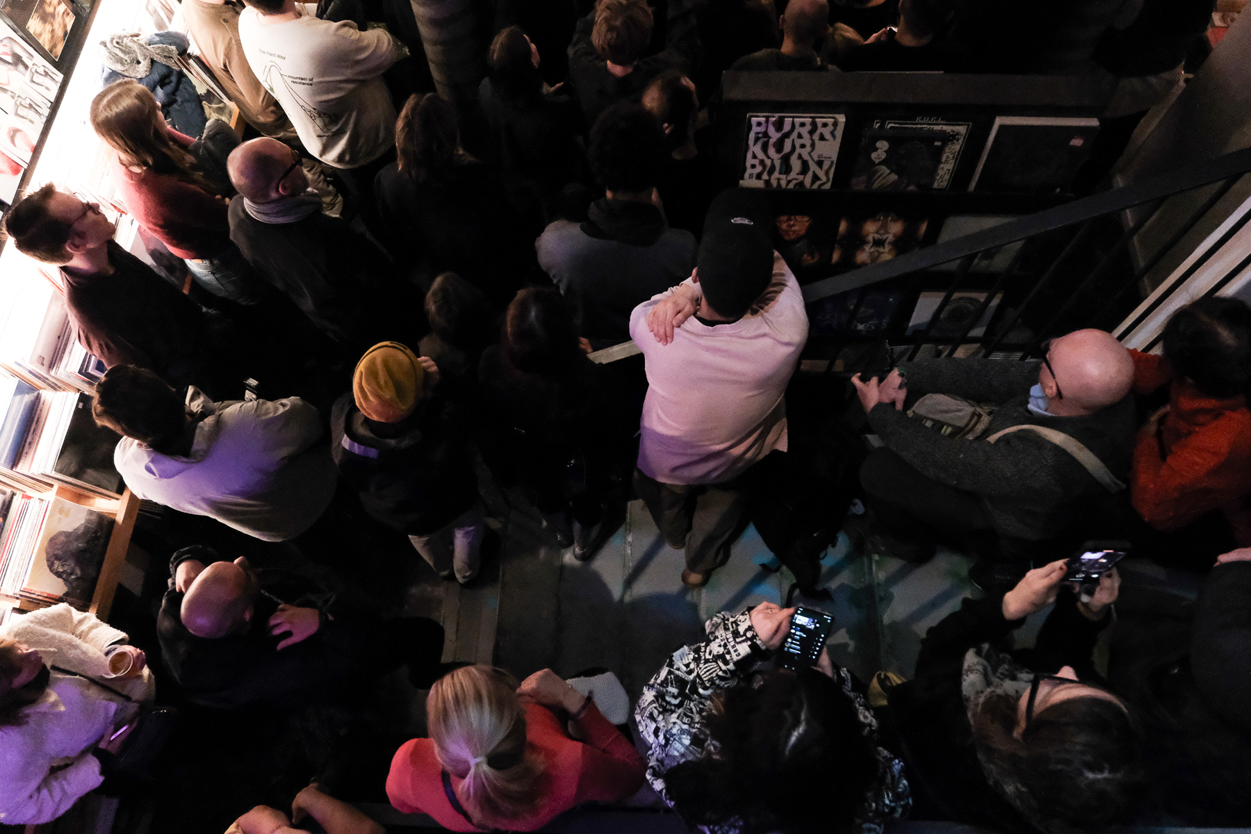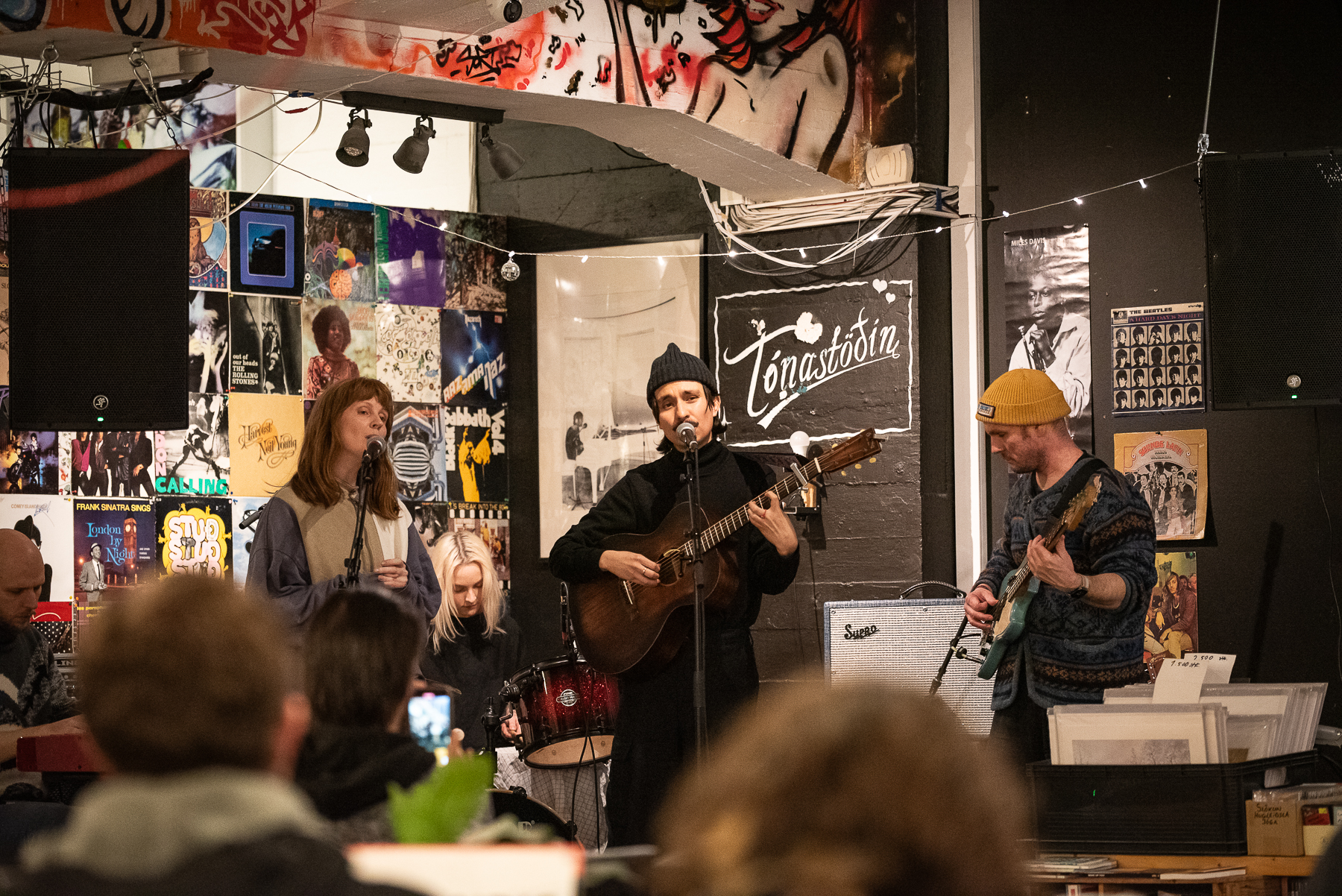 Upon arriving, I see bodies lining the staircase down to the show and hear the faintest whisper of piano. “I’ve only seen Smekkleysa this crowded for Björk’s DJ sets” I remark. I see an opening as a big group move toward the exit and we fill the hole they’ve left at the back of the room.