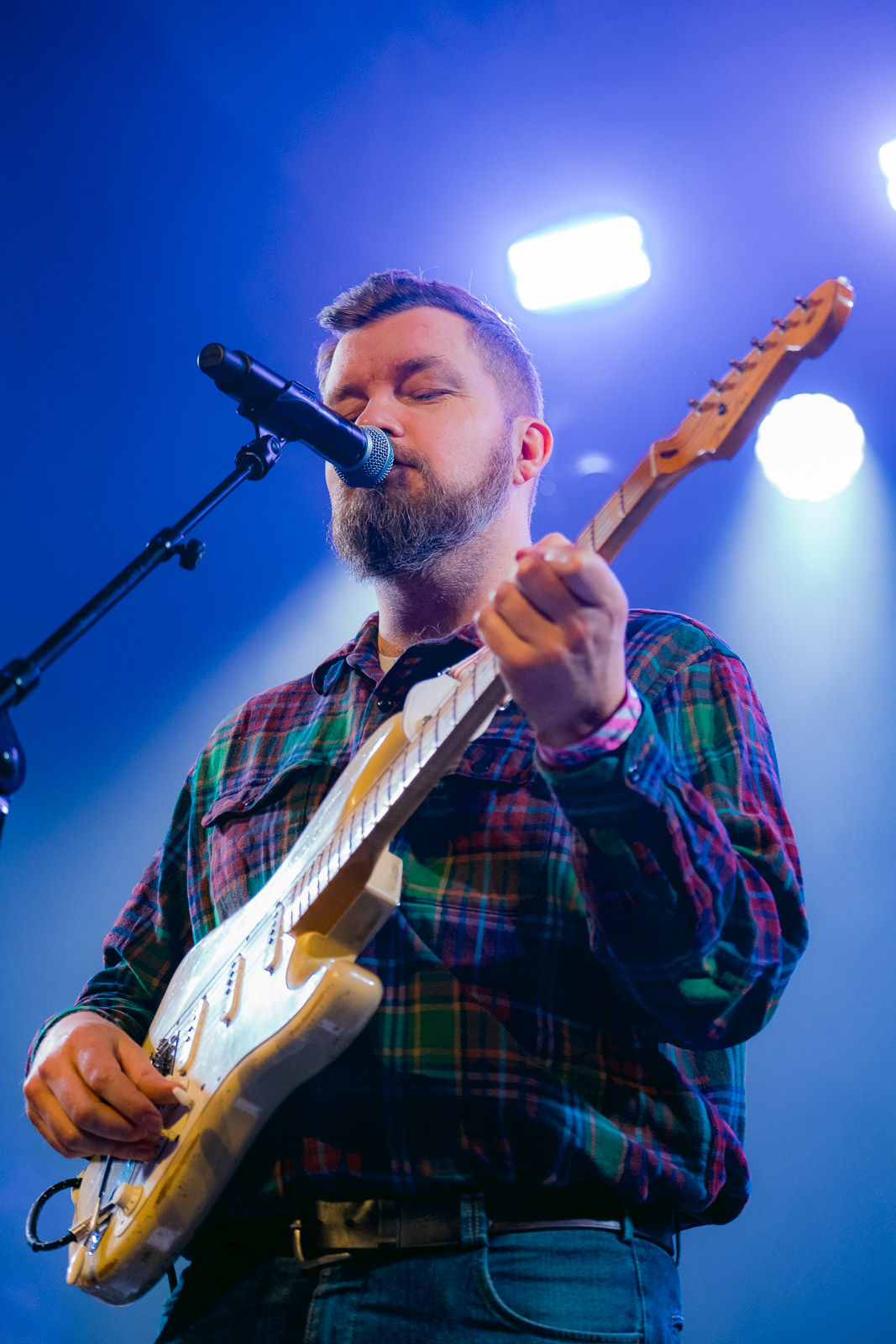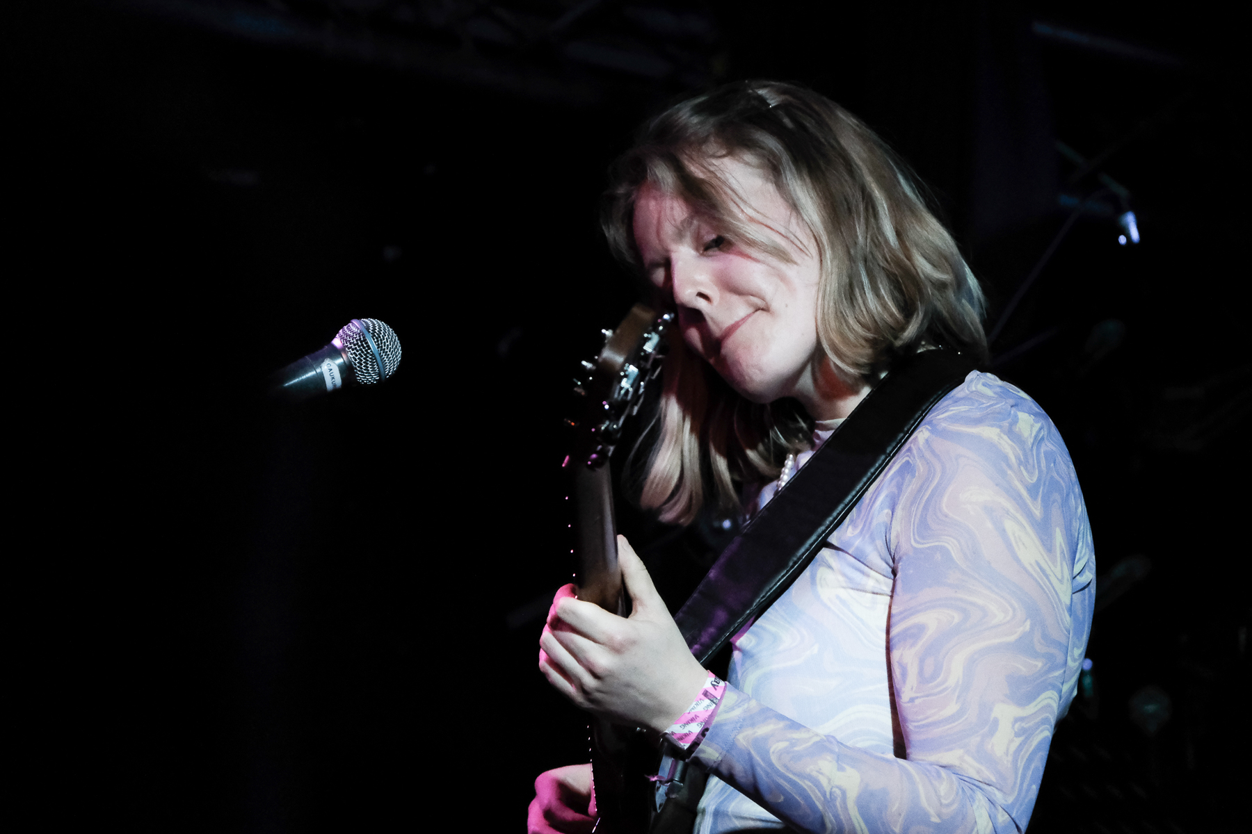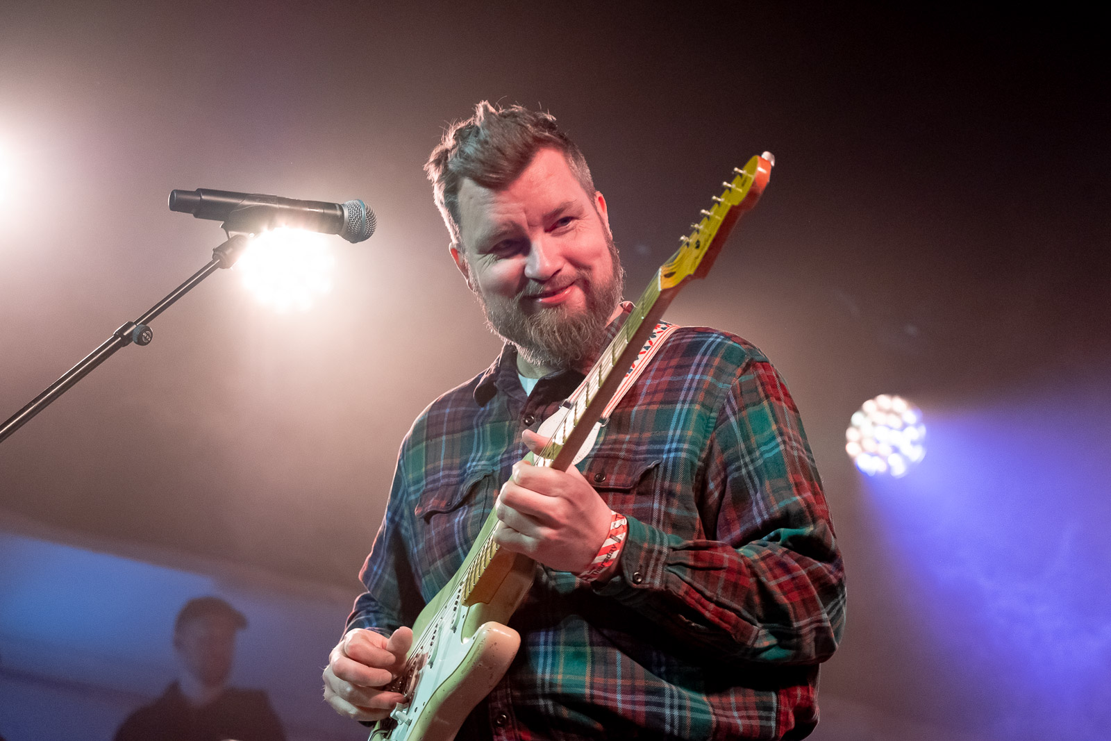 As Magdalena Bay concluded their set, I watched a changing of the guards. Twenty-somethings in cool outfits made their way out, excitedly remarking on the show they just saw, as I watched a woman force her way to the barricade, grab it with both hands, and turn triumphantly to her companion. Men in flannel or wool fill the front rows, and I know it’s time for my last show of the night: Hjálmar
