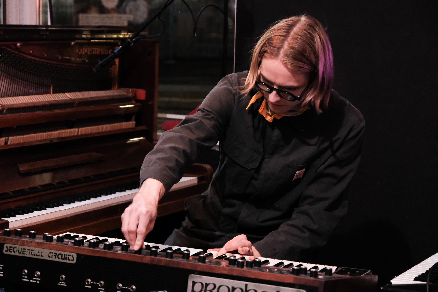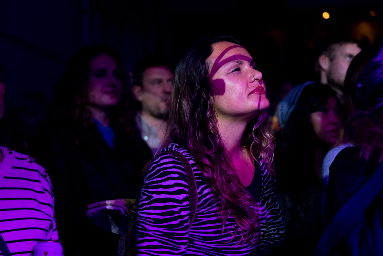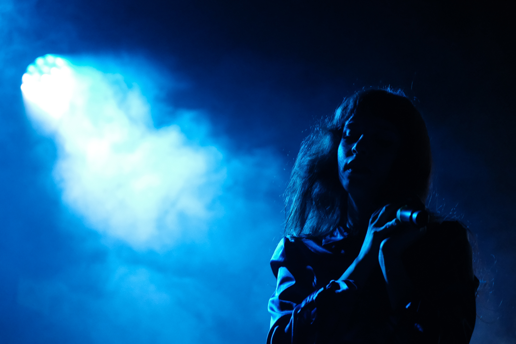 I catch a glimpse of Magnús Jóhann’s two piano set up that he is bouncing between — not between songs like an artist switches between an acoustic and an electric guitar, but during songs. He is playing both pianos! I unfortunately find myself alternating between standing on my toes and watching through the phone screen of the person videoing in front of me. I make peace with the fact that I won’t see and instead just close my eyes and listen. Technical and experimentative, Magnús Jóhann skillfully flits between raw piano like that of his film scores Ljósvikingar and Owls, and synthy oddity like that of Concrete Box. I enjoy his set immensely, and he captivates the entire crowd.