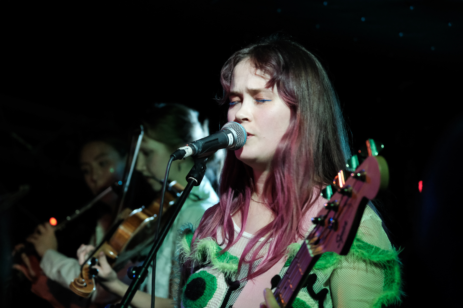It’s not often you get to see a flute and viola on the Gaukurinn stage, and I am oh-so glad I am seeing it now. Dreamy and fun, K.óla taps into the energy you’d imagine if you read the title of her album from this year: Sex on a cloud. Released in June in English, and just a week ago in Icelandic, K.óla sings with care and passion about love, life, friendship. She explores the range of emotions between it all through ranging from soft singing to the belting in “Dansa meira”. As the set progresses the energy in the room rises, and she gets Gaukurinn to sing along a few times.