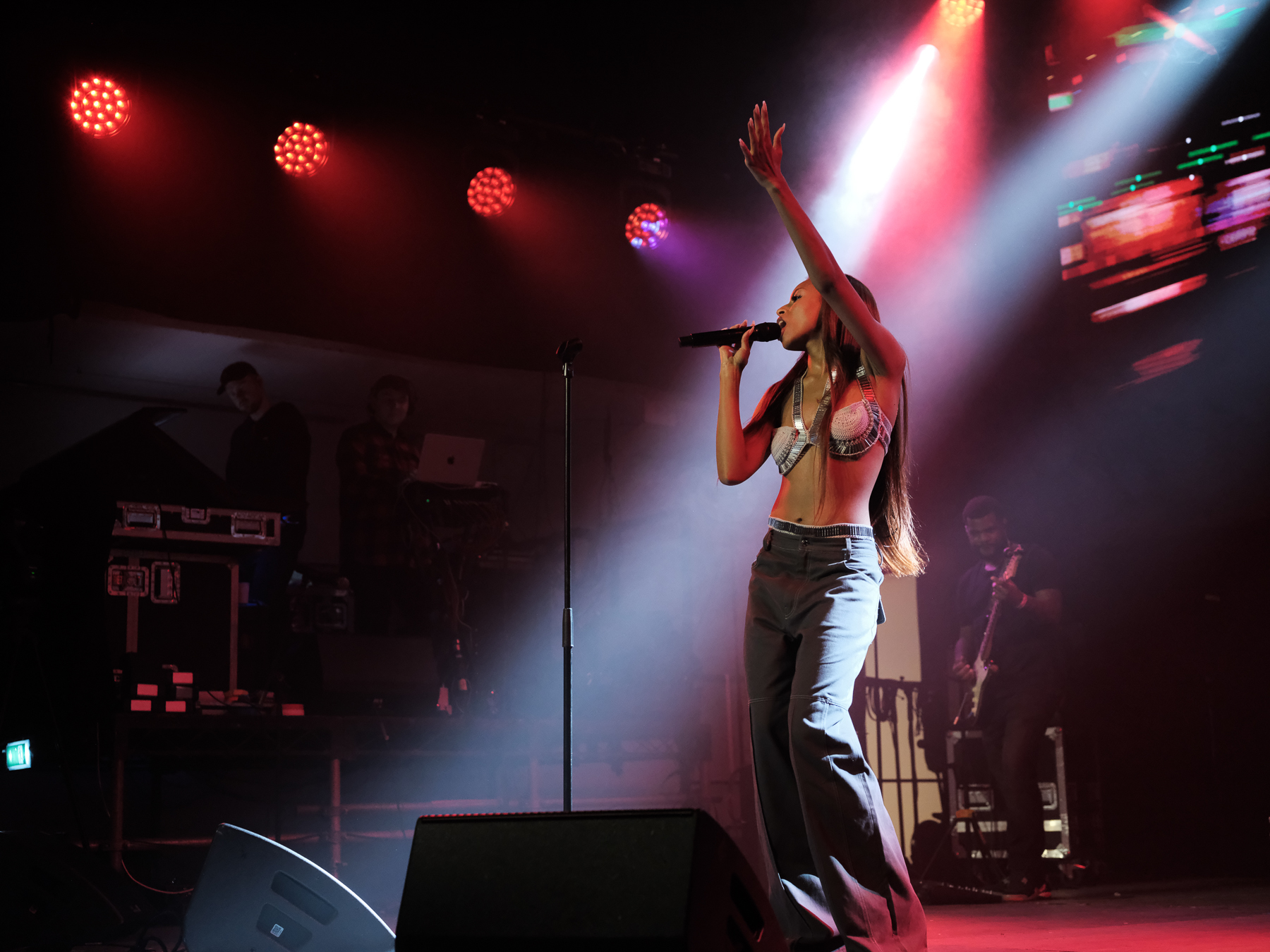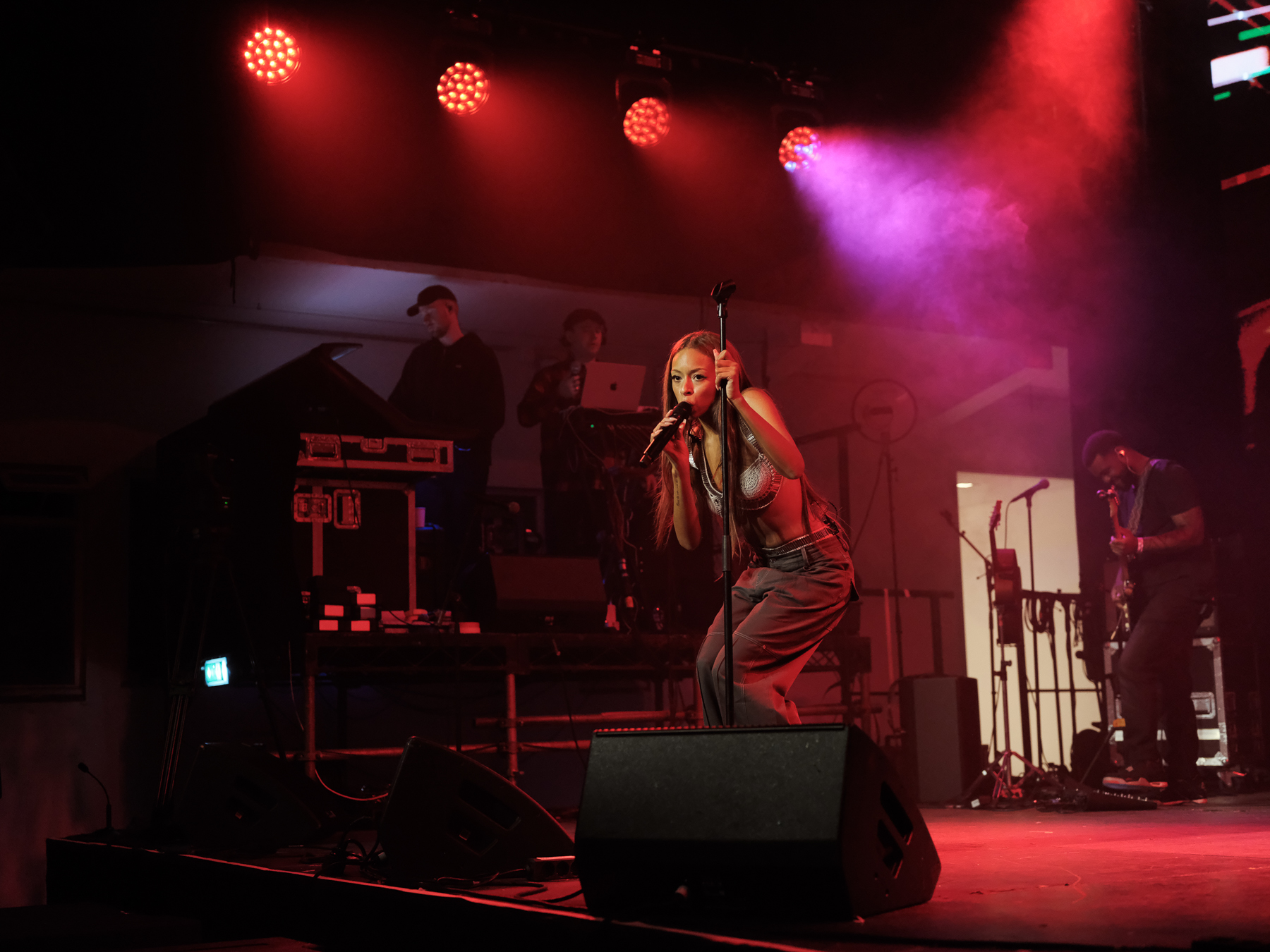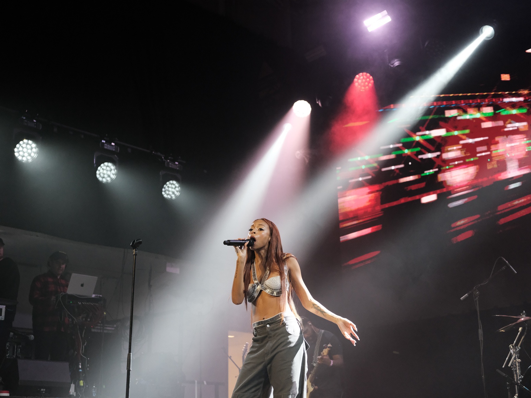 As the set ends I rush across the street hoping to catch the end of Rayvn Lenae and I do. I get to see my first non-Iceland-based artist of the festival — here’s where the night really cranks up. An artist lauded for her unique and captivating voice, the room is hooked by her energy. With her confidence she struts across the stage, and completing the tableau is the group of boys jumping up and down at her feet in the front row.