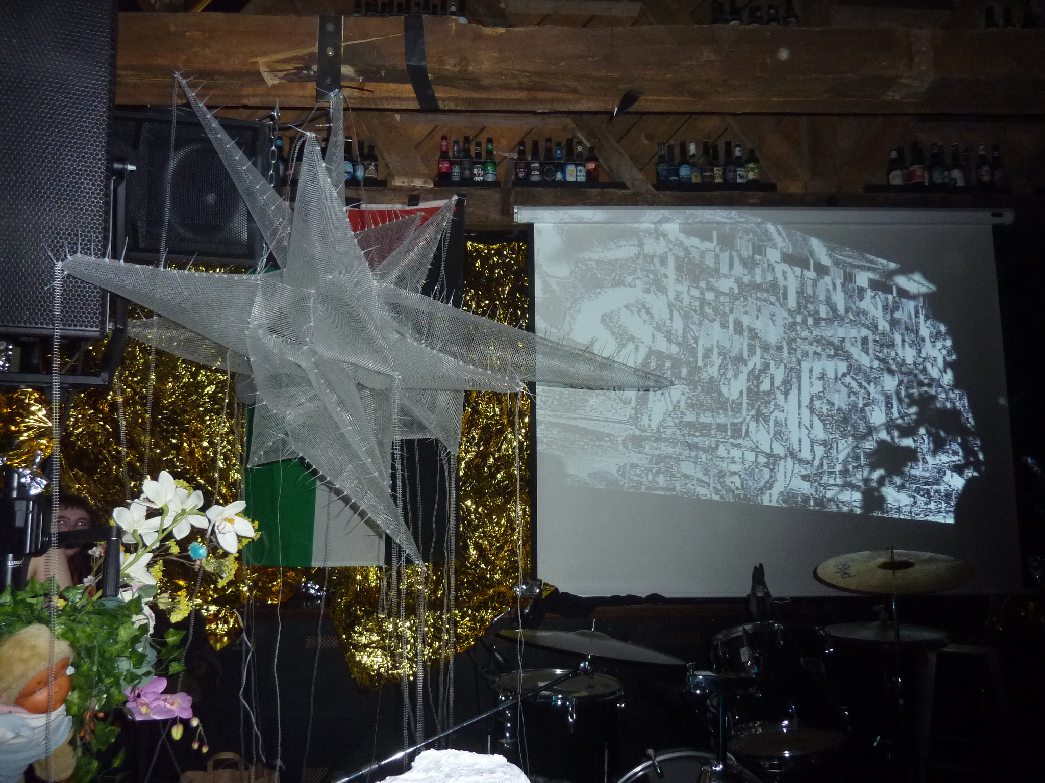 One of the most extreme and exciting performances of the festival involves the two organisers I spoke to, Yuki and Yulia, alongside performance artist Michael Richardt. In the performance, which is a fashion show with garments and sounds by Pussy Riot member Diana Burkot, the three begin by stomping into the room, chanting, “Matriarchy for the next two thousand years! Matriarchy!” Then, one by one, each performs on top of a table-sized platform with conductors taped to it. Noise screeches and wavers as each dances atop the platform, the performer connected to the conductors themselves with an electrode plugged into their hand from the platform.