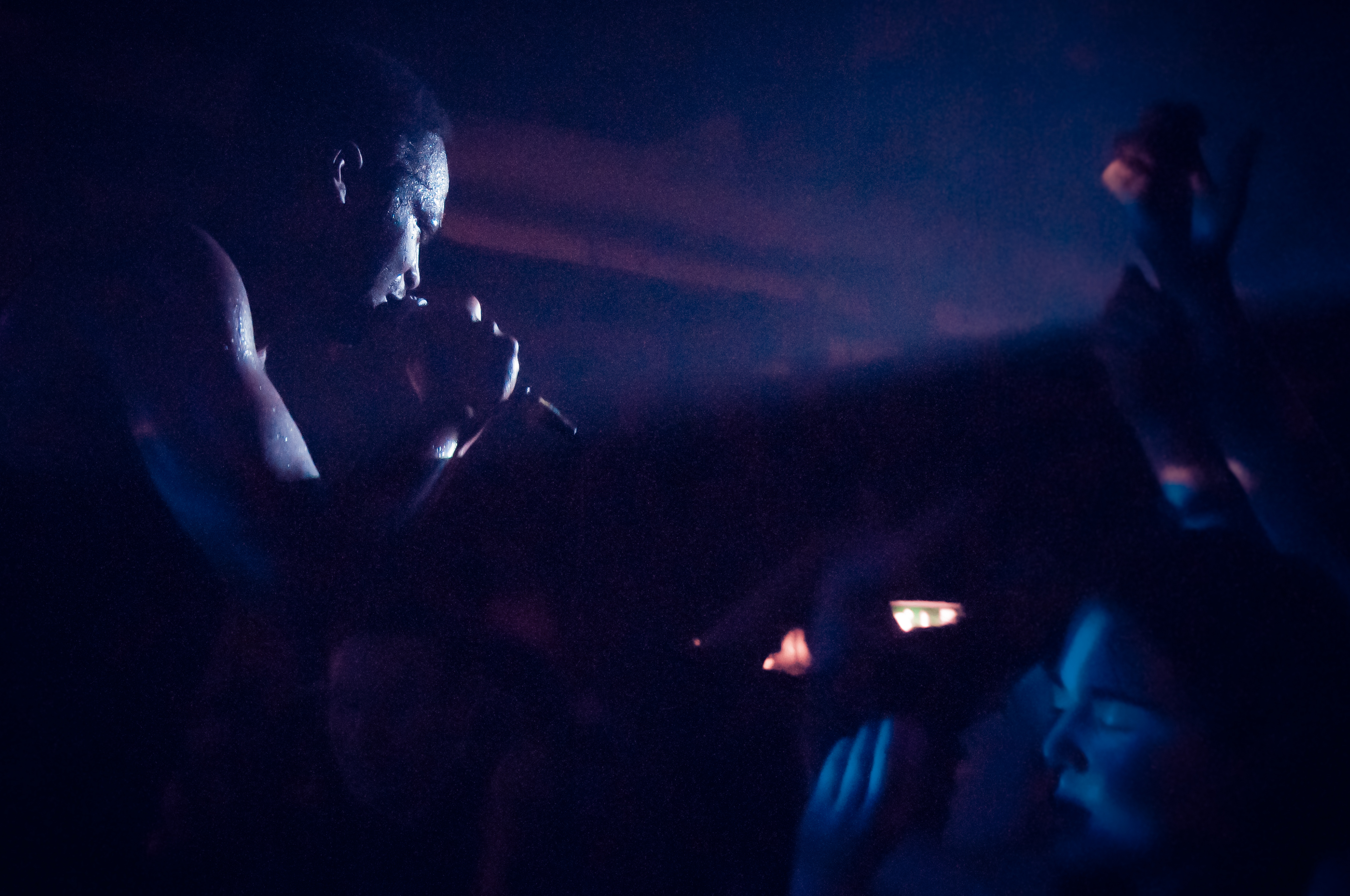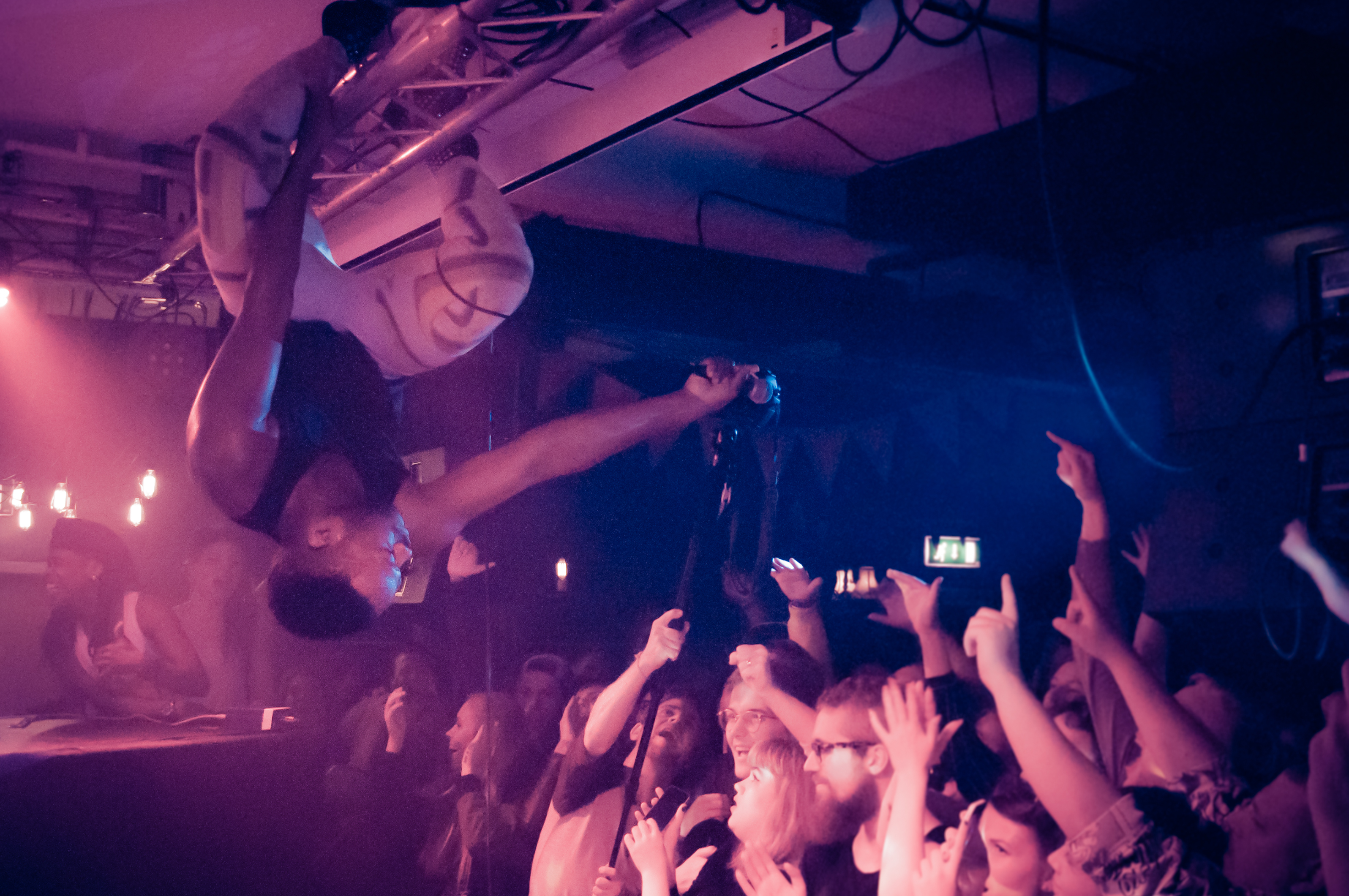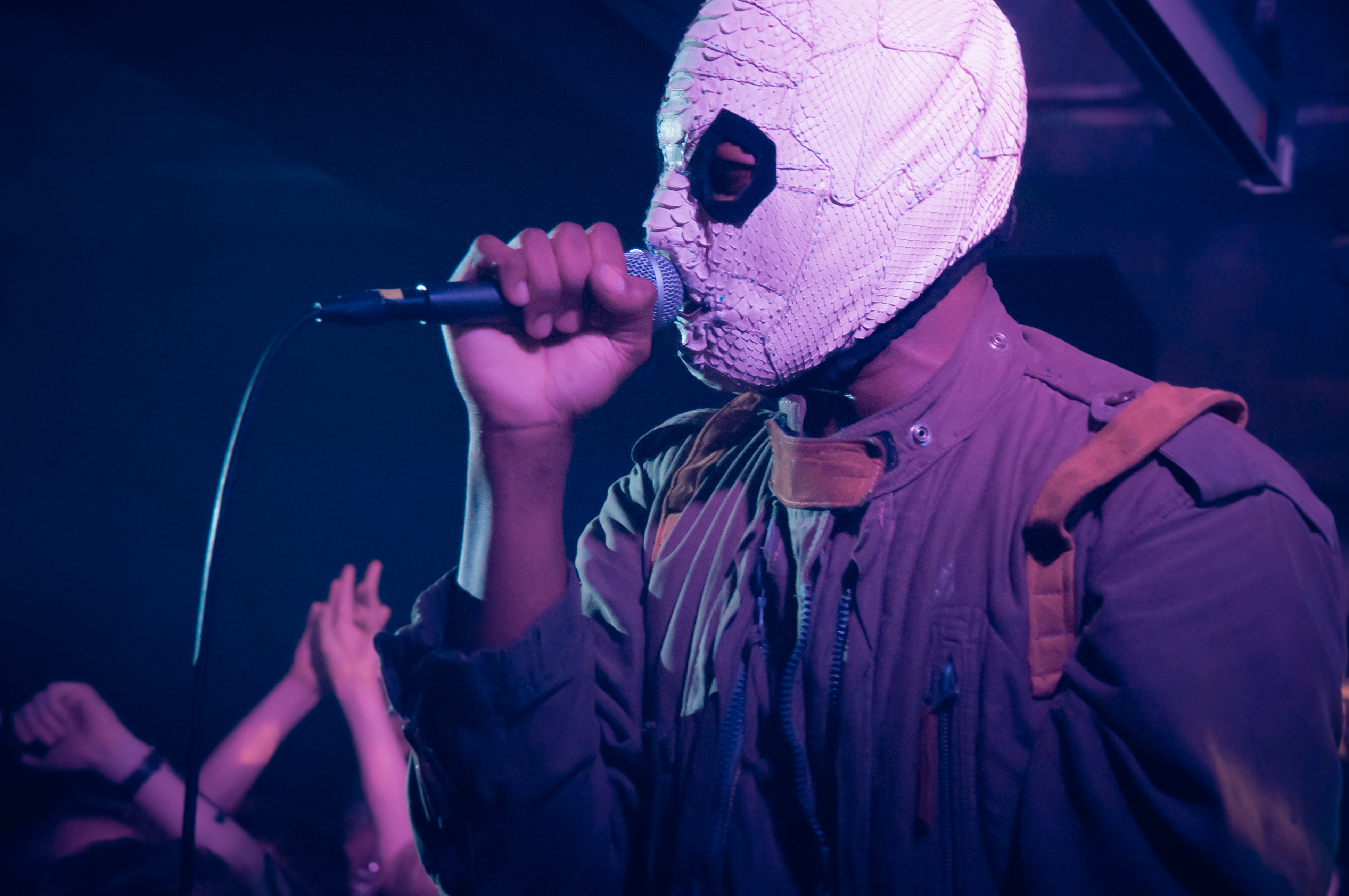 But the only confetti here at Húrra was the thick drops of sweat and rhymes sploshing onto our heads. Zebra played through a People Under the Stairs gimp mask and several layers of fashionabilia. Frosti Gnarr twiddeled about next to the producer for some reason. Now Katz was hanging upside down from the rafters, calling folks on stage to man the dancing while he had a quick “where-the-fuck-is-that-pitcher-of-water-Gísli-Pálmi-had” look around.
