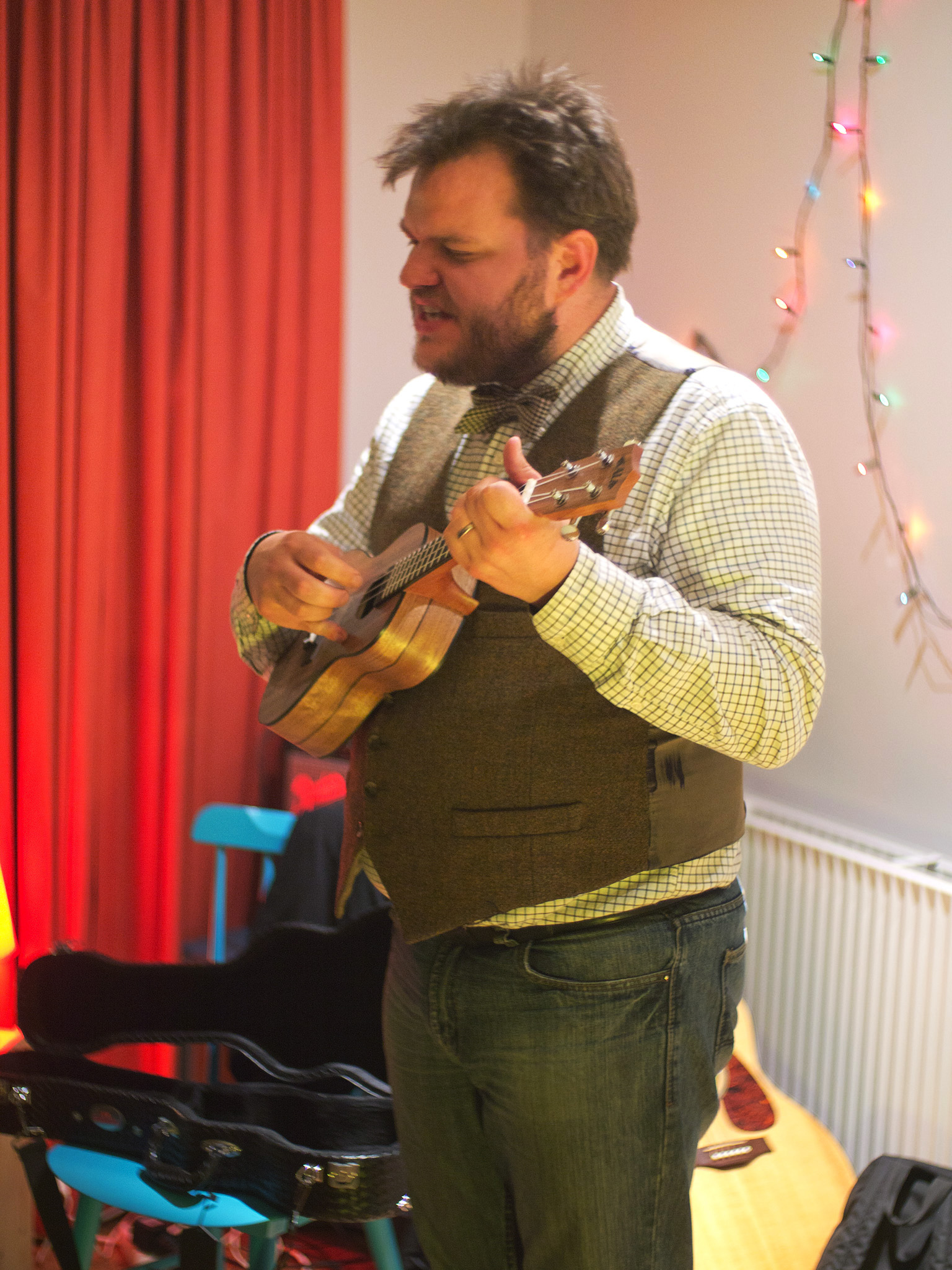 Last up is Svavar Knútur, musician extraordinaire. He’s technically a singer/songwriter but without any of the wishy washy sadsack stereotypical attributes that go along with that label. He’s funny and has a gorgeous voice and can play both the guitar and ukulele fantastically. He’s a happy guy who sings about depression and apocalyptic wastelands, among other things, in a way that makes you laugh and sigh at the beauty all at the same time. Listening to Svavar is the best way to end the night.