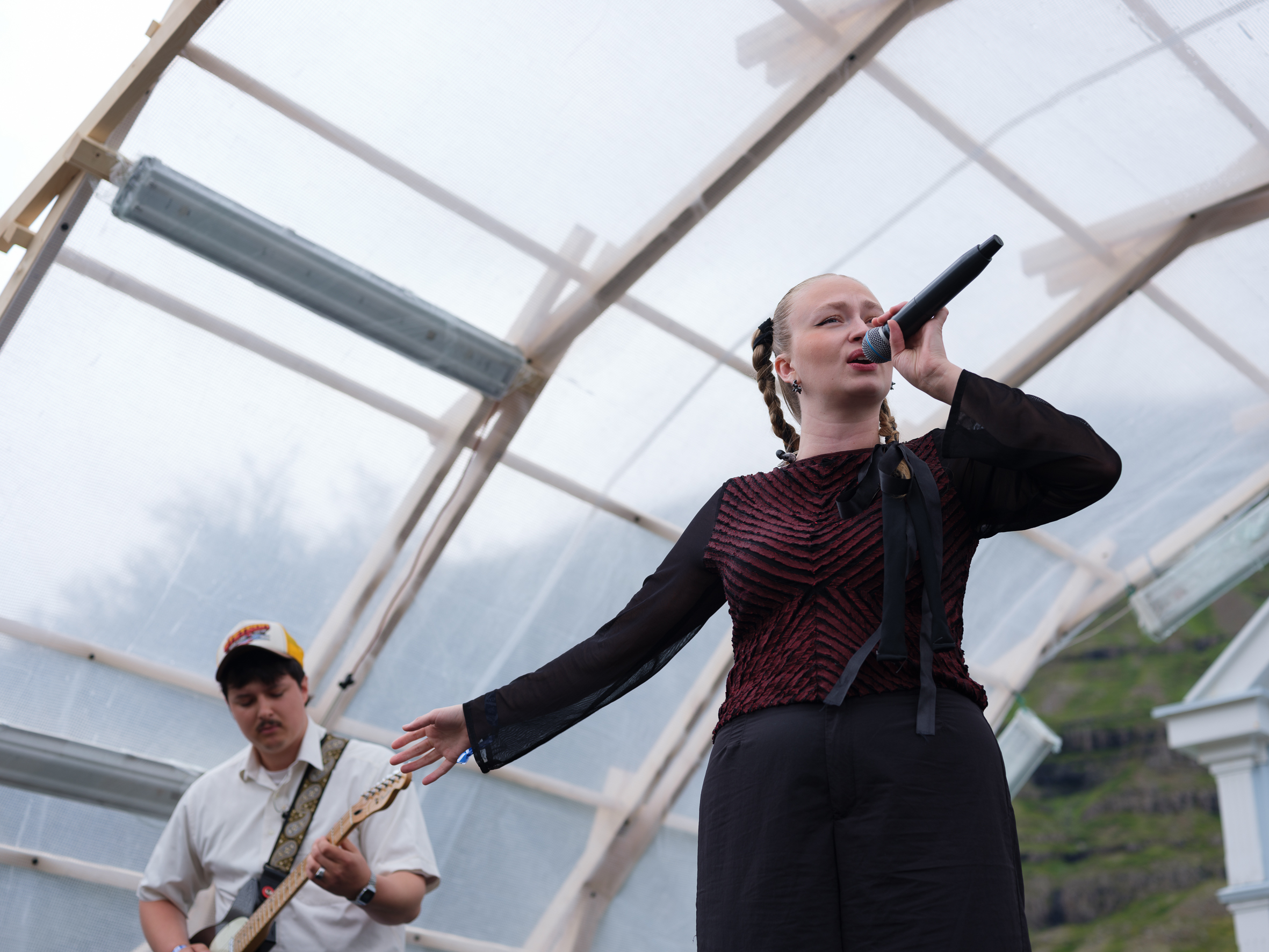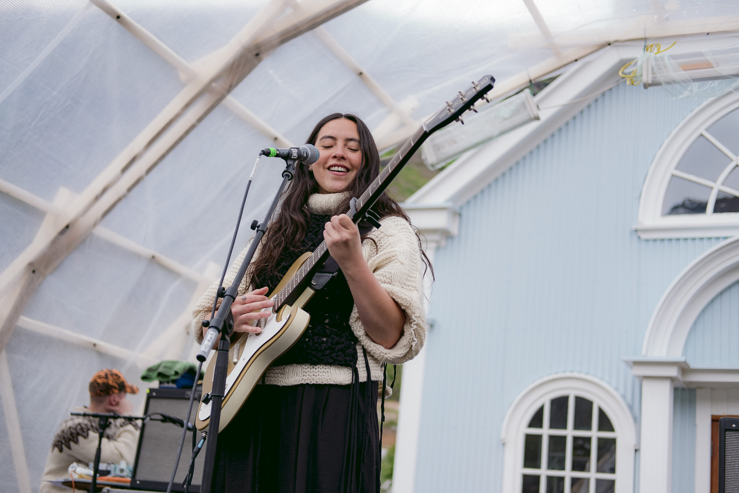 Kristín Sesselja is one of the few artists I haven’t seen perform before and am excited to watch at the festival — and she does not disappoint. Having launched her professional career after participating in a LungA workshop a few years ago, being invited to perform at the final LungA feels like a full-circle moment for Kristín, whose songwriting style sounds heavily inspired by Taylor Swift, though it’s hard to say if that’s a direct influence or simply the hallmark of contemporary songs about heartbreak.