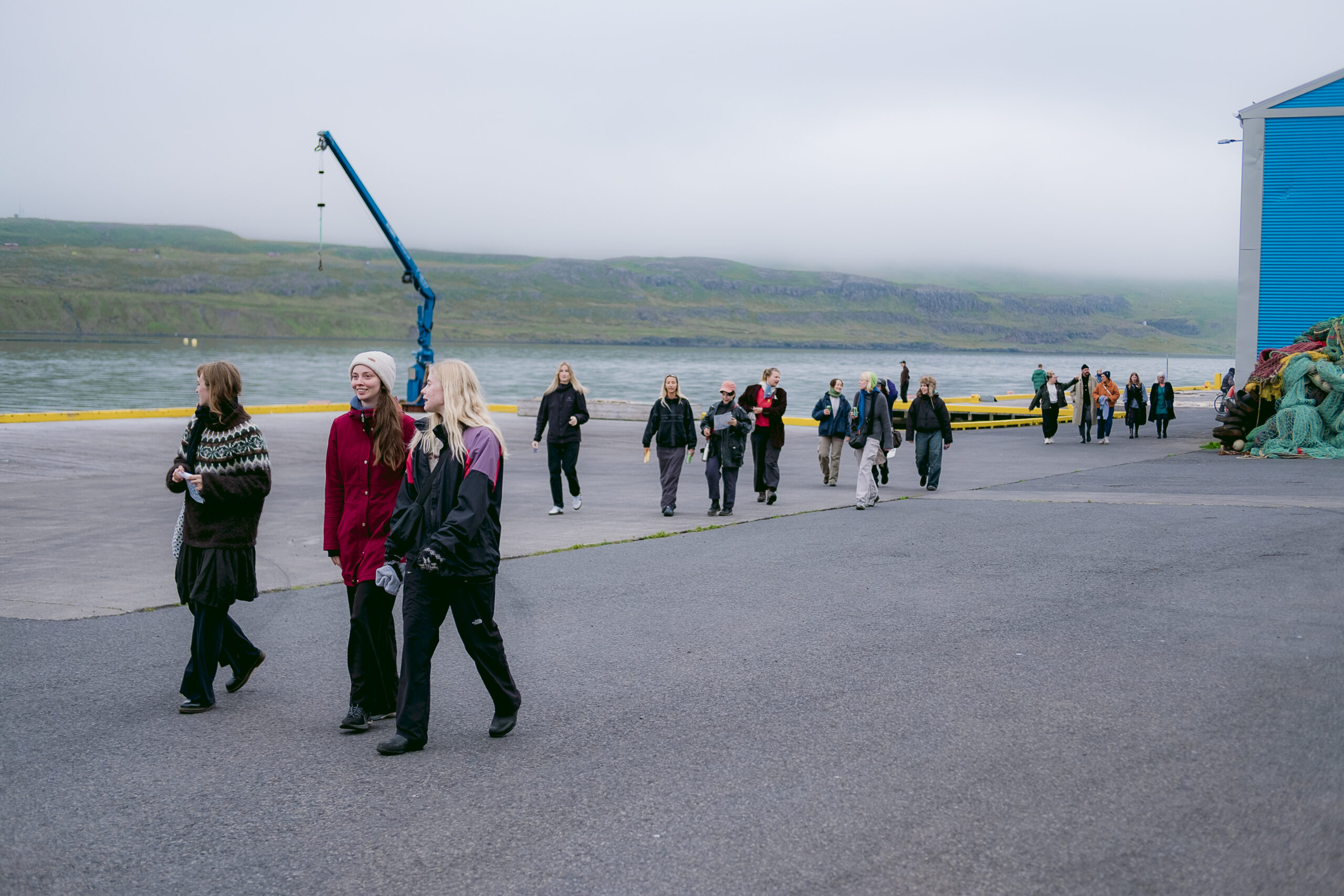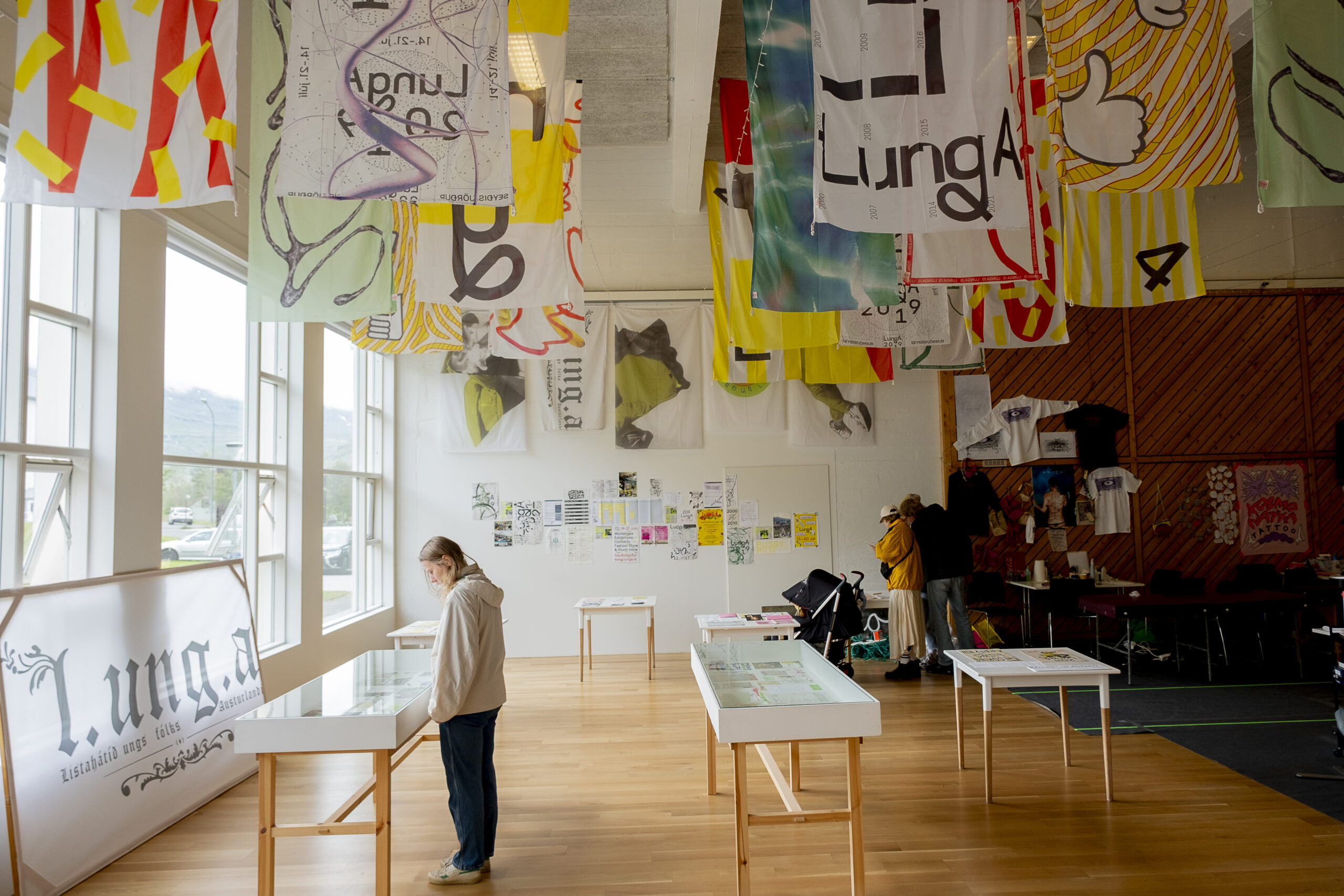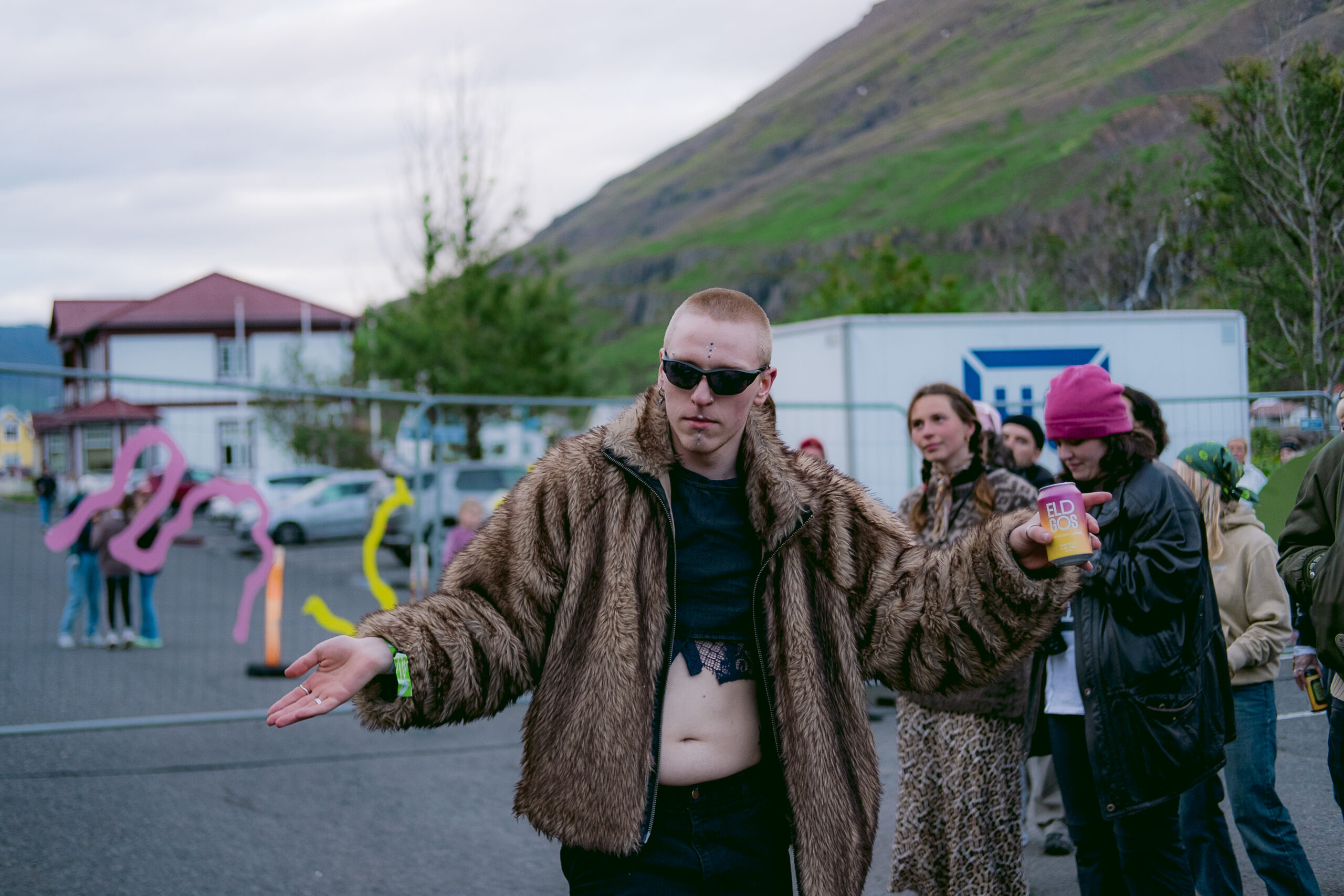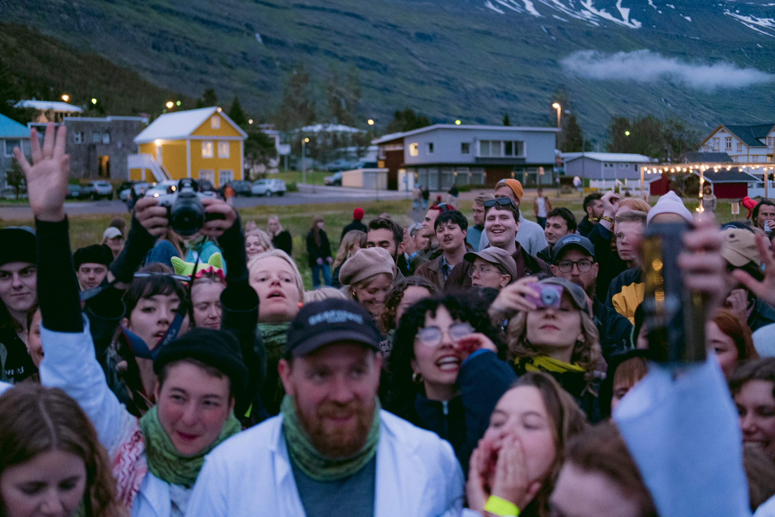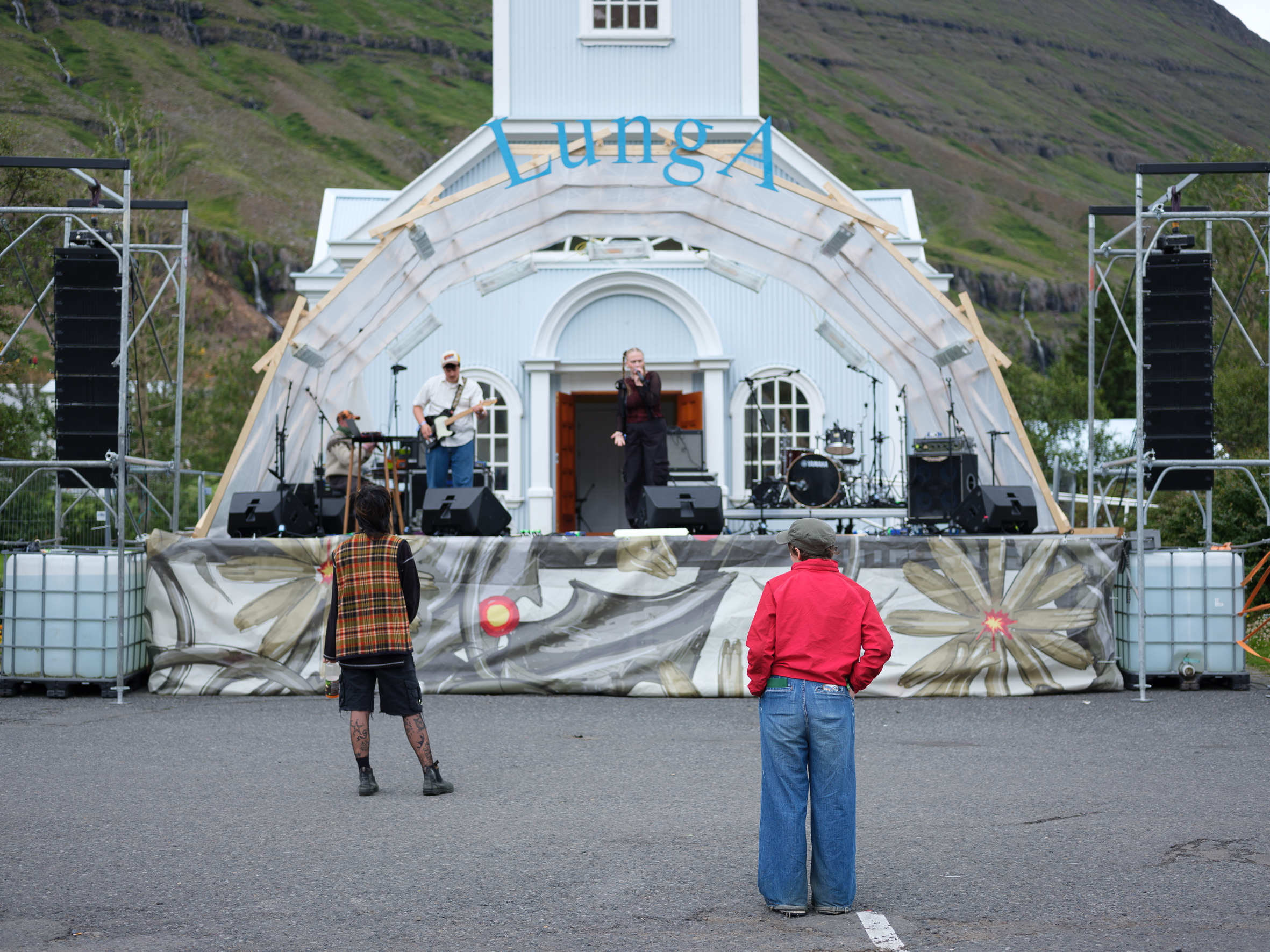 Not having participated in workshops, I feel a bit like a LungA outsider. The weekend barely allows enough time to truly embrace what the festival has to offer and the legacy it has built. I look for clues at the LungA Memories exhibition, which showcases the festival’s memorabilia over the years — wristbands, flags, and clippings from local newspapers. I wander through workshop presentations spread across town, from a beachside sauna at one end of Seyðisfjörður to a fishing factory at the other, I mingle with the campsite crowd, which feels more like a gathering of art school friends. We’re all awaiting the final big bang — the farewell concert.