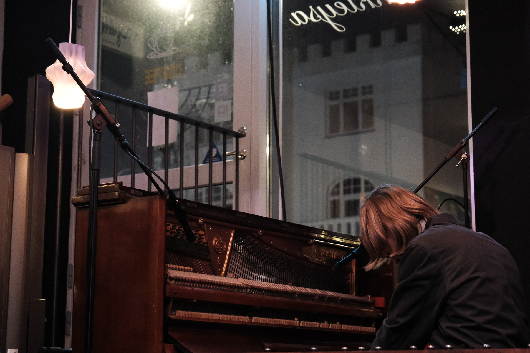 It’s so packed, all I can really see are glimpses of his hair and his 1970s synthesizer. He shares a quick story about it, saying it was once owned by Þórir Baldursson, who used it in Donna Summer’s studio sessions back in the ol’ disco days. Sweet! Magnús continues with a lush piano odyssey, moving from classical to contemporary soundscapes with ease. I’m definitely grabbing the next chance to see him play.