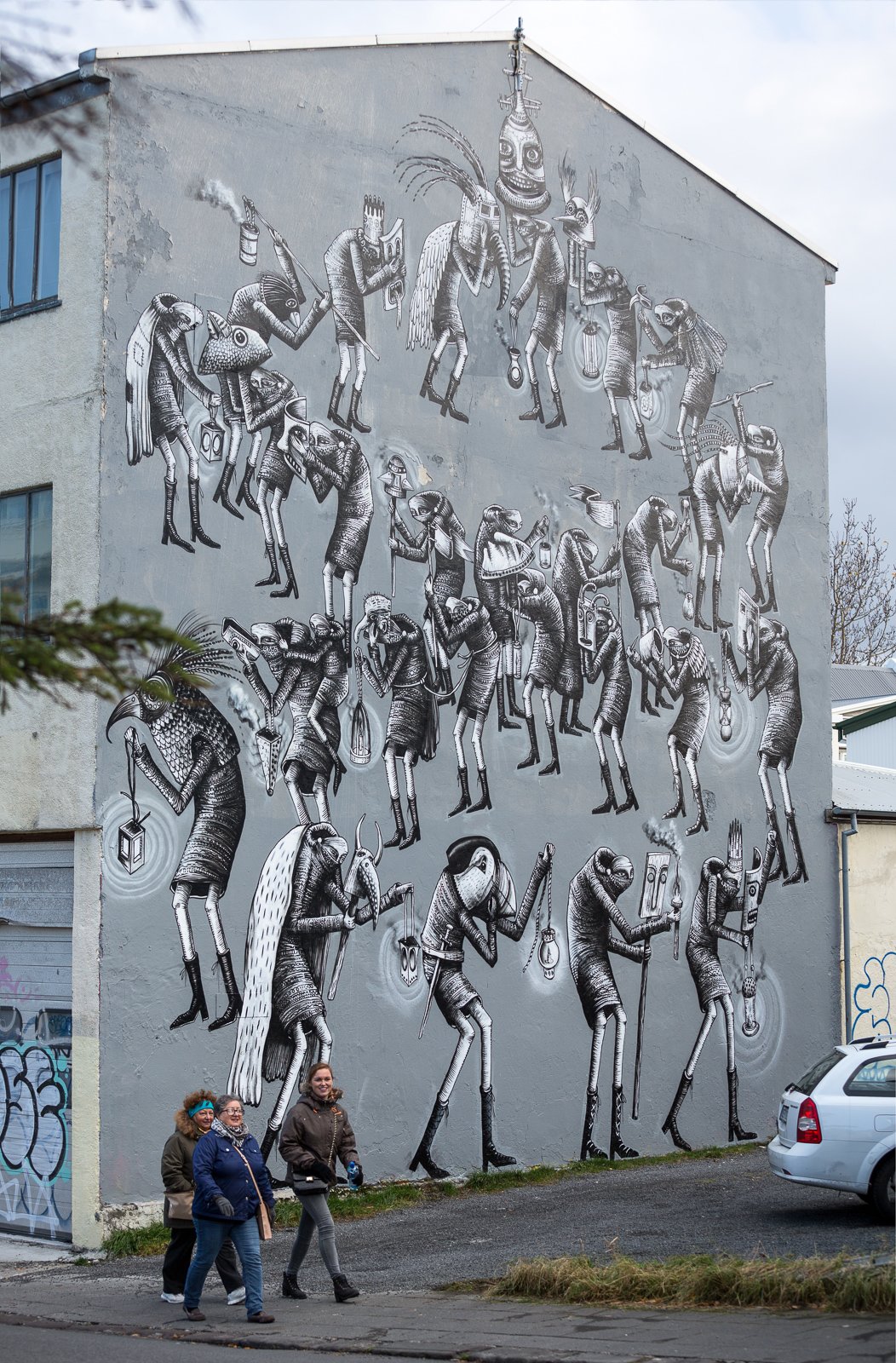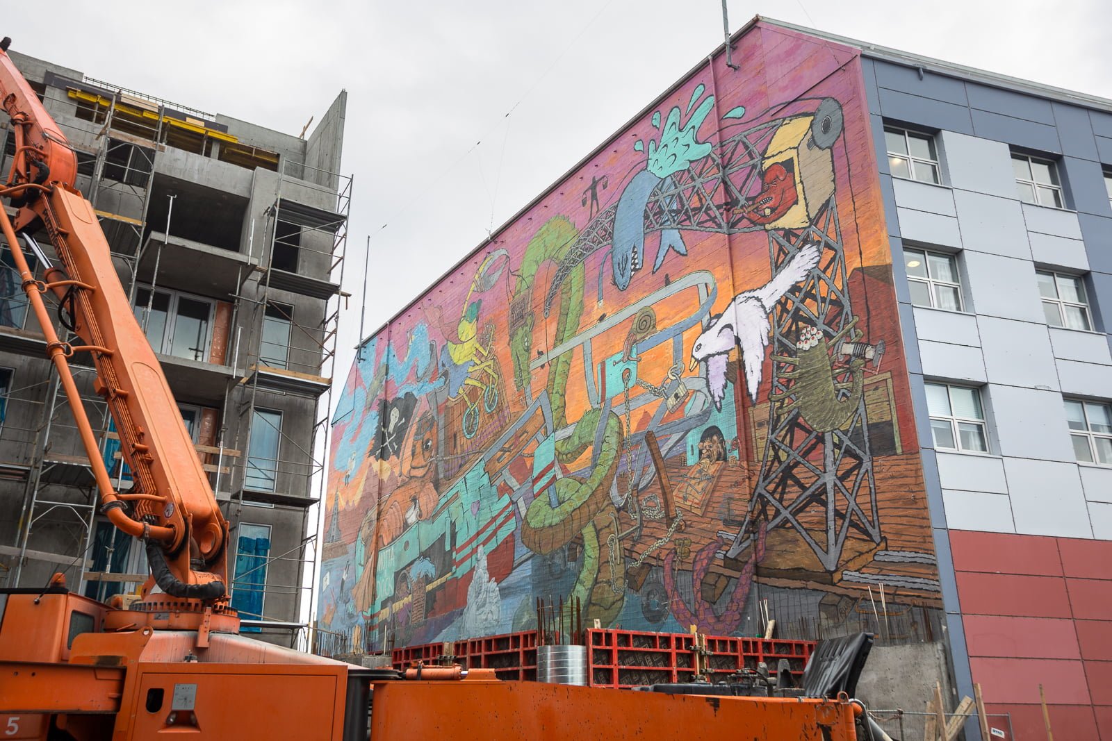 Airwaves completely takes over Reykjavík 101 each year, but since 2015, the festival is leaving a more lasting mark on the city. WALLPOETRY is an initiative that brings together music and street art into a series of ten towering, large-scale murals that can be found dotted around the festival area.