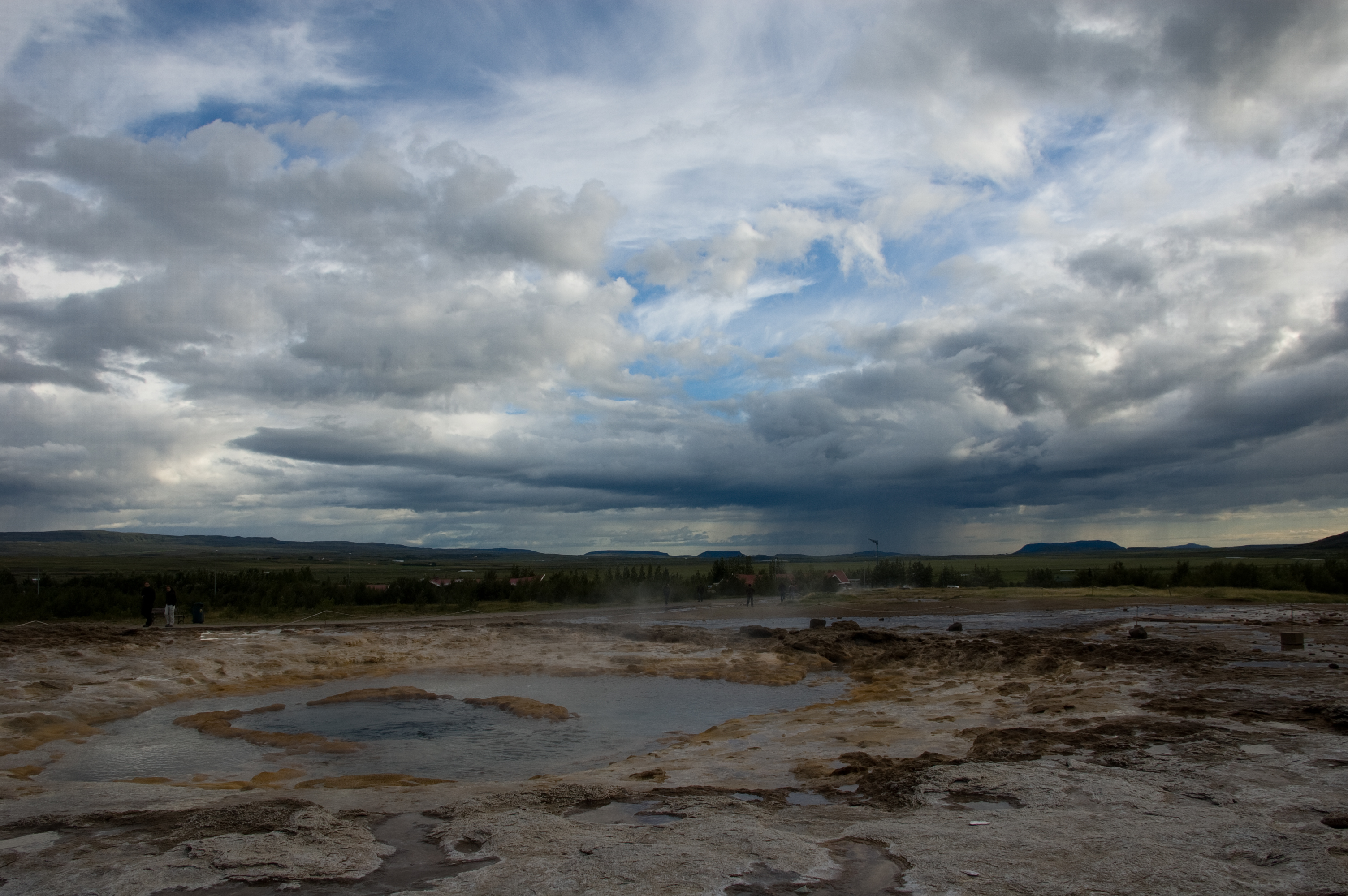 The main attraction there is now Strokkur, which erupts about every ten minutes, give or take. The eruptions can reach 40 metres, but average at about 15–20. Watching these eruptions is always exciting, often eliciting cries of “Again! Again!” from 40-year old men accompanied by clapping of the hands, which can be even more entertaining than the geyser itself.
