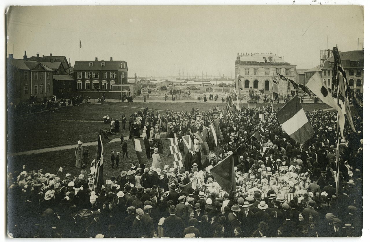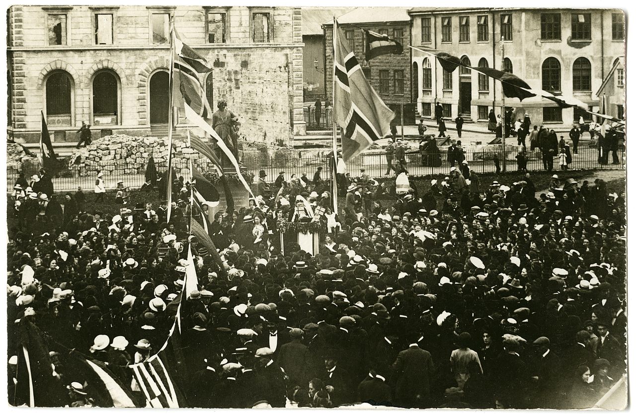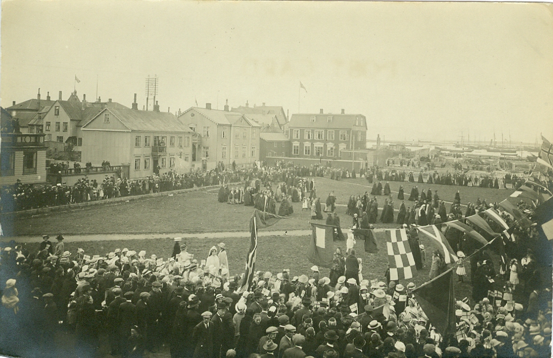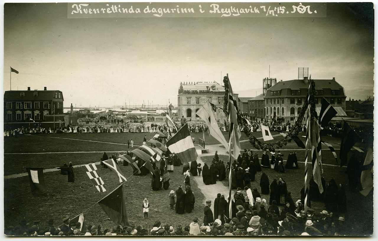 The photographs were taken by Magnús Ólafsson and Þorleifur Þorleifsson and in one of the images, leading Icelandic feminist and suffragette Bríet Bjarnhéðinsdóttir can be seen giving a speech from the podium.