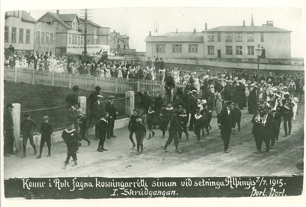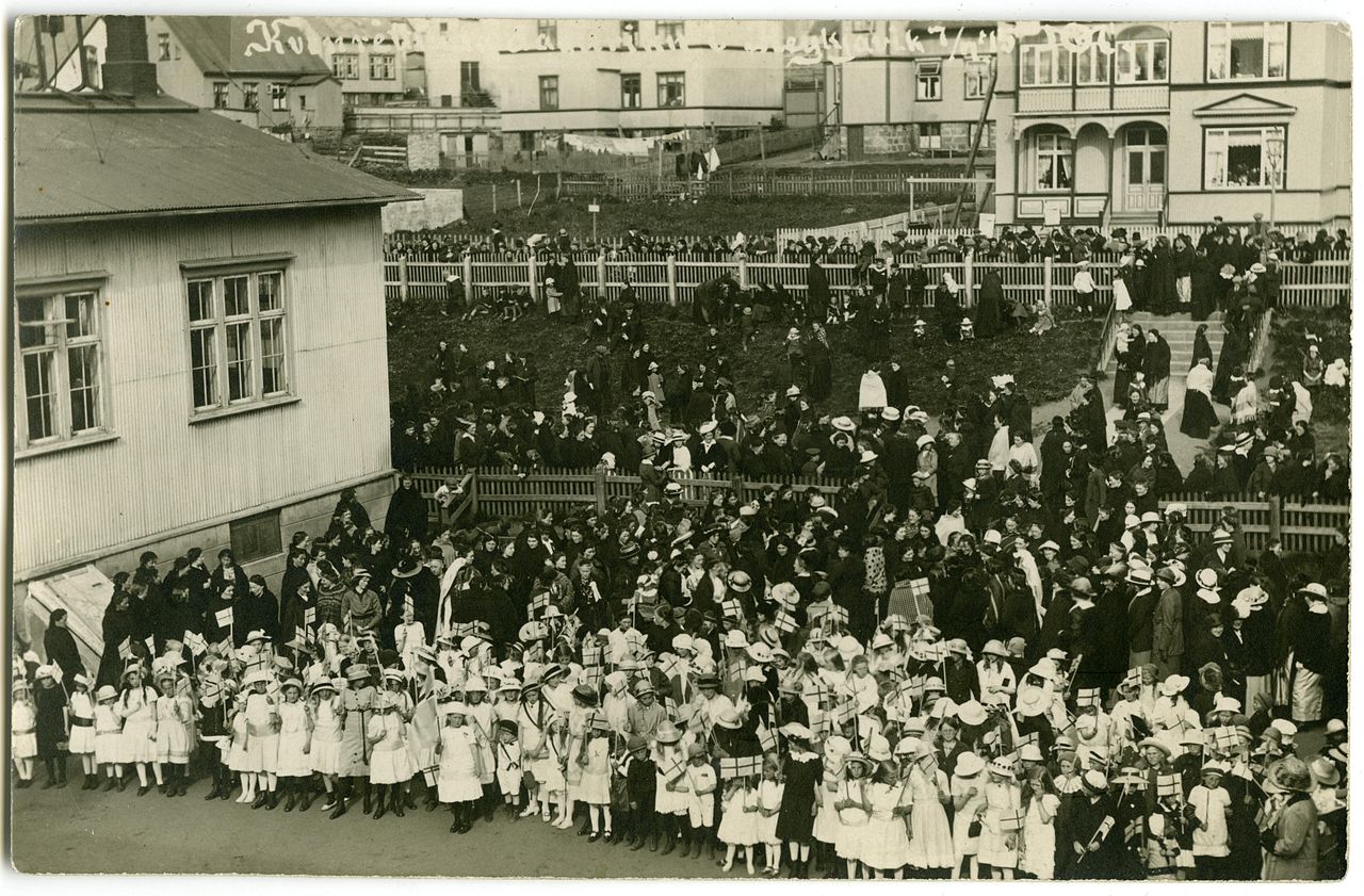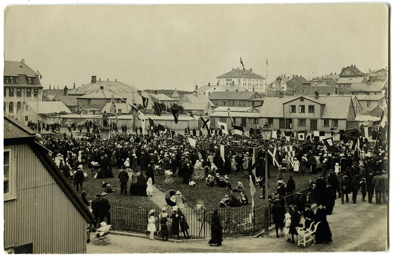 The photographs were taken by Magnús Ólafsson and Þorleifur Þorleifsson and in one of the images, leading Icelandic feminist and suffragette Bríet Bjarnhéðinsdóttir can be seen giving a speech from the podium.