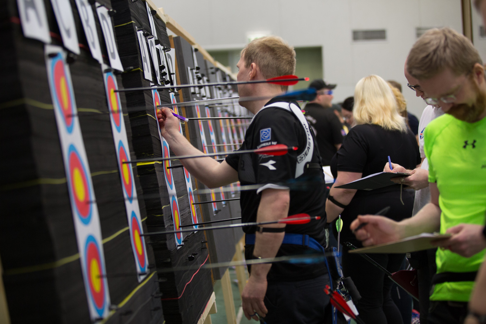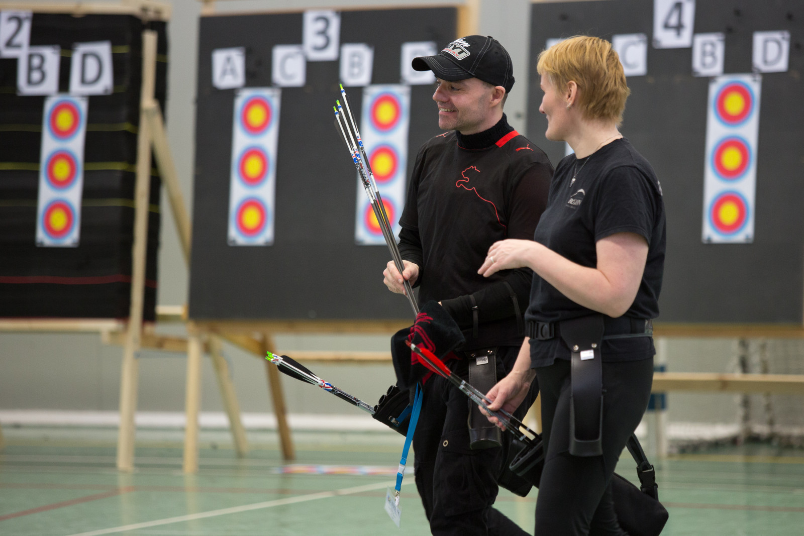 The Reykjavík International Games are being held January 16 – 25, and the Archery competition took place on January 17 & 18. The qualification round consisted of FITA triple 40 cm targets for Compound bows and Recurve bows. Archery has always been the sexier cousin of target shooting—rich with history and drama. Also, it isn’t mentioned enough, if you accidentally shoot your friend with anything lethal, a bow and arrow is the most comical.