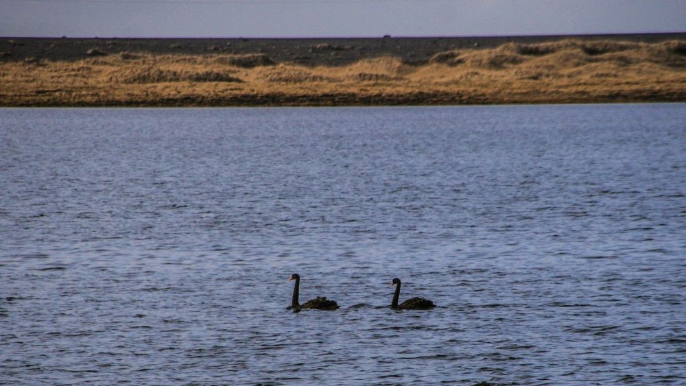 A couple of black swans were spotted off the coast of Dyrhólaey in south Iceland yesterday by Gunnar Þór Gunnarsson with Árstíðarferðir Tour Company and a group of tourists, reports RÚV.