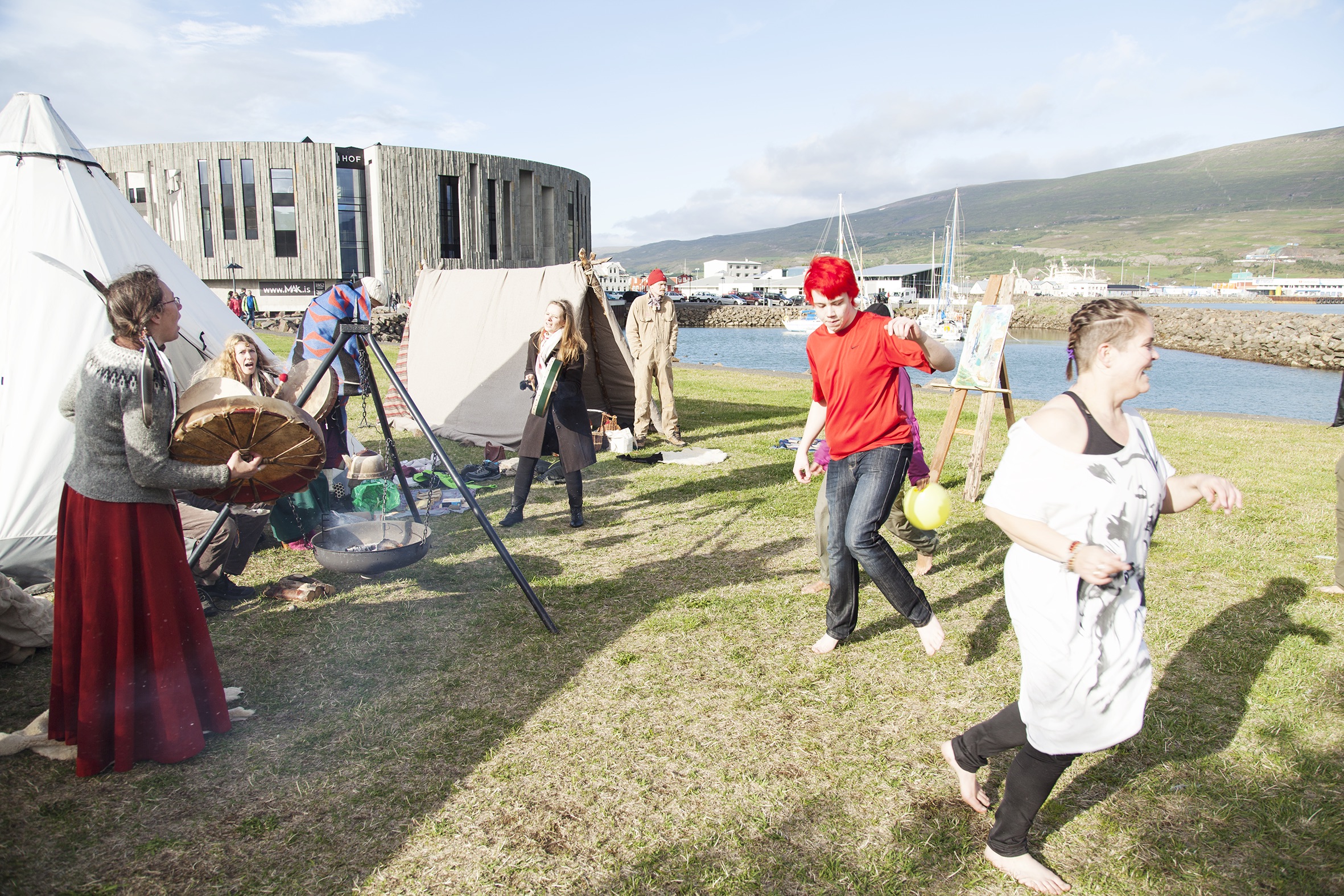 As luck would have it, myself and photographer Anna Domnick found ourselves landing in Akureyri on the Saturday of the festival, on our way to a tour in the highlands. We took the opportunity to run around the town to get a flavour of what was going on, and quickly found ourselves pulled into the festival via a seaside folk-song sing-along and a sail around the harbour on the famous old oak-hulled ship Húni II.