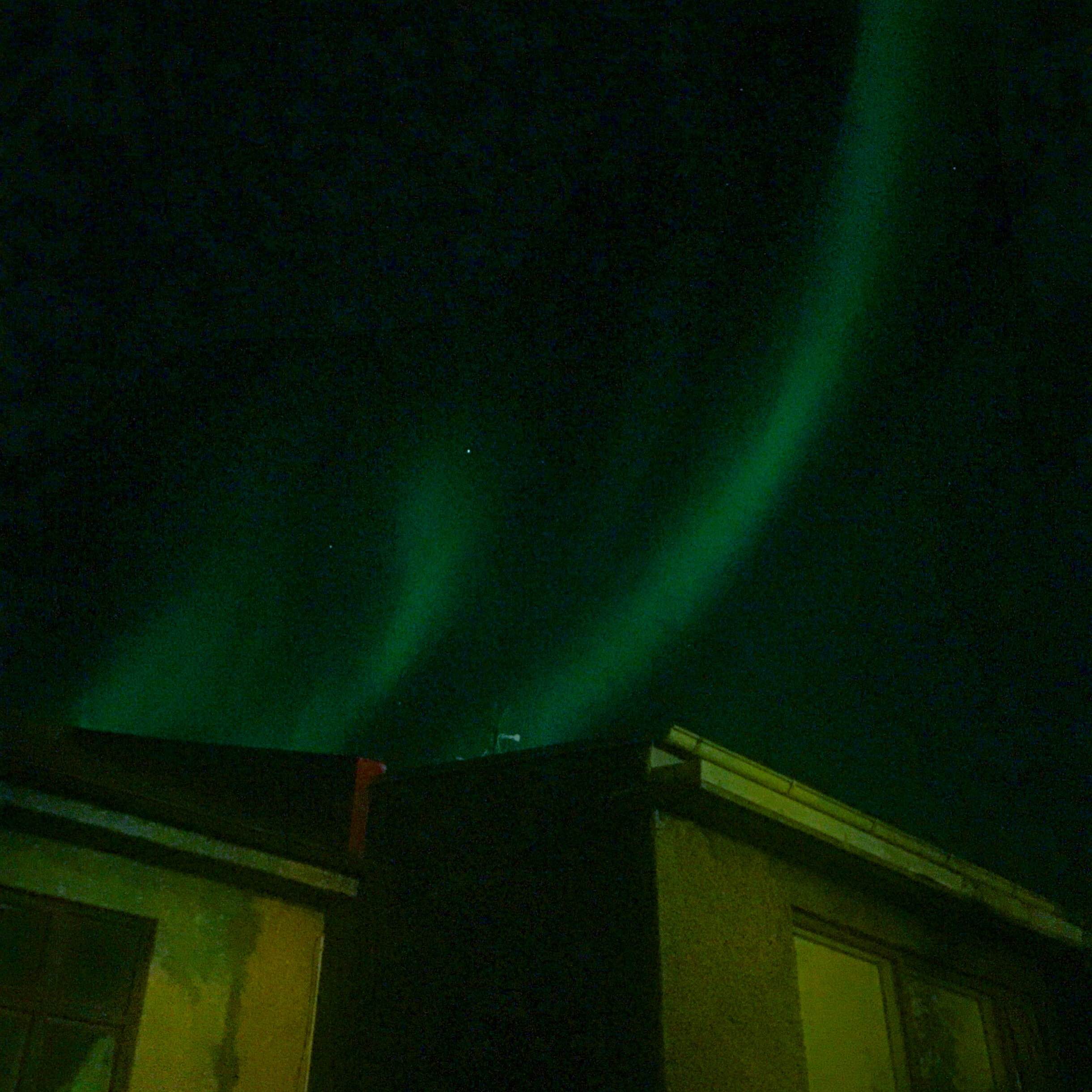 The coming of the dark nights heralds the end of summer, but it’s also the time that the flickering aurora becomes visible in the sky over Iceland. Last night, on the night of the equinox, there was a big display of northern lights visible from all over Reykjavík. It was mostly green, with pink tinges around the edges, and kept up continually for several hours, from thin, dancing streaks in the west, to a fat band of bright pink-tinged green light going right across the sky.