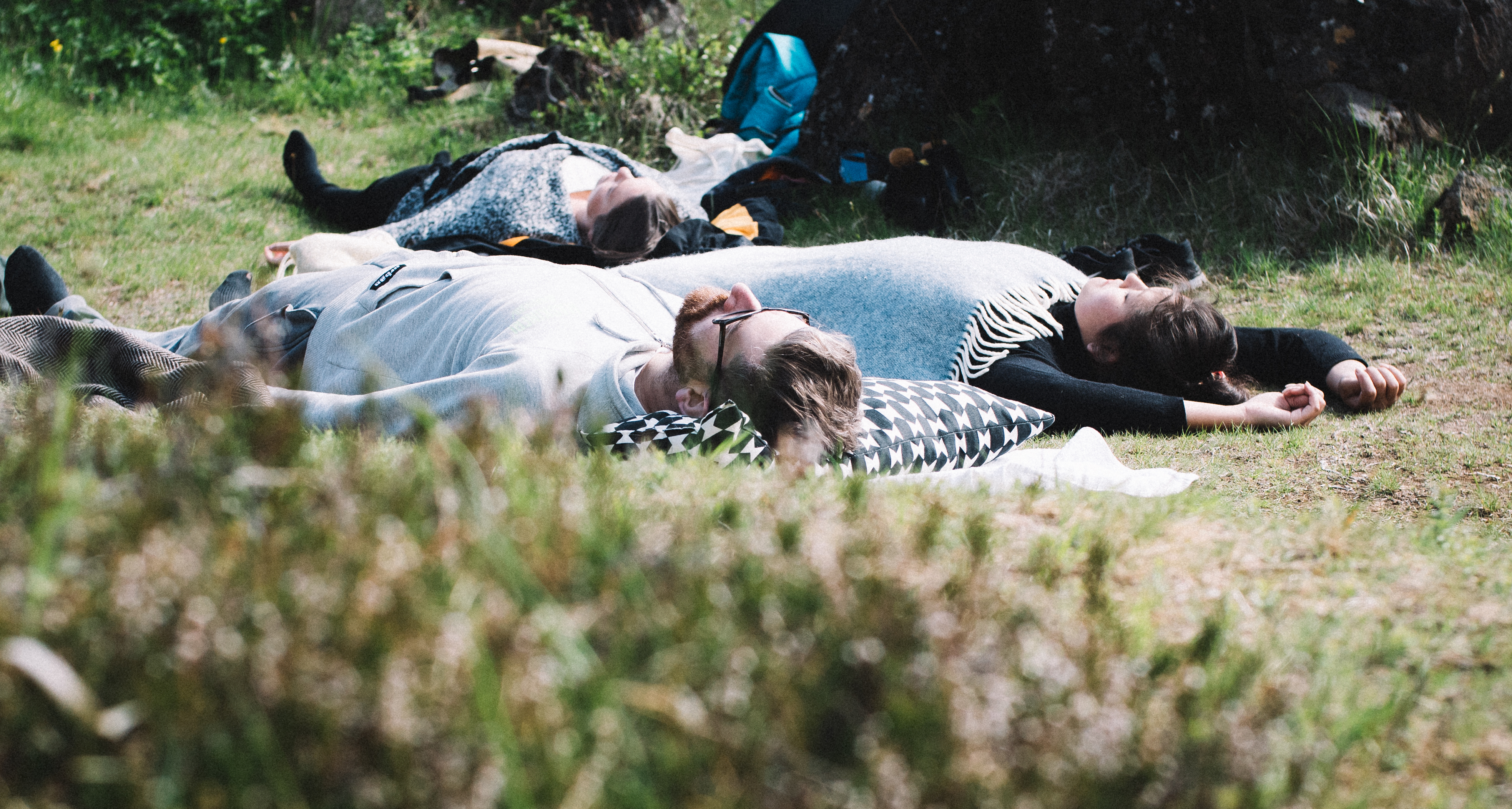 This is what we focus on during the gong meditation. We lie on the grass and Arnbjörg starts to run the mallet around the gong’s circumference slowly, creating a resonant, organic droning sound. She intermittently strikes the gong, in three different chapters of rhythm, creating a hypnotic sound that seems to draw us in and silence all other thoughts. I drift away into a dreamy, meditative place where I’d have been happy to remain all day.