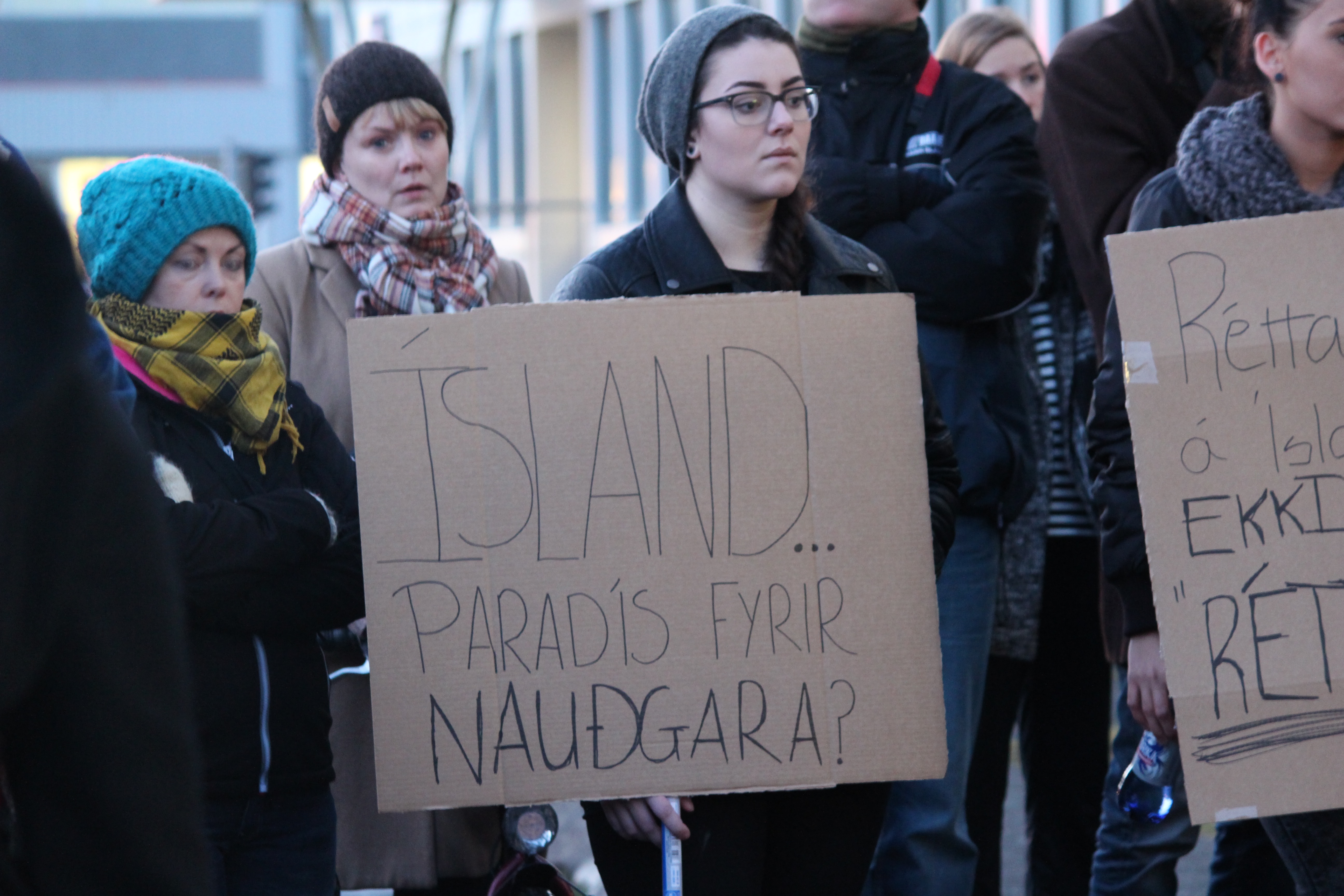 Following the highly debated case of two suspected rapist-torturers leaving the country after police decided not to take them into custody, hundreds showed up to protest outside the metropolitan police station in downtown Reykjavík today.