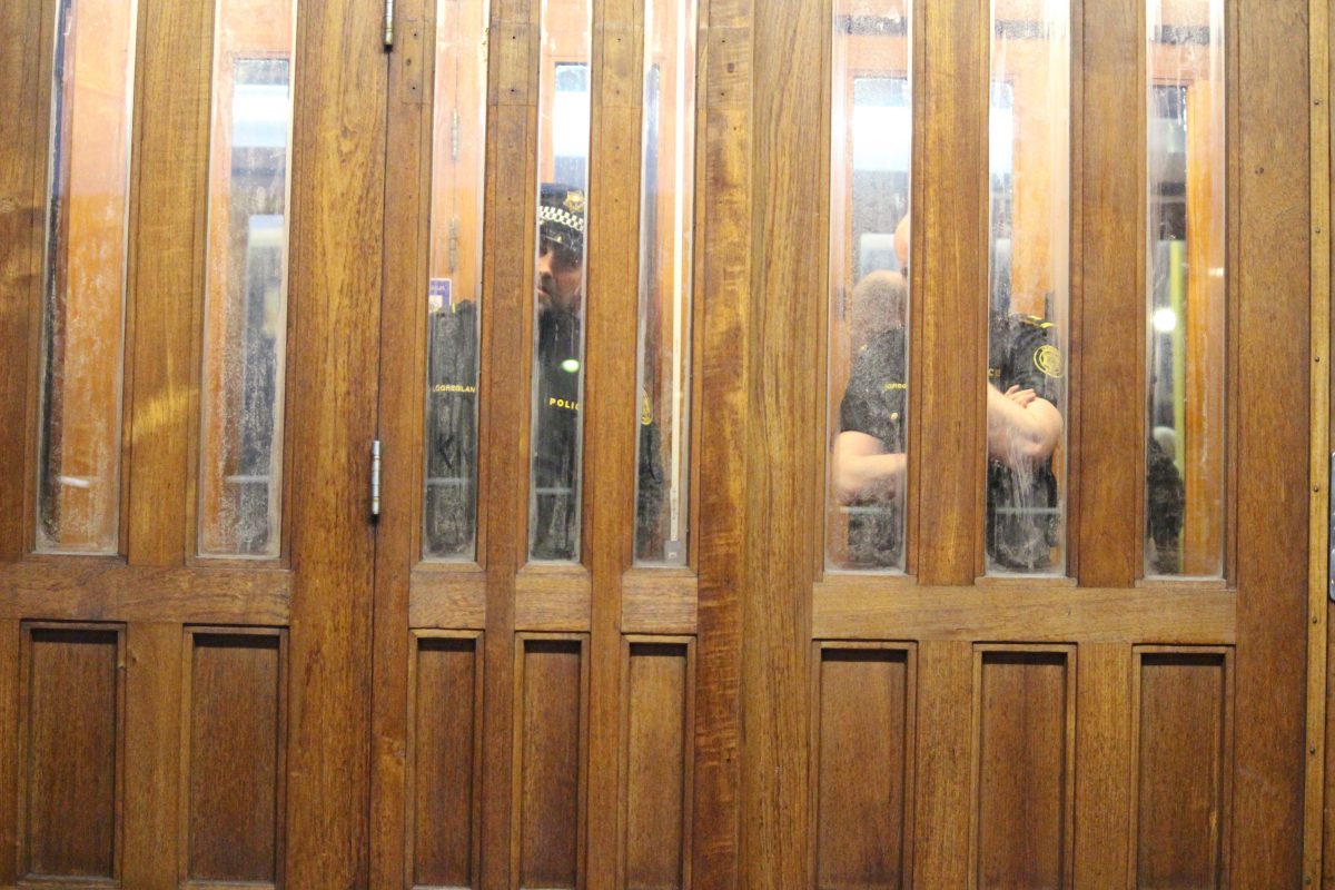 Despite numerous challenges to step outside, the police did not interact with the protesters.