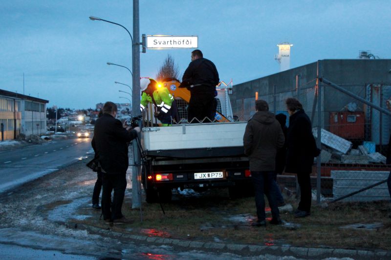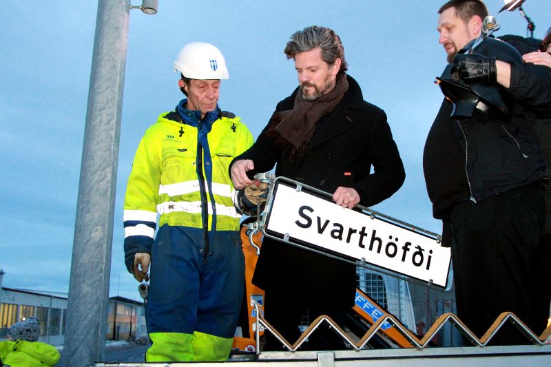 As the new road sign was installed, Óli (who recently published a game called #Kommentakerfið) donned a Darth Vader helmet. Wouldn’t you have?
