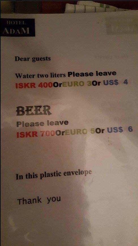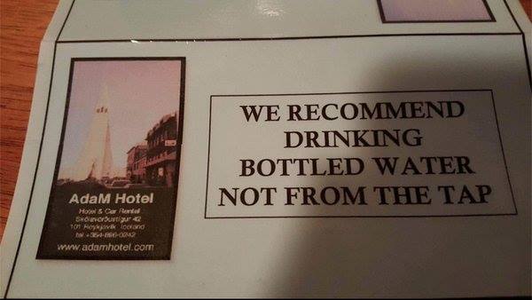 AdaM Hotel caught the attention of those who work in the tourism industry yesterday when photos posted by Reykjavík Energy show that the hotel recommends its guests avoid drinking tap water and buy bottled water instead. Amongst the bottled waters on offer are those labeled as the hotel’s own.