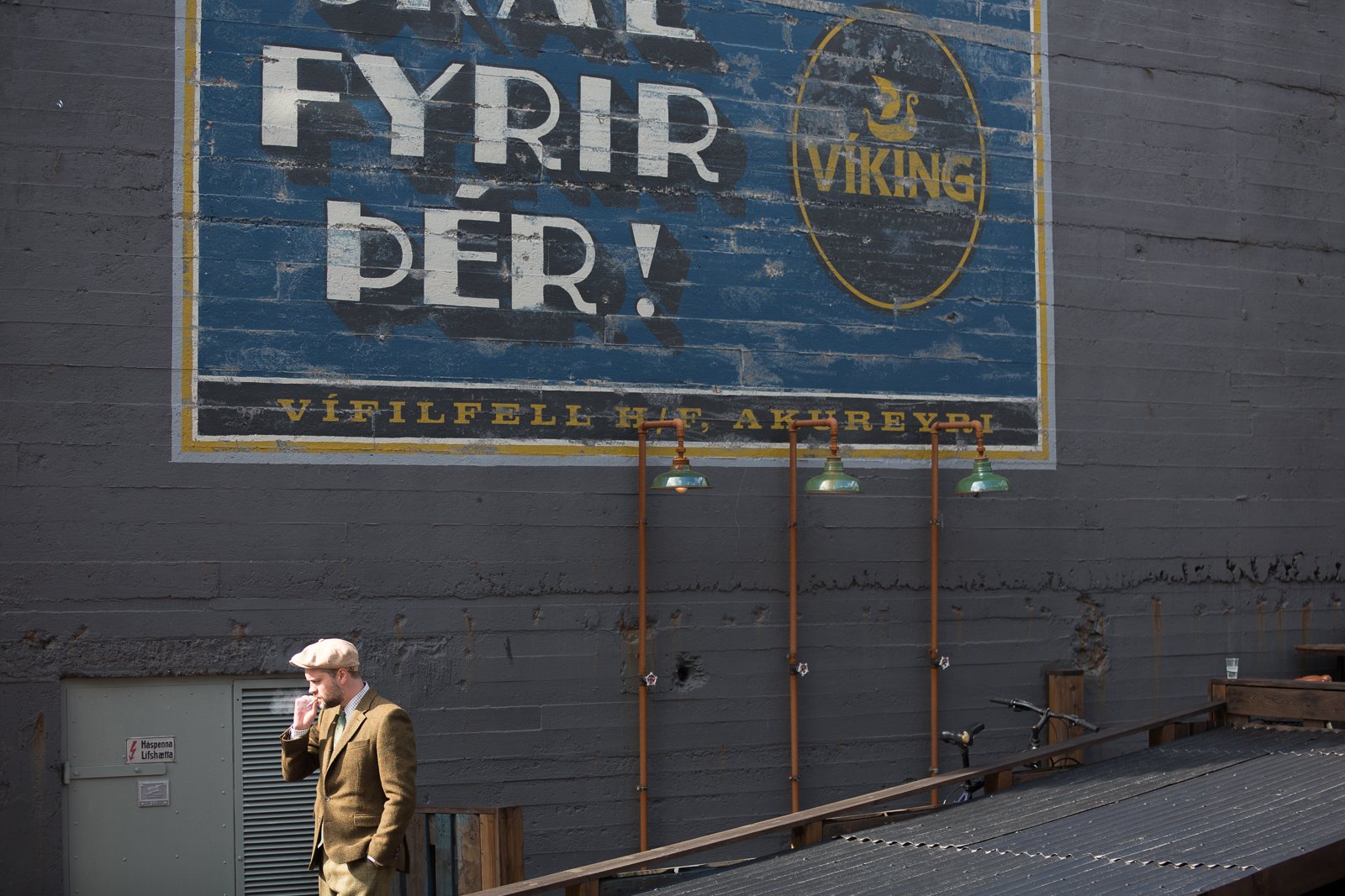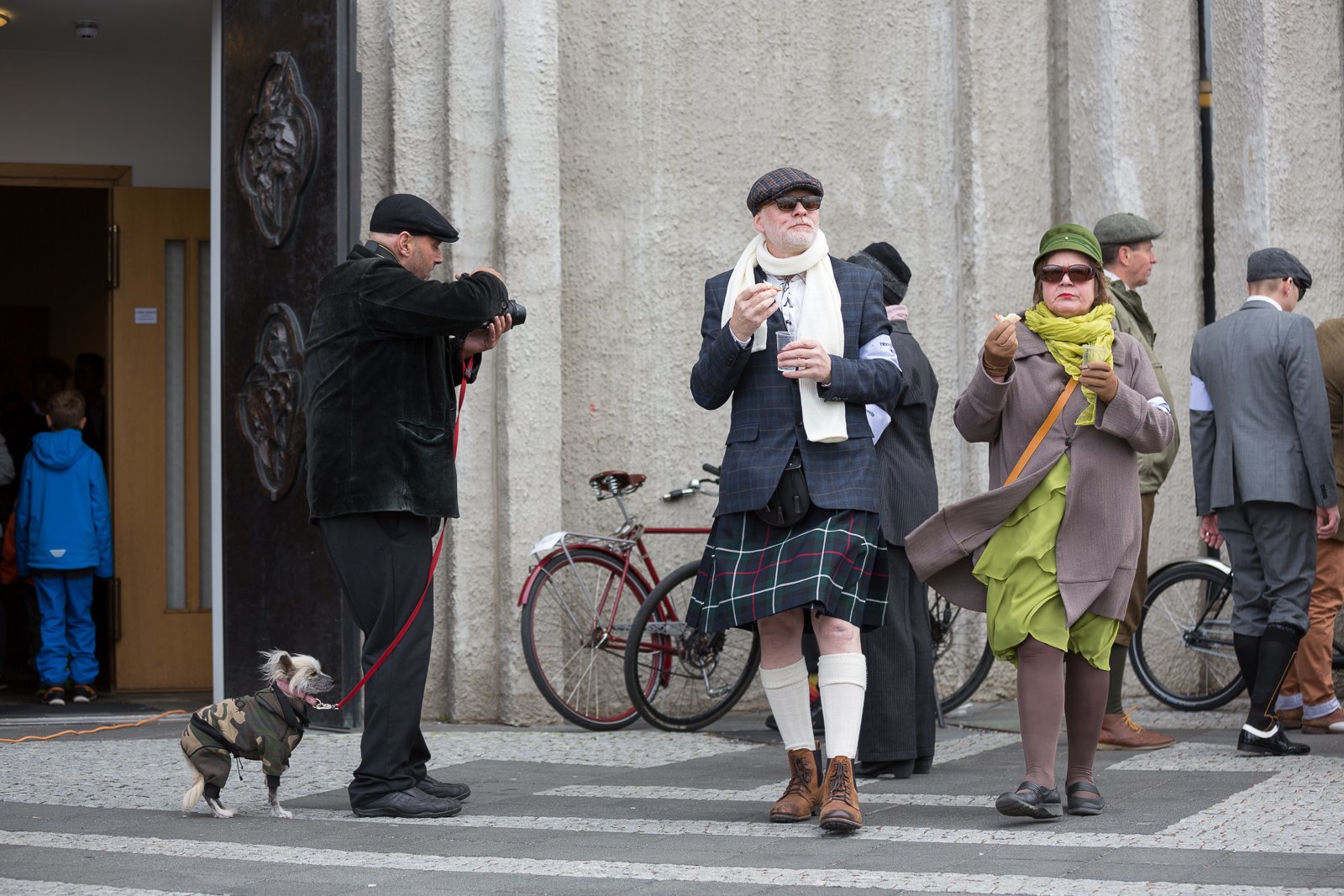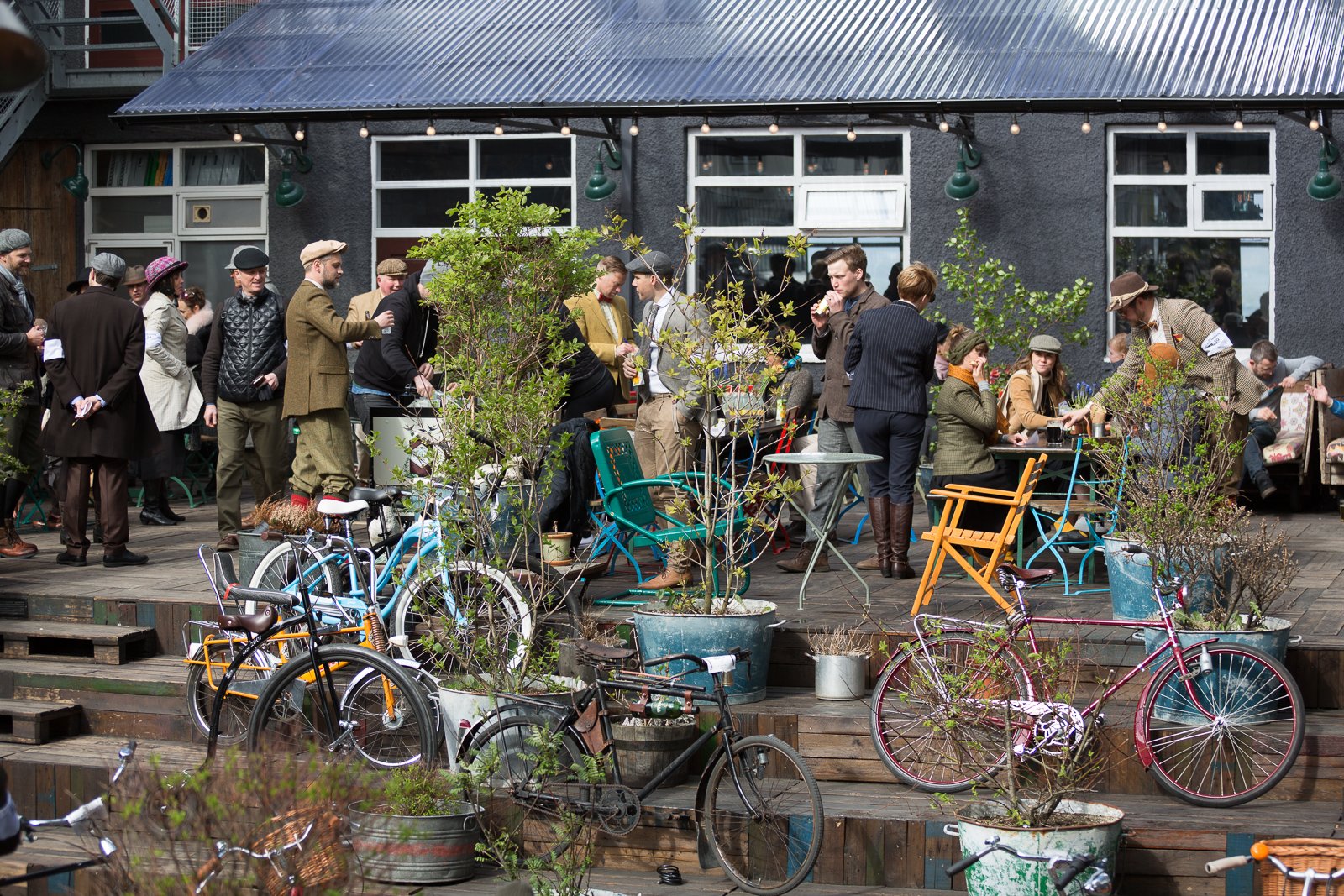 The participants got dressed up in typical English old-fashioned clothing and brought their antique bikes to Hallgrímskirkja church on top of Skólavörðustígur. The ride went from the church down to The Pond (Tjörnin) where the riders turned west for Hringbraut. From there they headed for refreshments at Matur og Drykkur at Grandagarður. Finally, the riders headed back east for Kex Hostel for a final celebration.