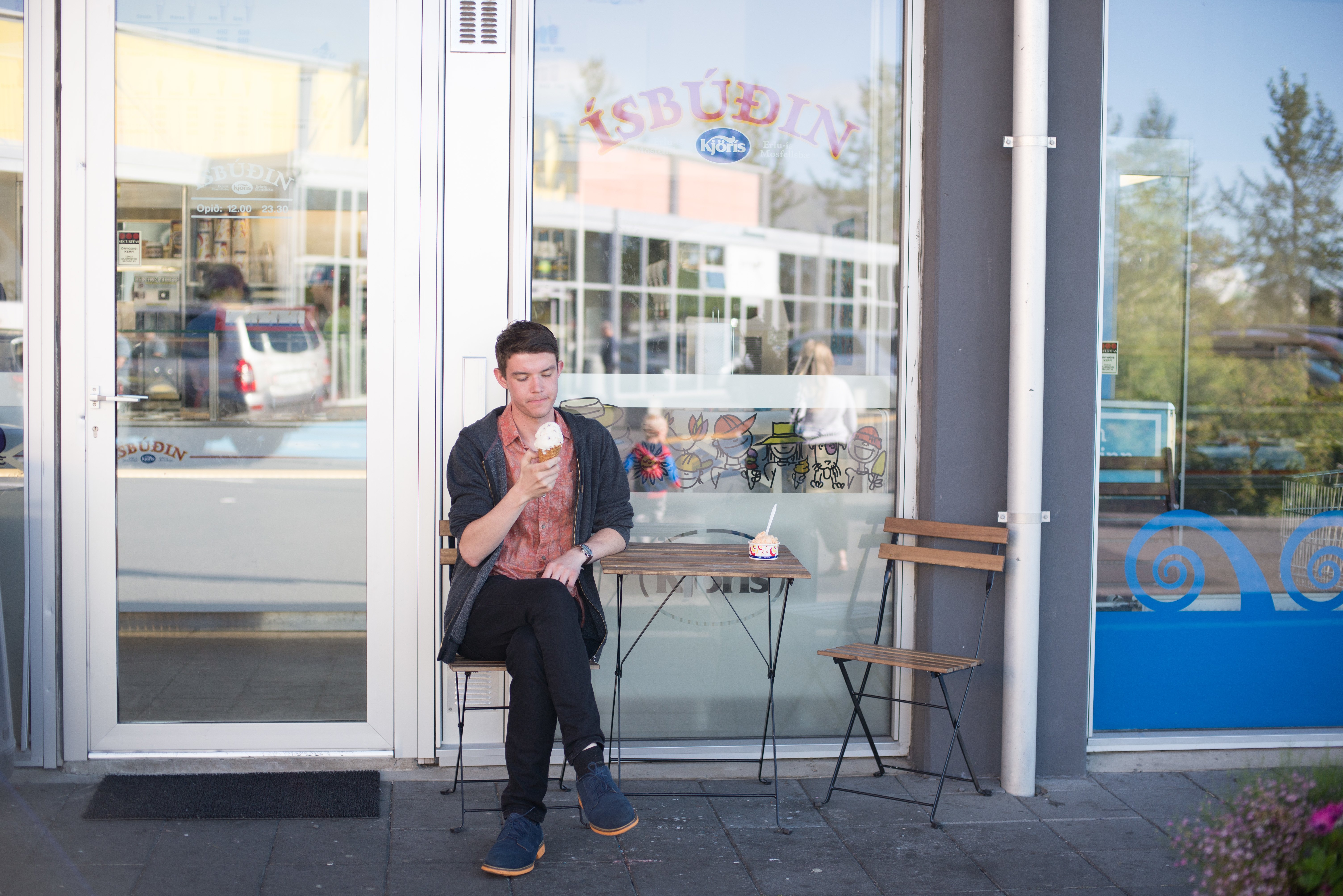 Another favourite Icelandic dating activity, Hrefna tells me, is to go for ice cream. A new ice cream store has just opened in Mosfellsbær, but to be completely honest, getting ice cream in Iceland makes me nervous because there are just so many damn options. Thankfully, the store is empty when we arrive, giving me plenty of time to mull over my selection (caramel and liquorice) before basking in some parking lot sunshine. Again, I’m not sure how this dating tradition would fly in North America (too messy?), but I don’t think I’d be wrong to claim that fewer relationships would end in breakups if there was more ice cream involved.