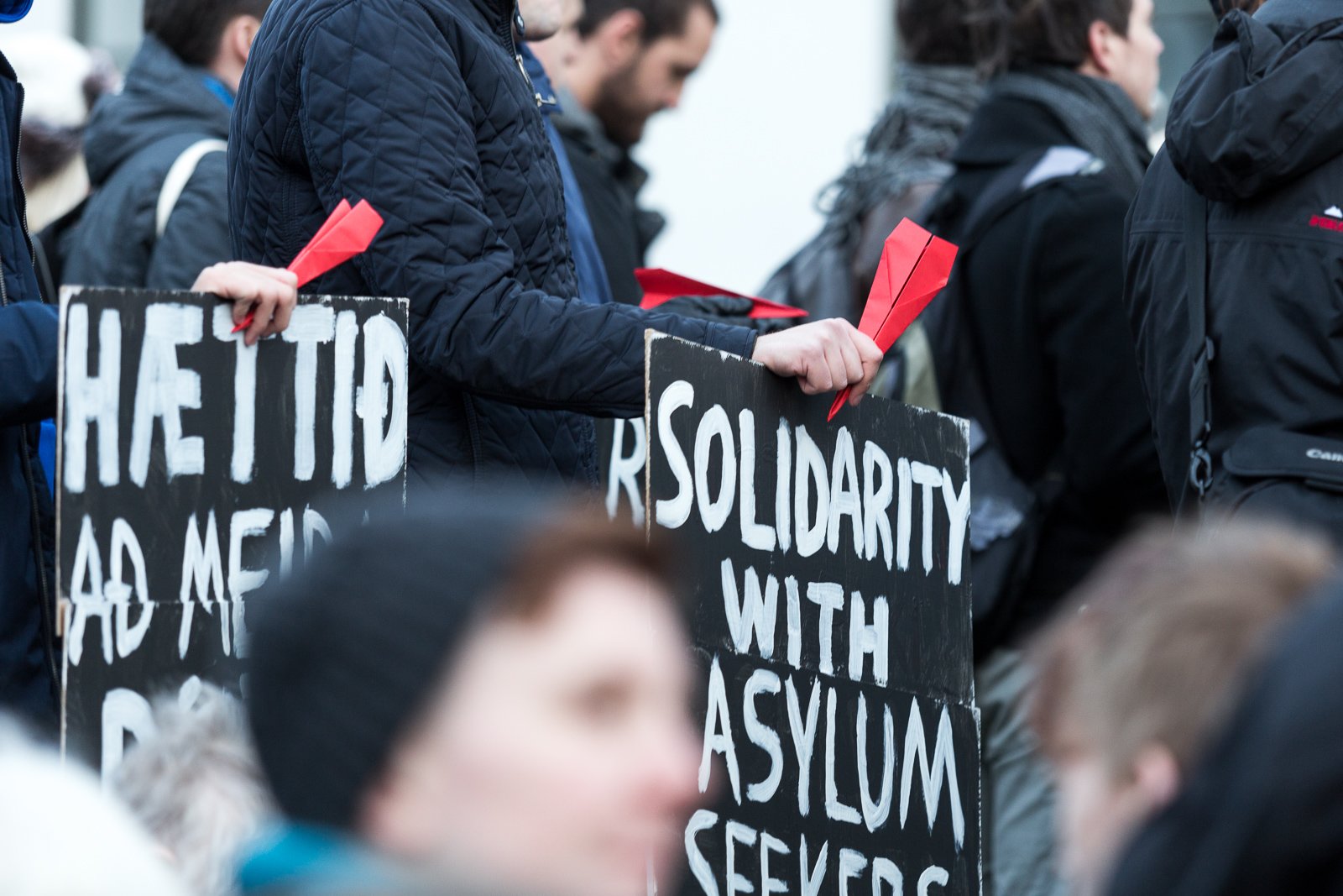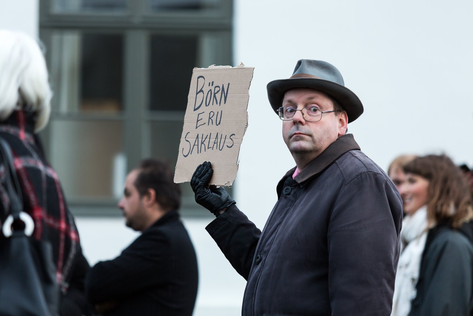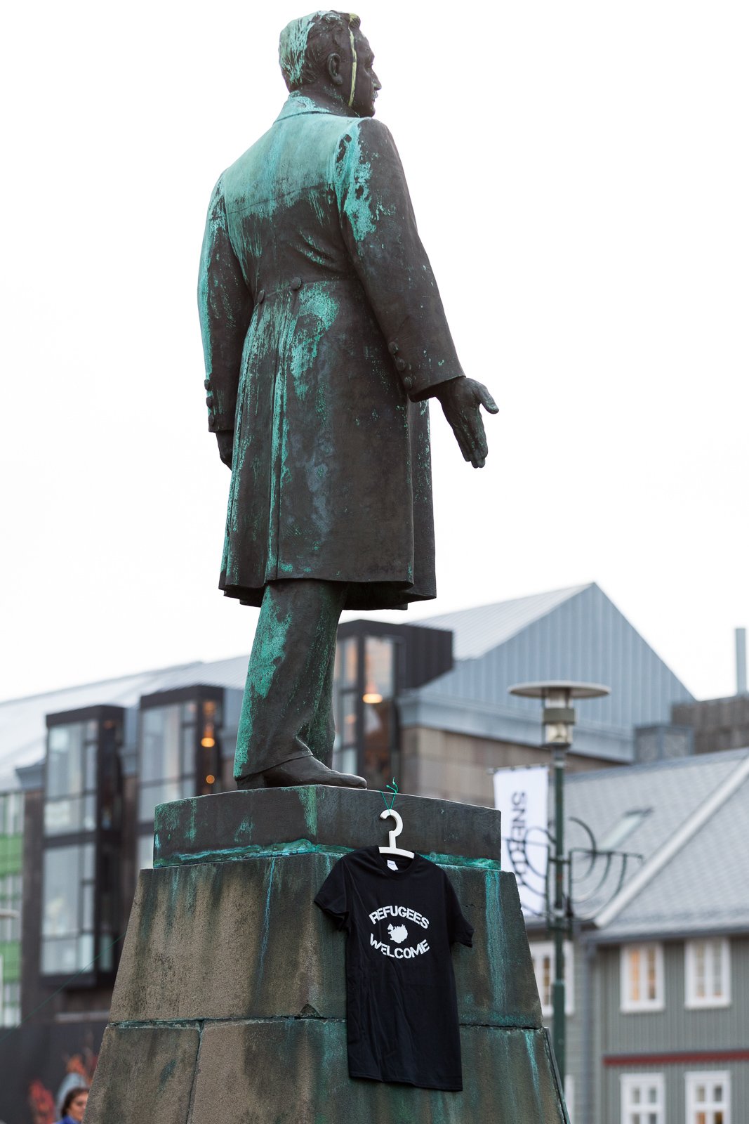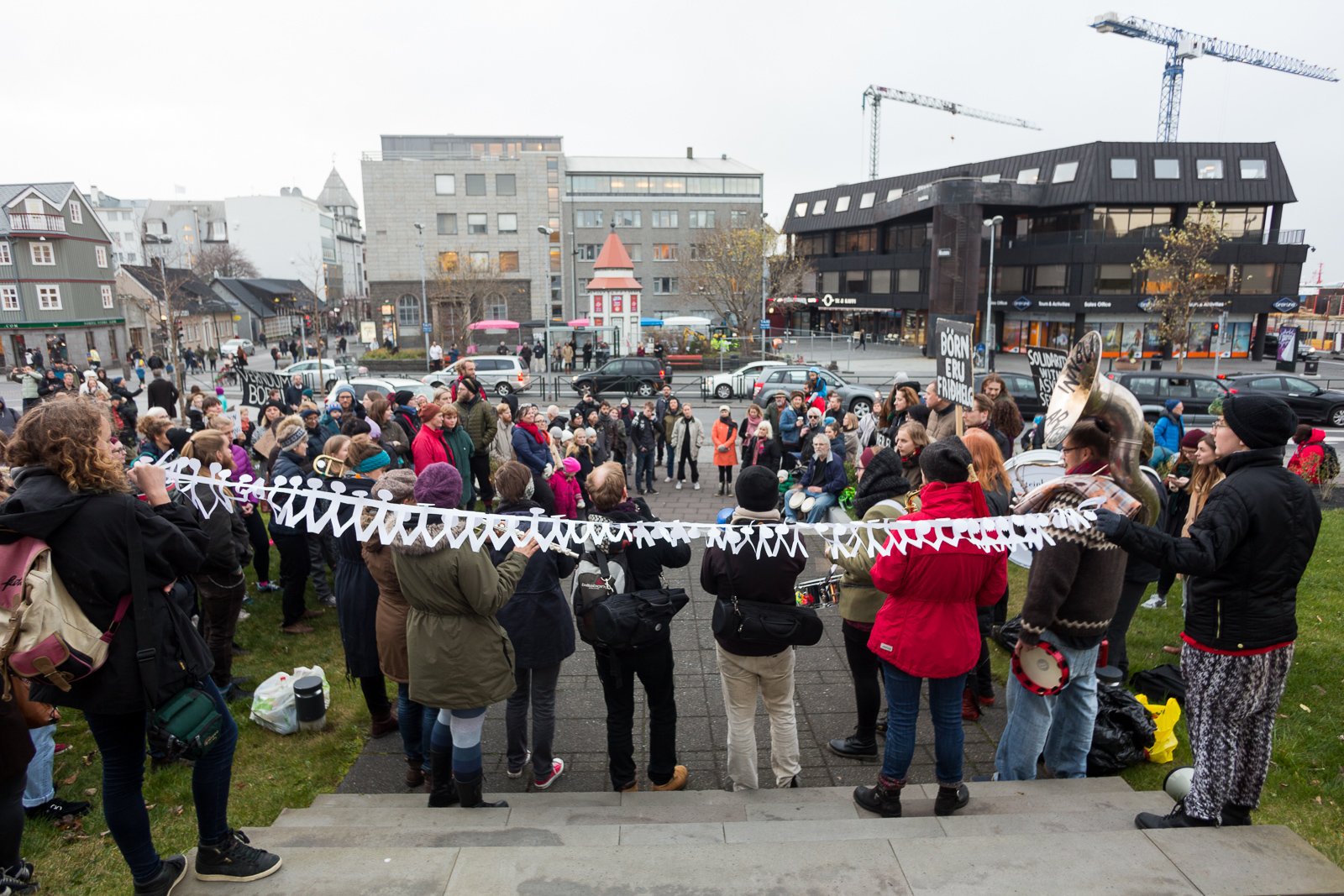 Banners were festooned around Government Offices as people formed a gauntlet leading to the front door of the building. Protesters on the scene pointed out that, according to Article 21 of the Act on Foreigners, “a foreigner born in Iceland, who has since resided permanently and continuously in Iceland, can not denied entry to Iceland or expelled from Iceland”. Despite this fact, the Directorate of Immigration (UTL) has deported or ordered the deportation of families, some with young children who were born in Iceland.