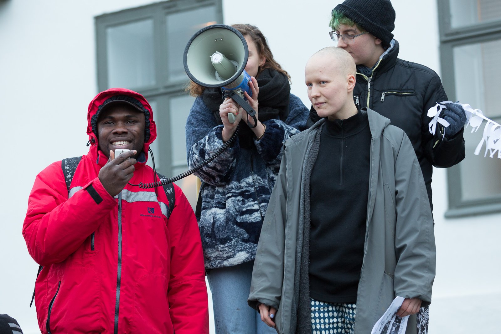Speakers included not only Icelandic organisers, but also asylum seekers themselves – some of them currently facing deportation – thanking the Icelandic people for their support, while encouraging the government to rethink its position on these deportations. (Article continues below video)