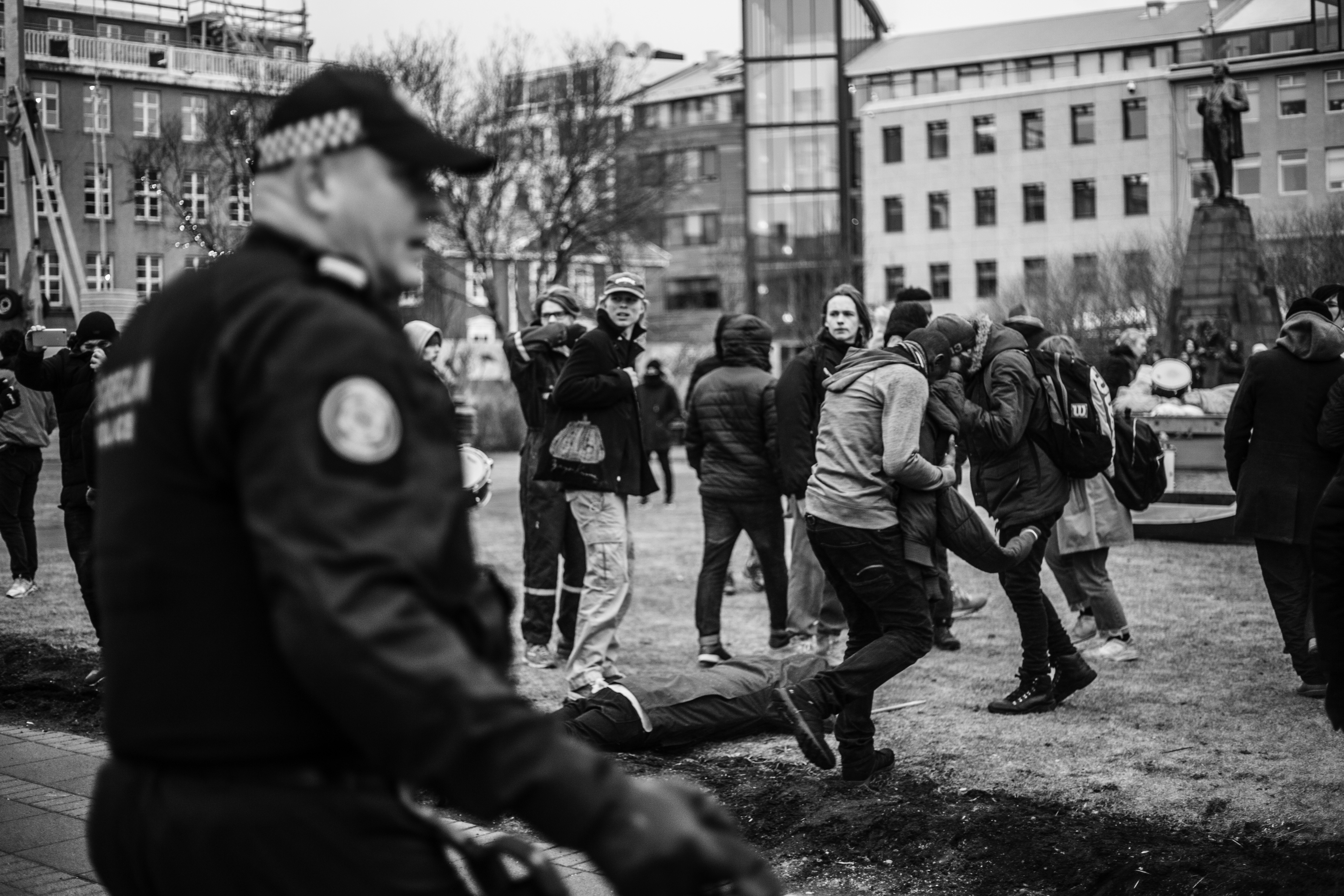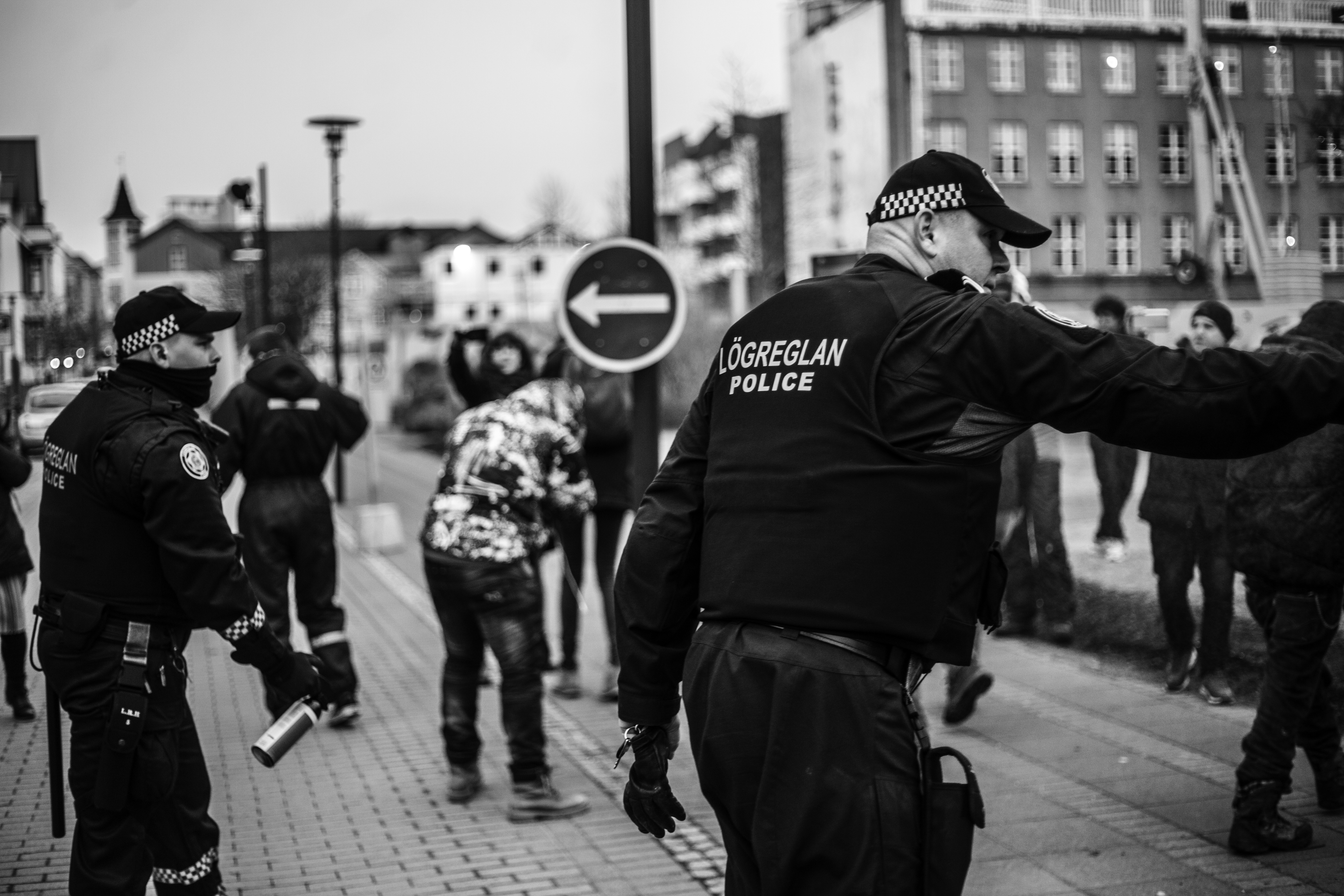 Update: Ómar Sverrisson, the photographer who was reportedly punched by a police officer, has graciously sent the Grapevine some photos from the demonstration: