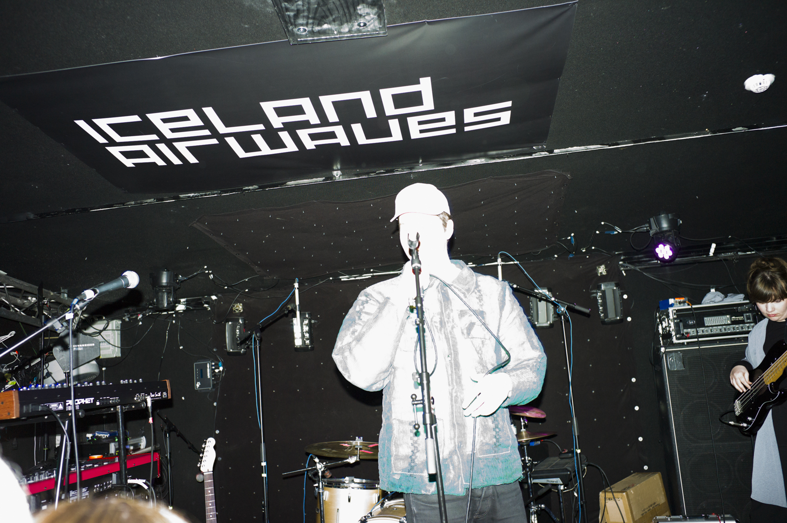 Day 2 at Airwaves had more. Bigger crowds, longer queues, more rain, wind and most of-all: More things to see and hear. The multi-talented artist Krassasig—of band Munstur—performed his first solo-concert tonight at Gaukurinn where my night started-out. He appeared confident and spoke to the audience on a friendly note. His keyboard and drum-backing was majestic and radiant and a nice fit with his bright, unconstrained vocals. He was in a rather jolly mood as he invited JóiPé to join him for a track and then he spoke of his upcoming music-releases. The audience was more than happy to join him in the excitement. The venue filled slowly and steadily until he played his last song to a full-house.
