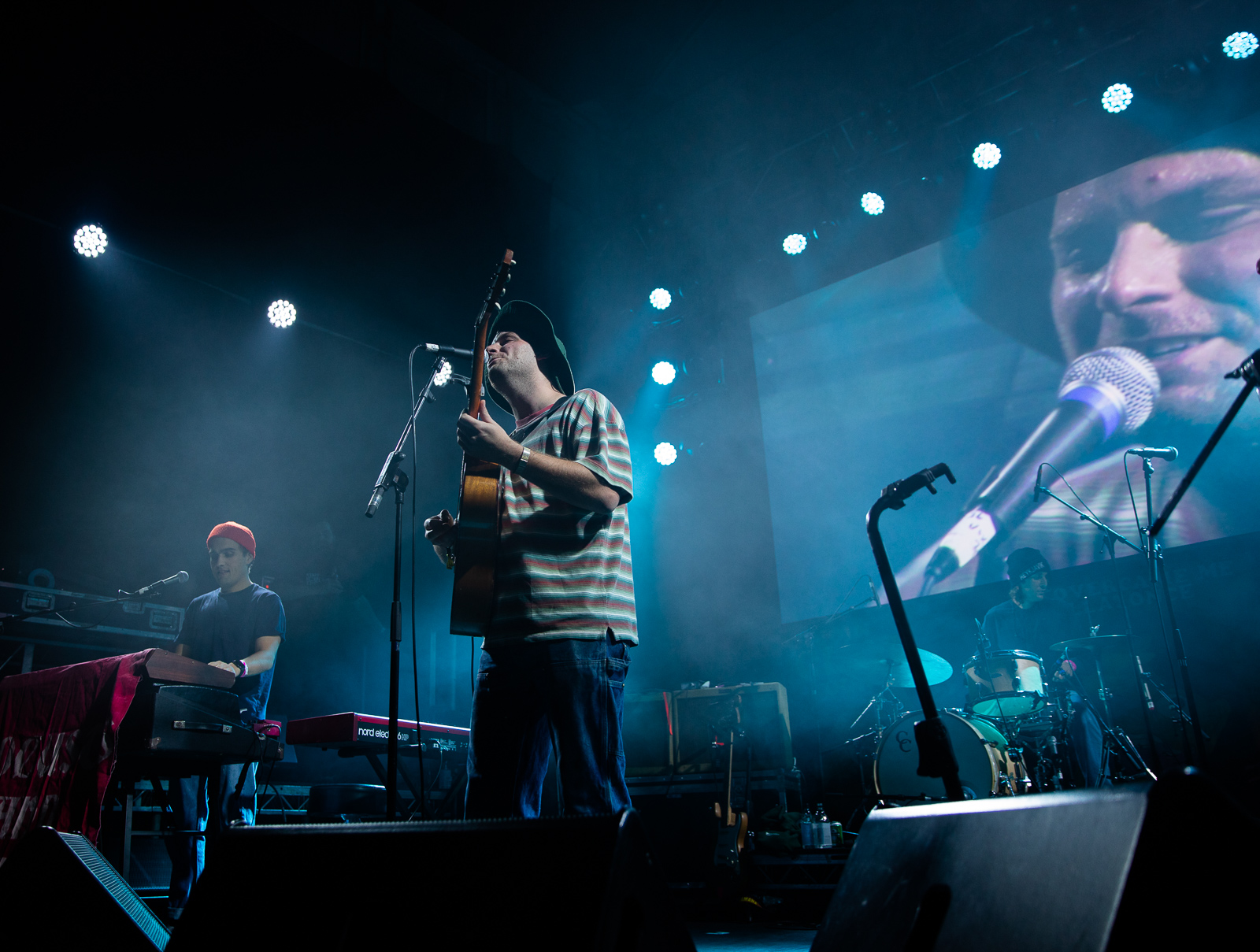The last time Mac DeMarco played Iceland Airwaves was six years-ago to a relatively small crowd. That time at Harpa, but now to a jam-packed venue at The Reykjavík Art Museum; the first stop on a new band-tour. The visuals aided the already notoriously light and humorous vibe of DeMarco and his bandmates. It was a live-feed of the band playing, filtered through various old-school effects like fisheye-lense and once-in-a-while, clips of old TV broadcasts of American wrestling matches would play. Following a series of wry jokes about the Icelandic weather, he expressed truthfully his appreciation of Iceland and that he would want to come back soon.