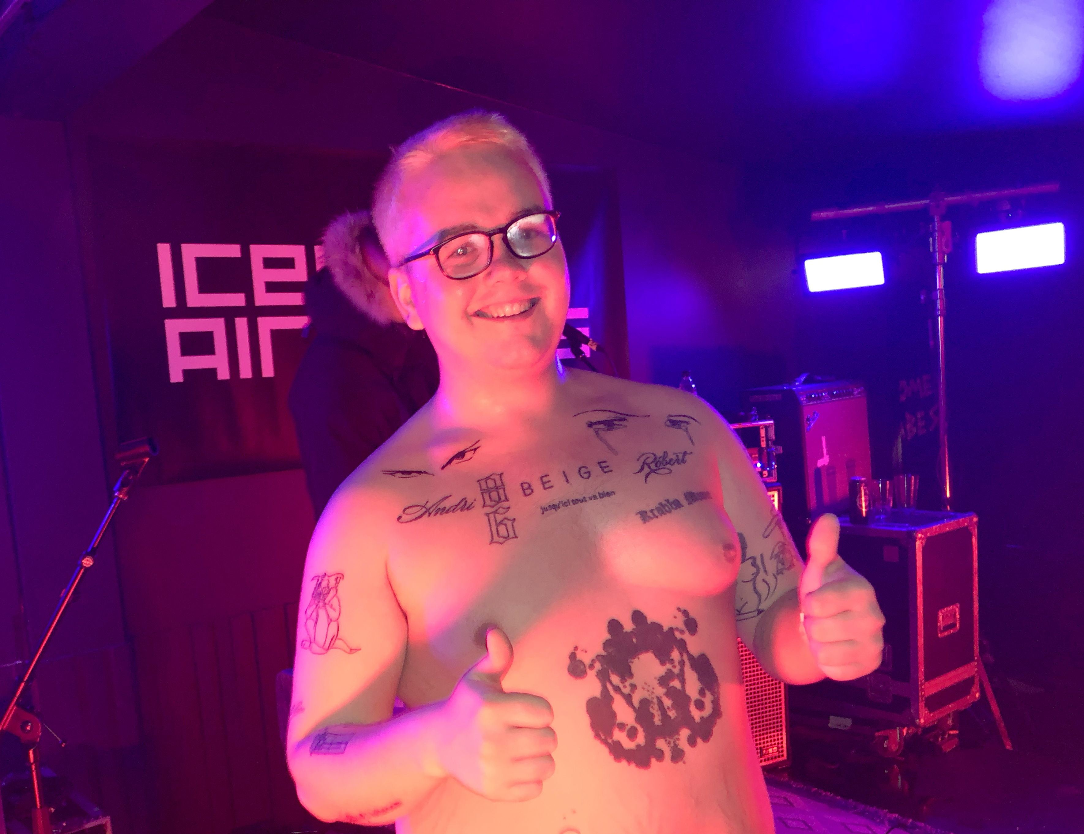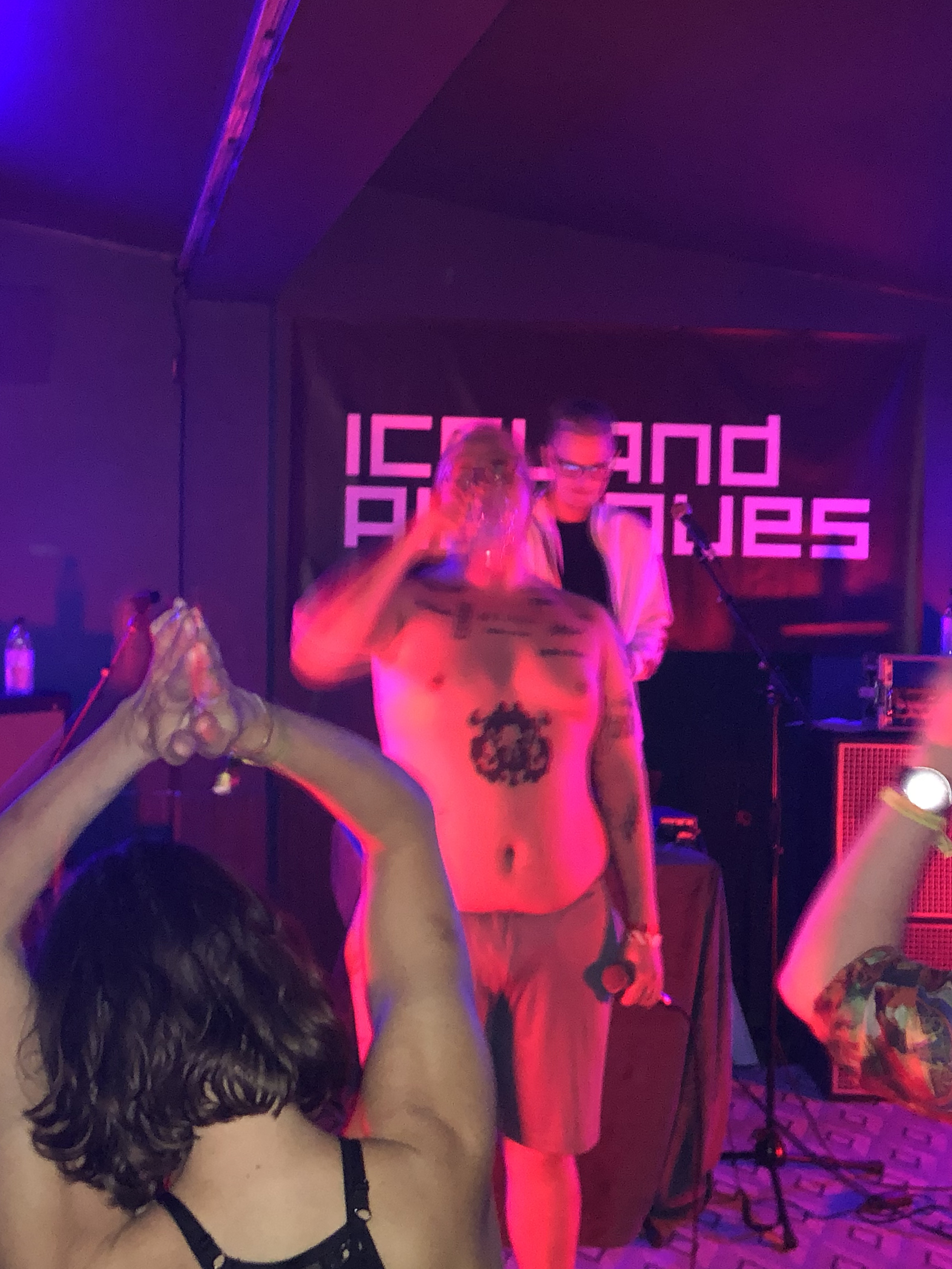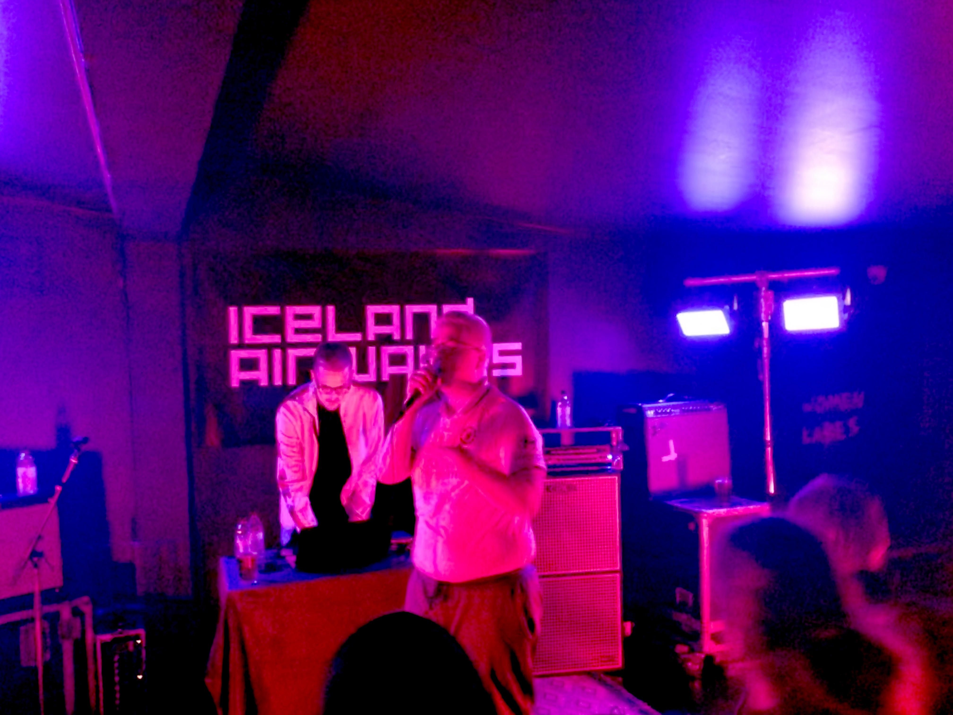 Auður played at the Reykjavík Art Museum, He was in a skin-tight shirt and flexing these silver pants that looked like they had done a ton of cocaine before going onstage. But Auður was energetic, running around singing his lungs out. In the next song, he grabbed an electric guitar and played it seamlessly, aiming it into the crowd like he was literally going to burst all over.