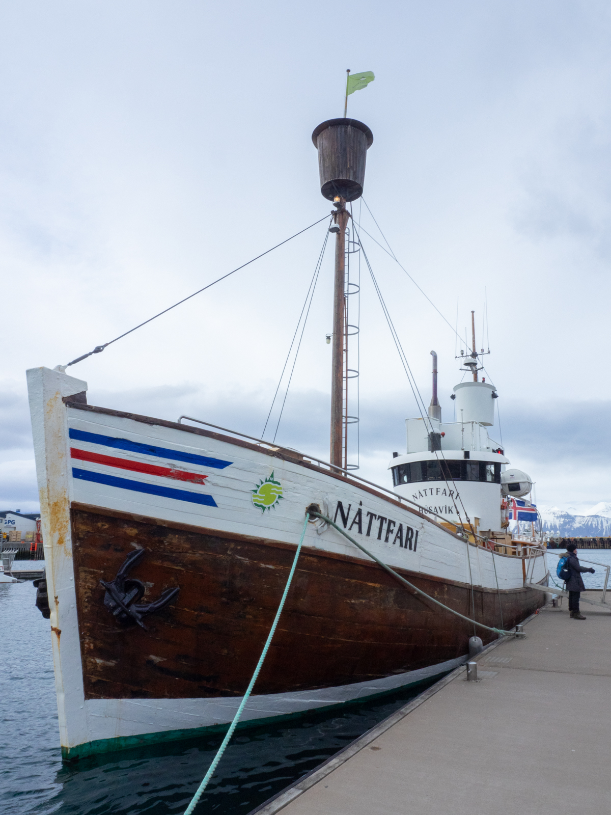 On the day I joined Húsavík whale-watching company North Sailing, the massive mammals apparently had better things to do than come to greet us. But the puffins and northern gannets that also live in Skjálfandi Bay showed up, swooping around the boat and bobbing around in the ocean. And although North Sailing can’t be expected to make nature perform on cue, they kindly offered customers a free trip if they wanted to try their luck again.