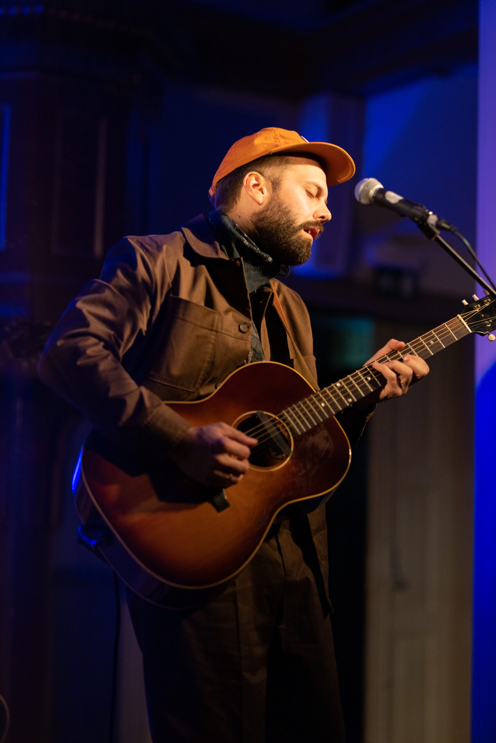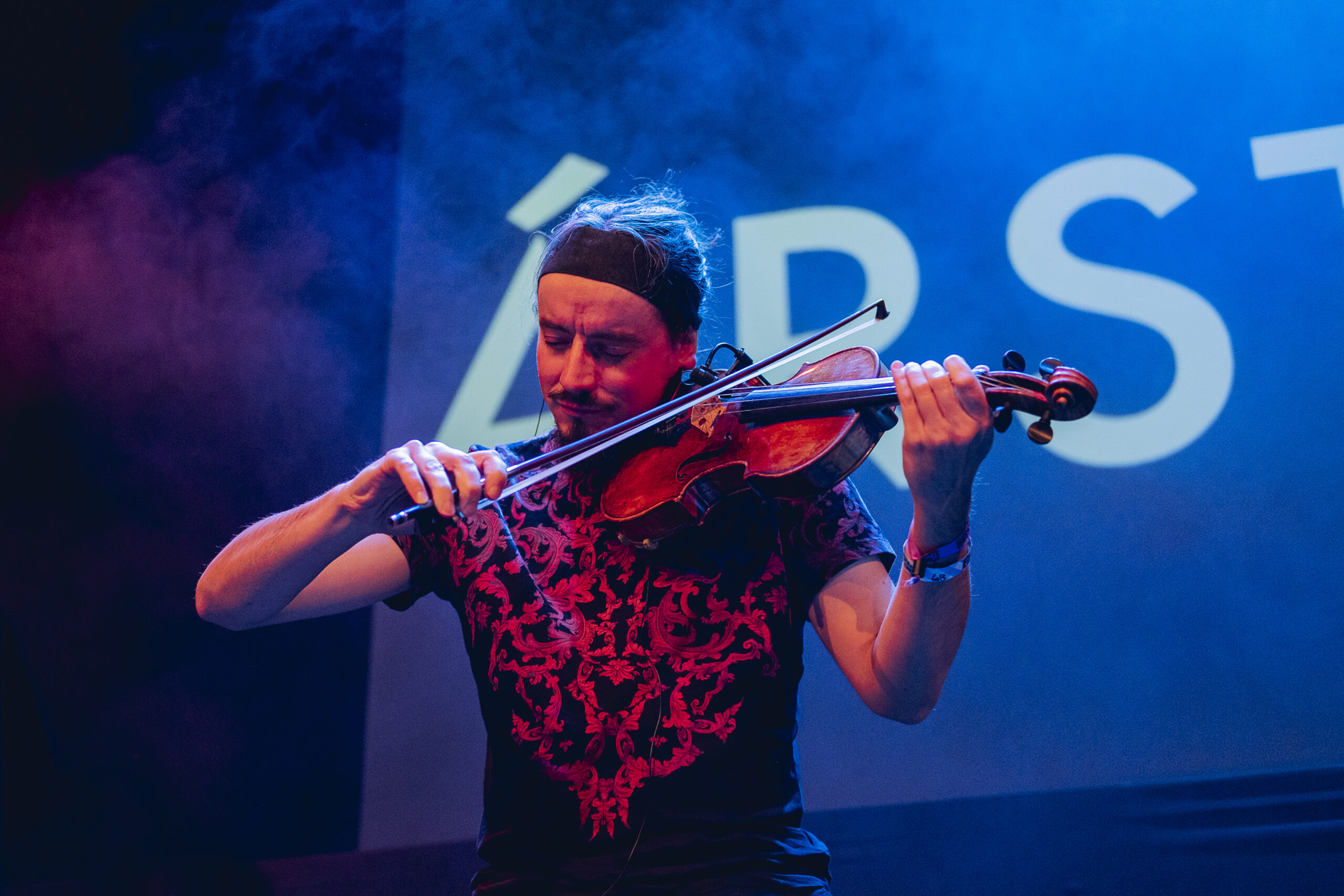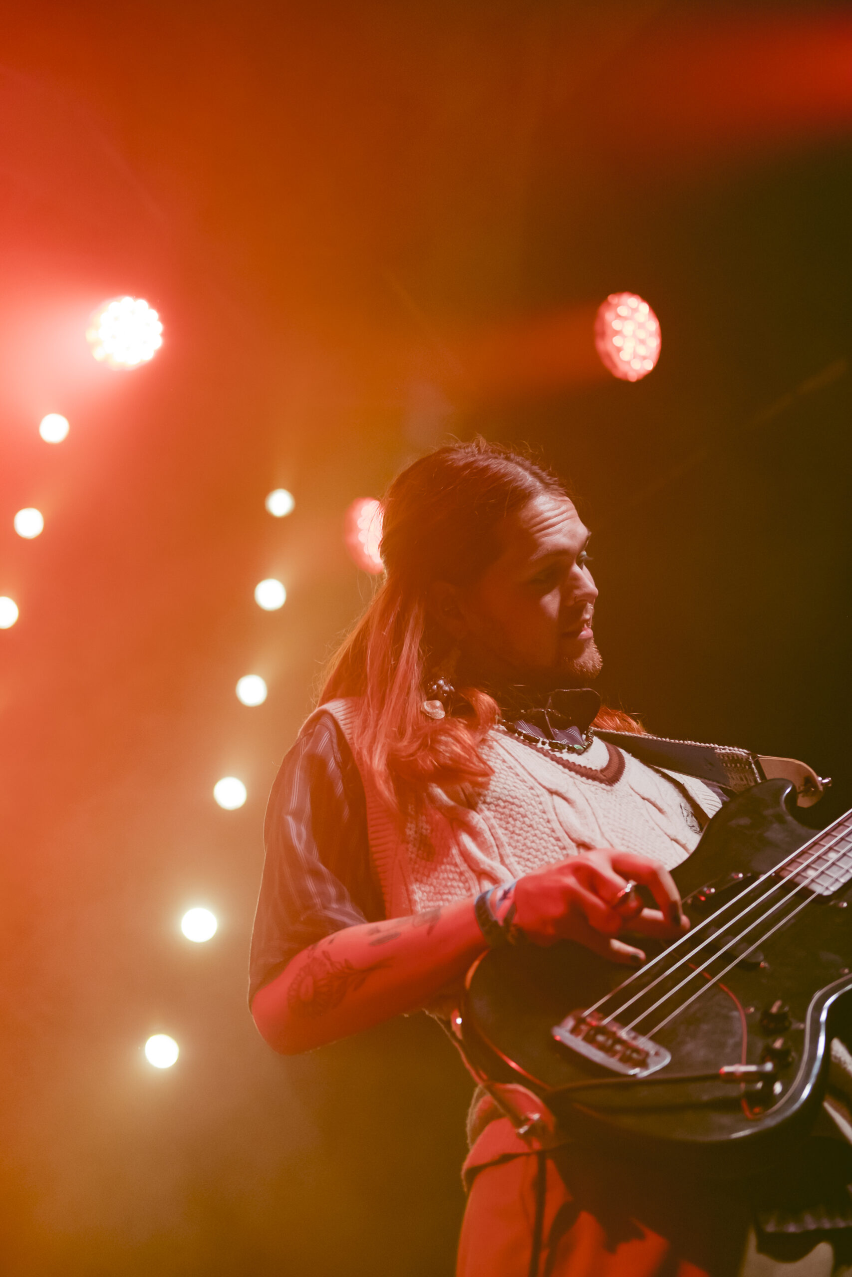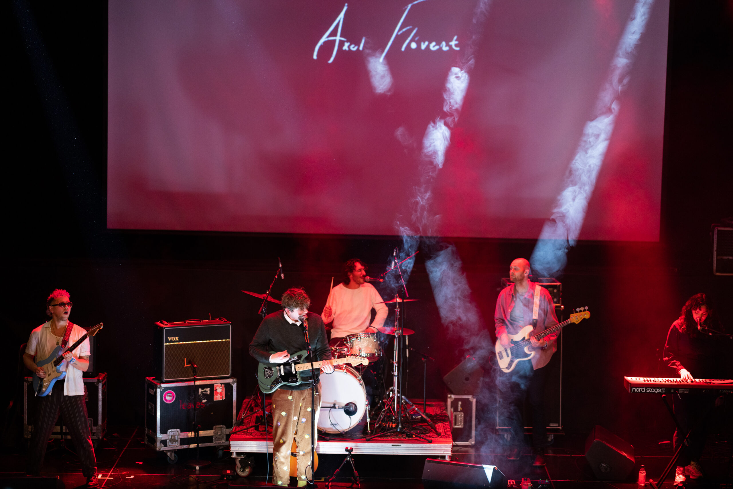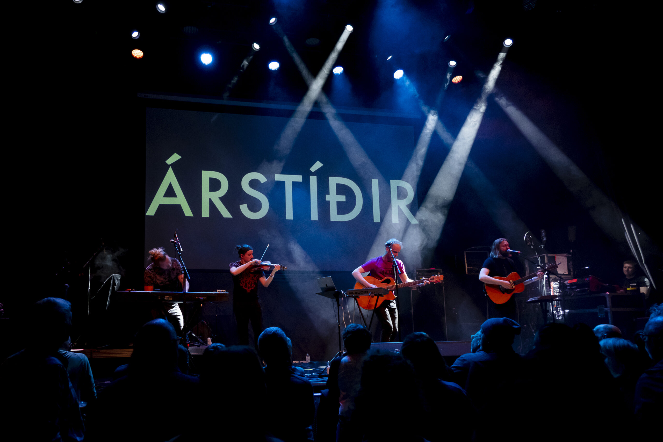 Right around the corner at Gamla Bío, a queue had already formed way before the venue even opened. I was allowed in early and made sure I got the best balcony seat in the house for both Árstiðír and Axel Flóvent. As the venue slowly filled up, the members of Árstiðír calmly walked onto the stage casually dressed and started their set with the high energy song “Friðþægingin” and a solo by French violinist Jean-Samuel Bez, which set the tone for what was to come. This band has been playing for many years, are well known locally and clearly skilled musicians with around eight albums under their belt, showcasing lots of vocal harmonies and layered compositions. They popped onto many people’s radar when they spontaneously sang the Icelandic Hymn “Heyr himna smiður” acapella in a train station, a video of which went viral on Youtube nine years ago, and they are about to head on another European tour with some shows already sold out. Ragnar Ólafsson (vocals, keys), mentioned they played their first Airwaves show in 2008 and by the looks of the audience that sang along, applauding loudly before and after every song and stayed the whole set, it’s evident that Árstiðír have created a strong loyal fanbase from all over the globe. Their music is a mix of styles and each song therefore becomes its own story, making it maybe a bit harder to put them in any specific box and some styles resonate more with me than others. It is mainly the second half of the set that I chime with, with songs like the hit “Lover,” and my favourite “Bring back the feel.” The latter is sung by Daníel Áudunsson (vocals, guitar) who says “it’s always good to stay positive,” while Gunnar Már Jakobsson (vocals, guitar) jokes to him to keep it light, but then explains the song “Mute” is about “the feeling of being in another country and not speak the language and having all these inner emotions stirred up inside oneself”. Árstiðír is just that: a lot of emotions nicely stirred up that are trying to find their way out in an often grandiose way, with build up tension in the songs that is enthusiastically received by the audience. So the only thing I am missing is a proper light technician to capture this (despite a good try from Raggi creating shadows with a flashlight), as when the rotating spots go on, lighting them all up, things really fall into place and it lifts the whole experience to that next level.