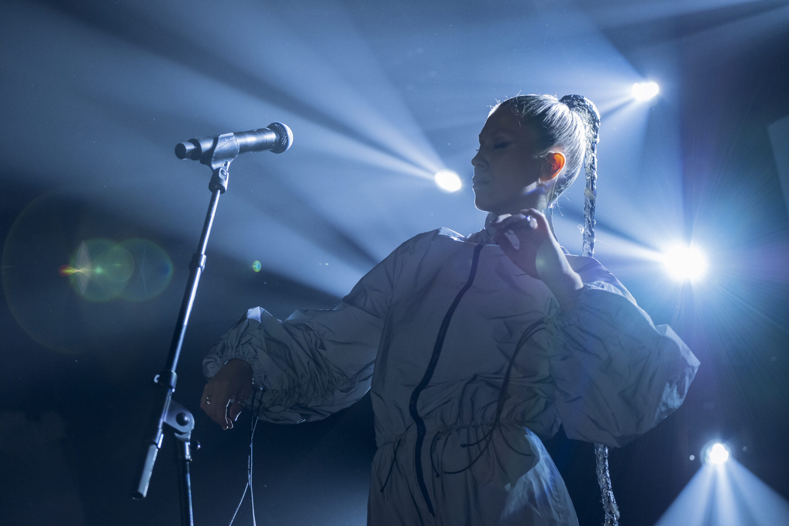 Which is all a shame, because Bríet was wonderful, with her wildly long braided and gilded ponytail trailing behind her or being held aloft with all the badassery of someone holding the leash of a big cat. She put on a high-energy show, ending with a gorgeous rendition of “Rólegur Kúreki” that gave me an excuse to belt out one of the few Icelandic lyrics I know with confidence: “Þú ert ekki James Dean því miður.”