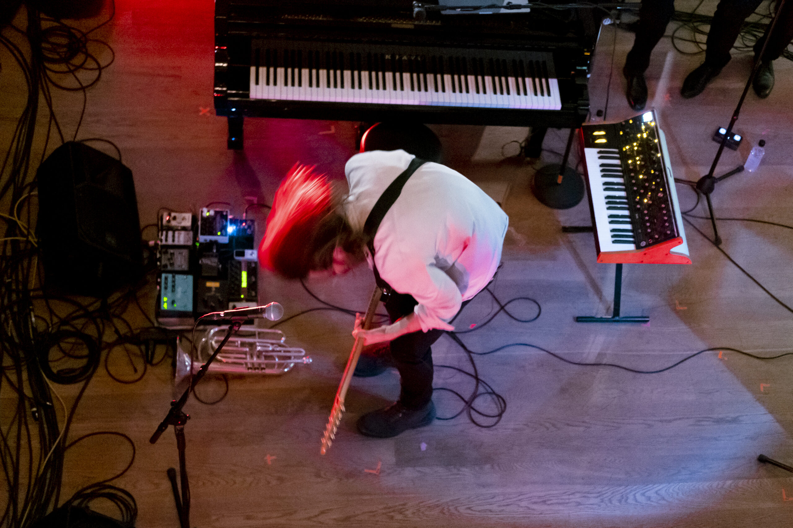 slowshift describes themselves “as the kind of band that reminds you why you fell in love with music in the first place,” and they couldn’t have said it better. Classical meets modern, happy meets sad, atheists meet believers – these thoughts run through my head as Jesus is looking down at me from the altar (again). On an average Friday night, a concert like this would be the topic of all conversations, on an Airwaves night, I’m after more.