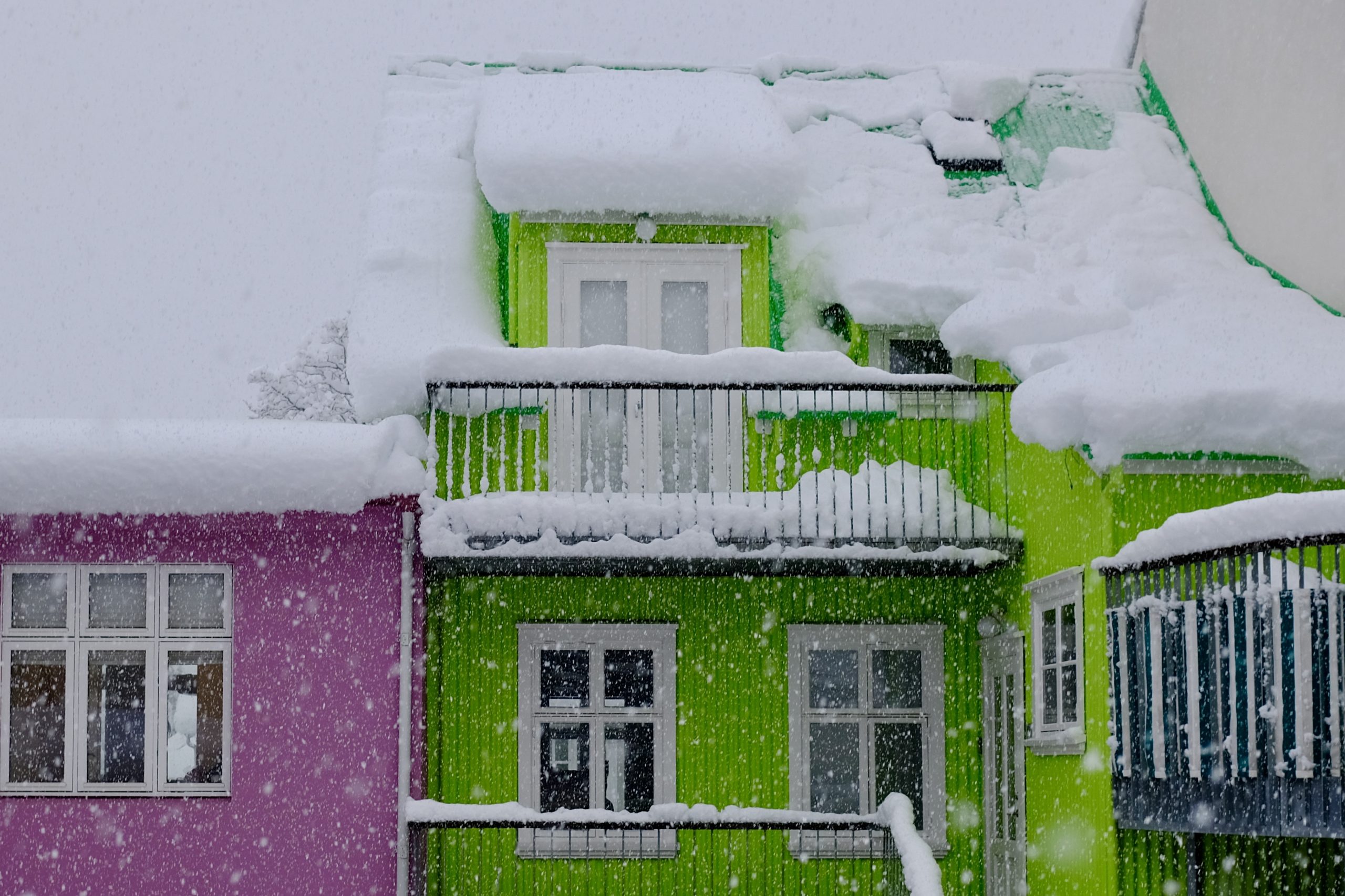 Ilaria says, “Hi lovelies 💛 Here is photos of the same view from my window in Reykjavík, taken exactly one month apart, one being yesterday with the first snowfall (kind of a before-after effect).