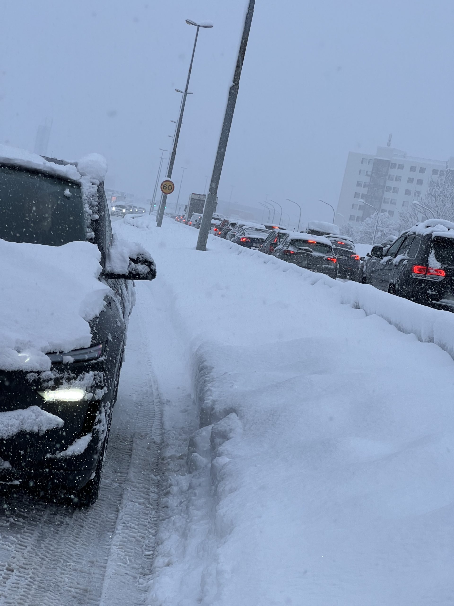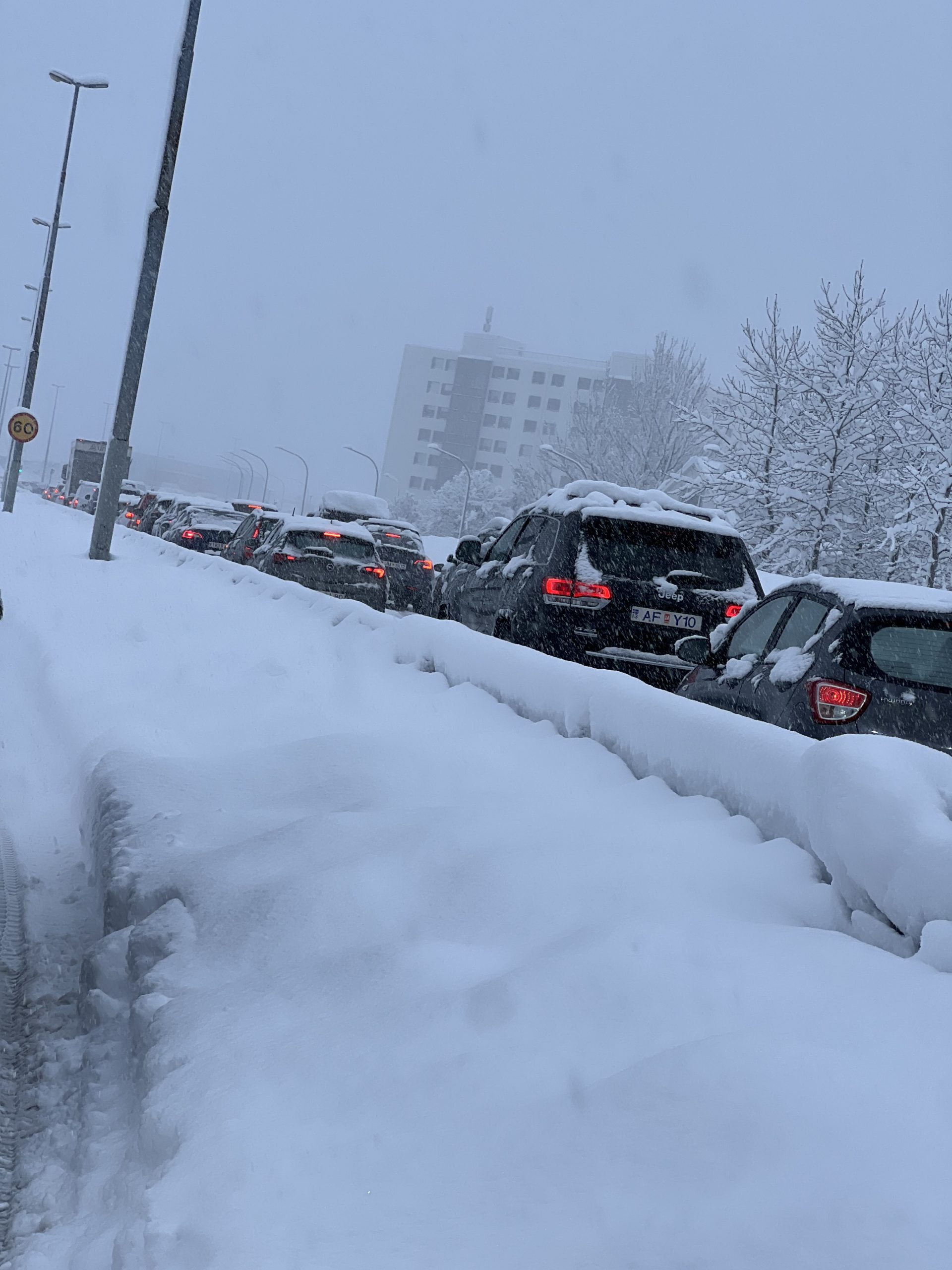 Jón Trausti Sigurðarson says, “I’m stuck in traffic. So much fun. I’ve seen two cars driving on the wrong lane, against traffic.”