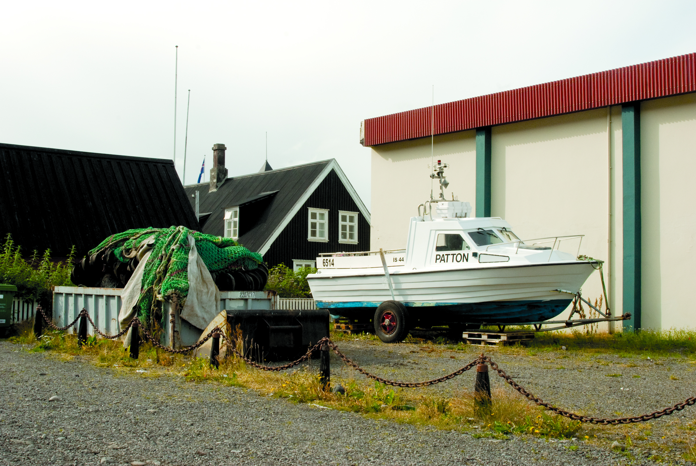 We observe eight day-cruiser fishing boats in Ísafjörður’s harbor. They are part of the strandveiðar, or coast fishing, program introduced by Jón Bjarnason and the Left Green party. As long as they use these tiny vessels, local fisherman can now harvest their own shores without the burden of the quota system, with certain restrictions.