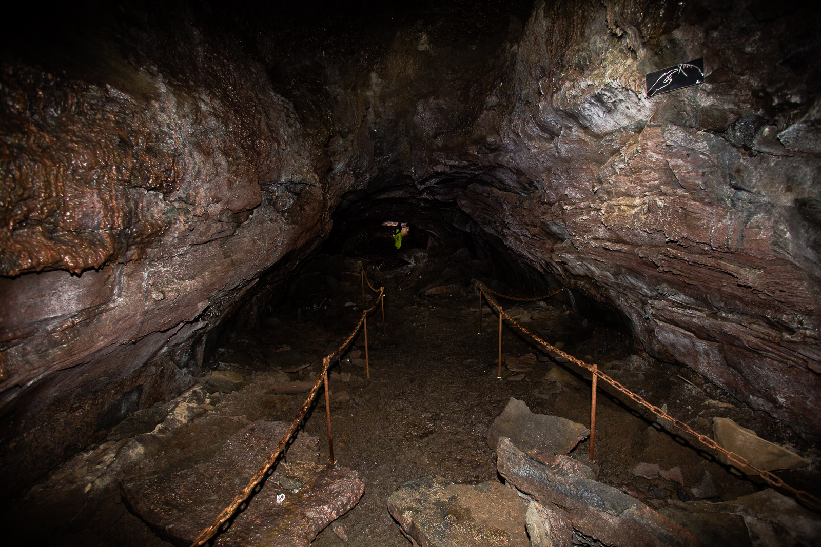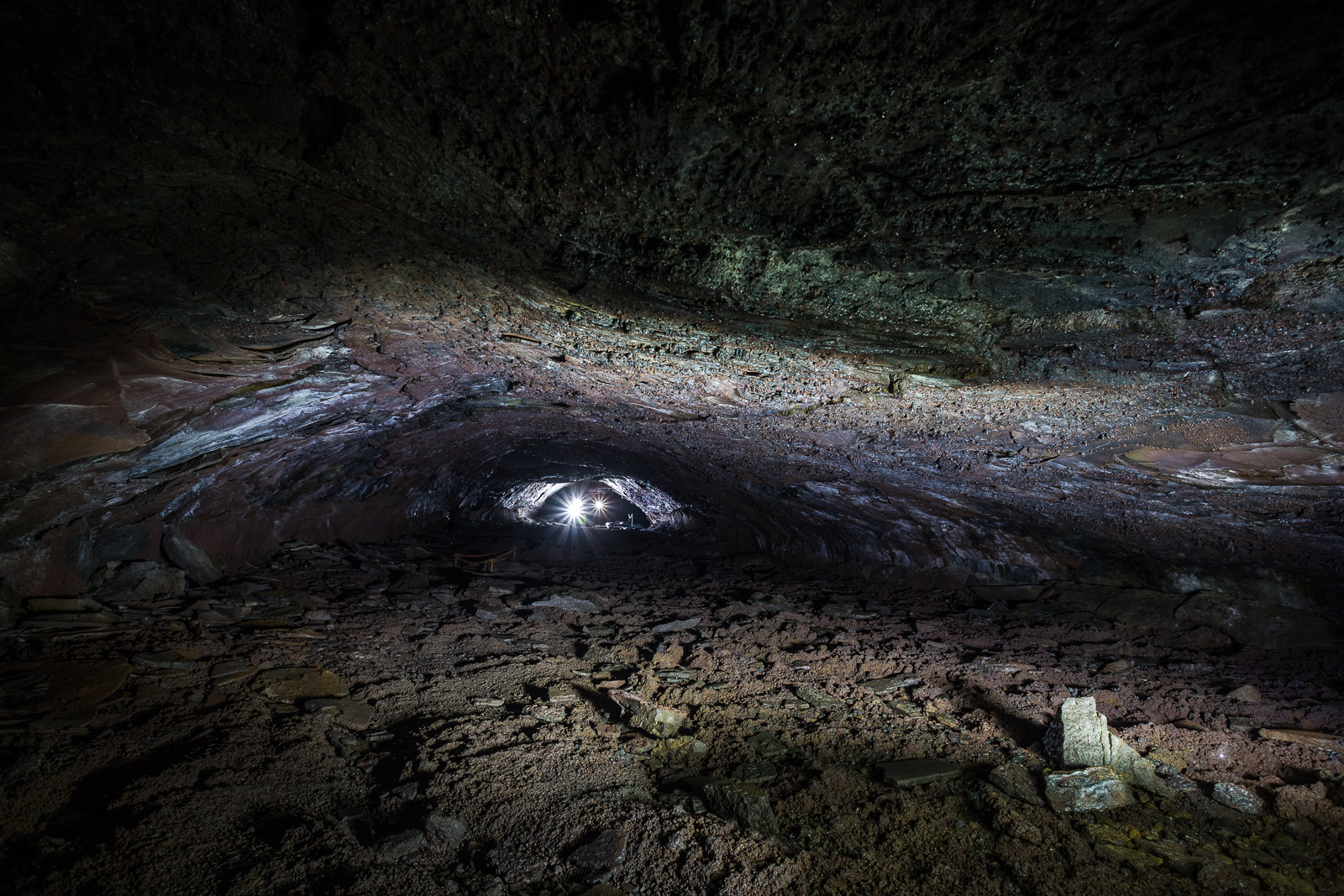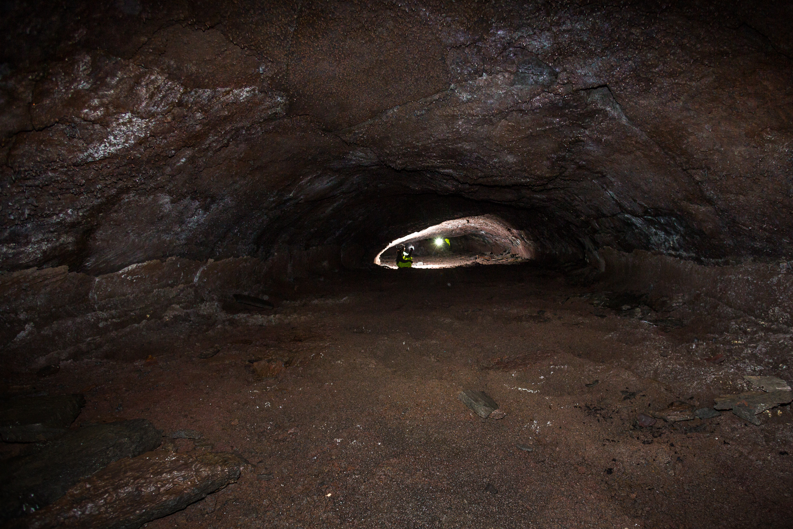 We continued in a circular route, sometimes forced to crawl on the ground, as the cave narrowed. “Thank god I have a helmet!” I heard someone say, bumping their head on the low cave ceiling. This irregular ceiling emerged during a volcanic eruption, we learned, when molten lava flowed a thin groove down a narrow volcano slope. During the eruption, the lava flow was slower and cooler at the edges and particularly at the surface of the lava stream. The lava first solidified there and a sort of “roof” formed over the faster moving lava. As long as the volcano erupted, the lava continued to flow below this “roof” and even today you can see the different layers that solidified to form the tube. Finally, at the end of the eruption, the lava flow in the tube decreased and flowed further downhill before cooling down and solidifying. “It is like walking in the bed of a river now,” Adrien said.