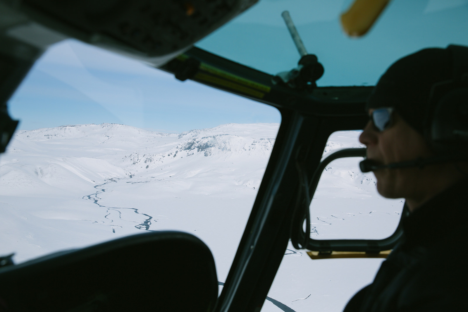 Our pilot for the day is Guðjón, a jovial chap with 20 years of flying experience, who explains our route for the day. First we’ll fly due east to the Nesjavellir power plant, before touching down on Hengill, the nearby volcano that powers the station. Next, we’ll circle over the Hveragerði area, home of the famous Reykjadalur “hot river,” and the Hellisheiði power plant, before doing a flyby of some large volcanic craters, and an aerial look at Reykjavík’s cityscape.
