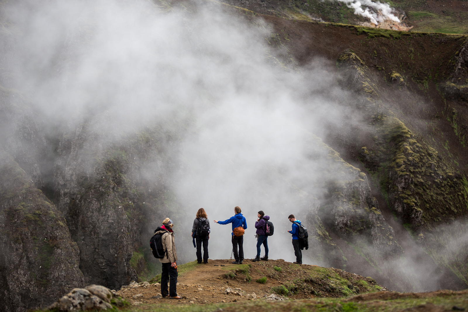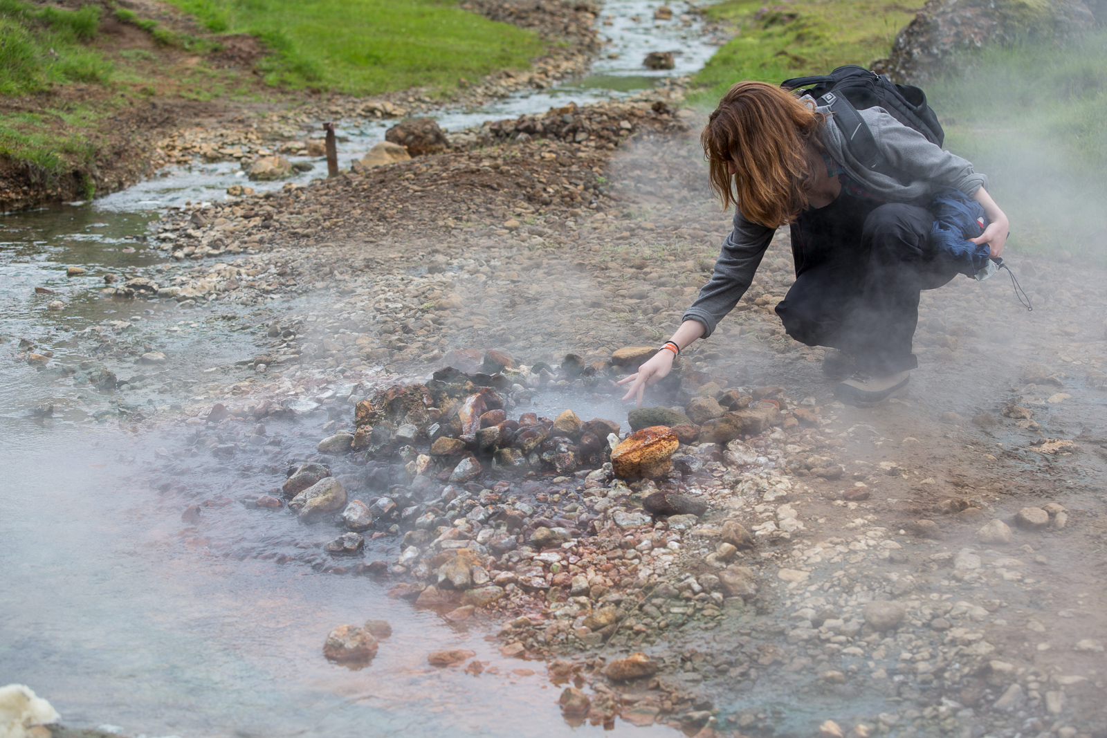 We began an easy hike to Reykjadalur (“Steam Valley”) and, fitting with the morning’s theme, we went at a leisurely pace. Linda walked alongside me, explaining that this was her first time in Iceland. “It is a strong island,” she said. “It touches me in my heart—such a mystical place.” I looked around and tried to experience the hike the same way she did. I am in Iceland, I am in Iceland.
