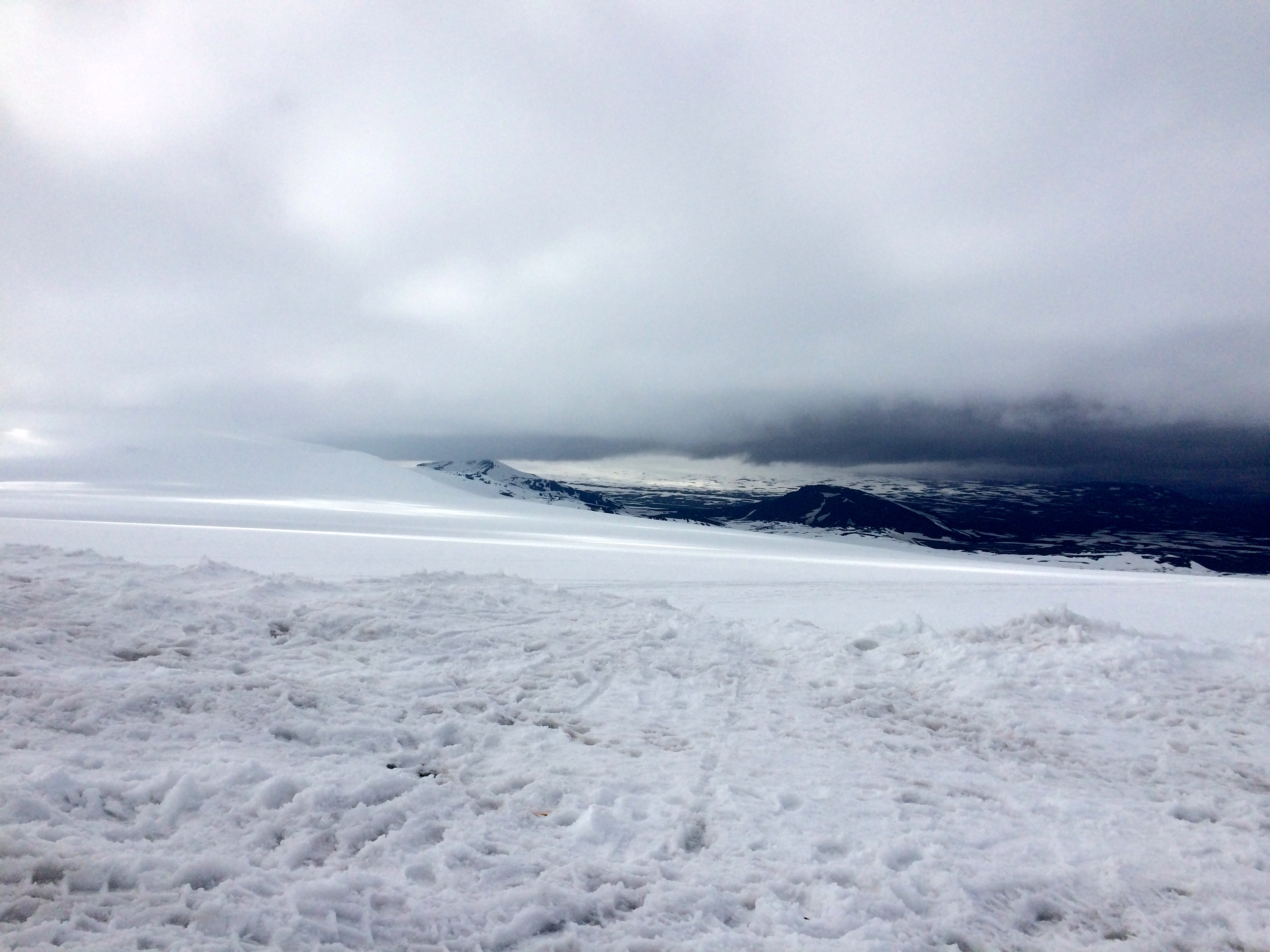 As we pass the city limits, the landscape becomes increasingly volcanic, marked with massive craters and big viscously sludgy brown mountains. We pass over the Nesjavellir geothermal power plant, and watch the columns of water vapour float into the sky. “Damn,” I think, “even Icelandic pollution is beautiful.” The shadows of clouds pass over the dusty brown wasteland, giving the rugged land even more texture.